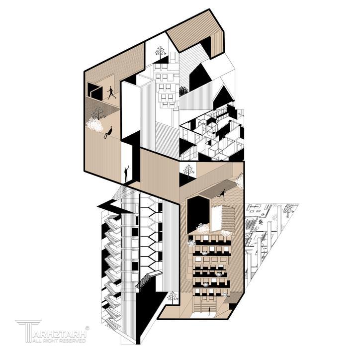 این پروژه با رویکردی مینیمال و در عین حال زمینهگرا طراحی شده است. ترکیب احجام عمودی با شکستهای سقف شیبدار، میانجیای میان مقیاس شهری و مسکونی ایجاد کرده و به زبان معماری بومی پاسخی معاصر میدهد. استفاده از بتن خام در کنار پوششهای سبز، پیوندی میان سختی ماده و لطافت طبیعت برقرار کرده و در نتیجه بنایی شکل گرفته که میان صلابت و زندگی، تعادل میجوید.