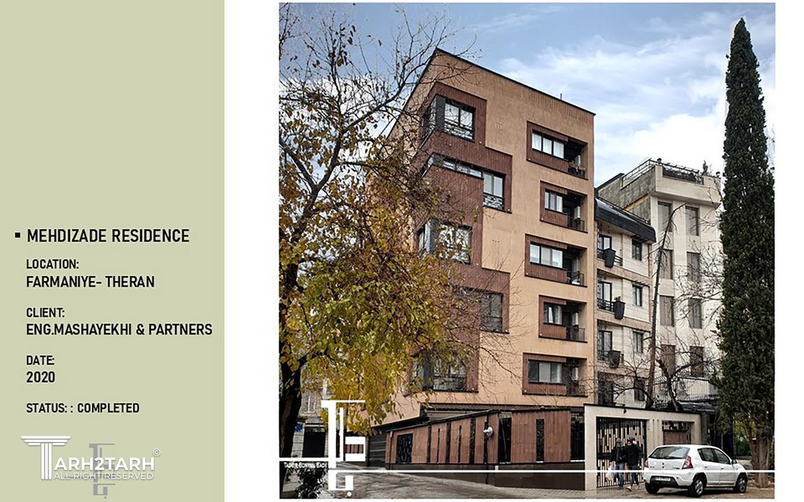 آپارتمان مسکونی 10 واحدی 5 طبقه در فرمانیه تهران که در سال 96 طراحی و اجرا گردید.