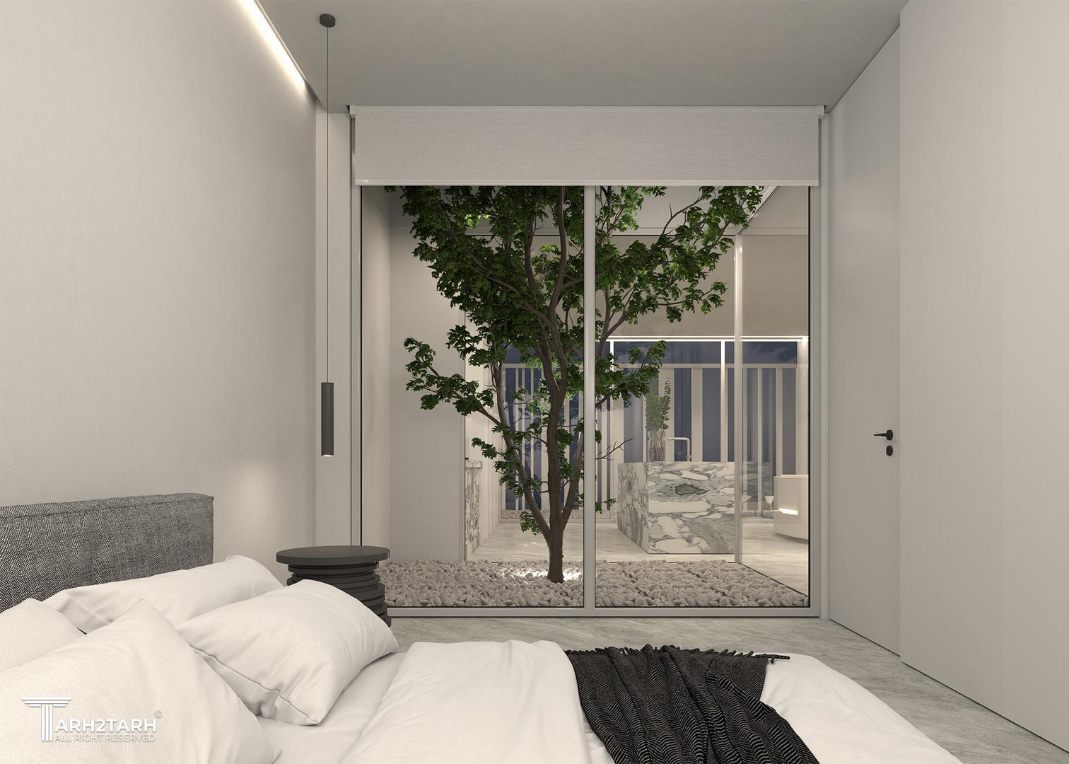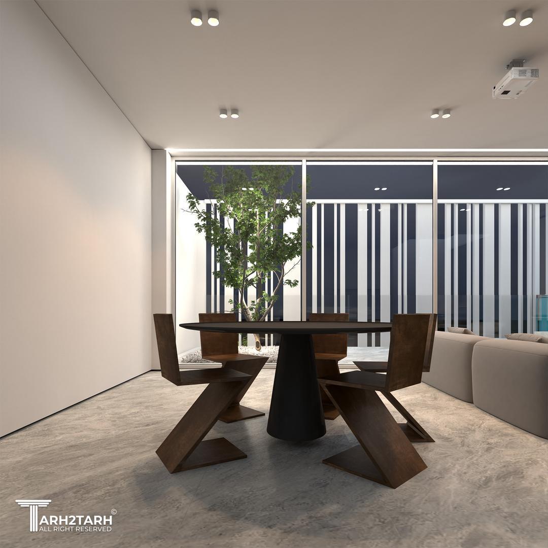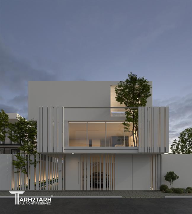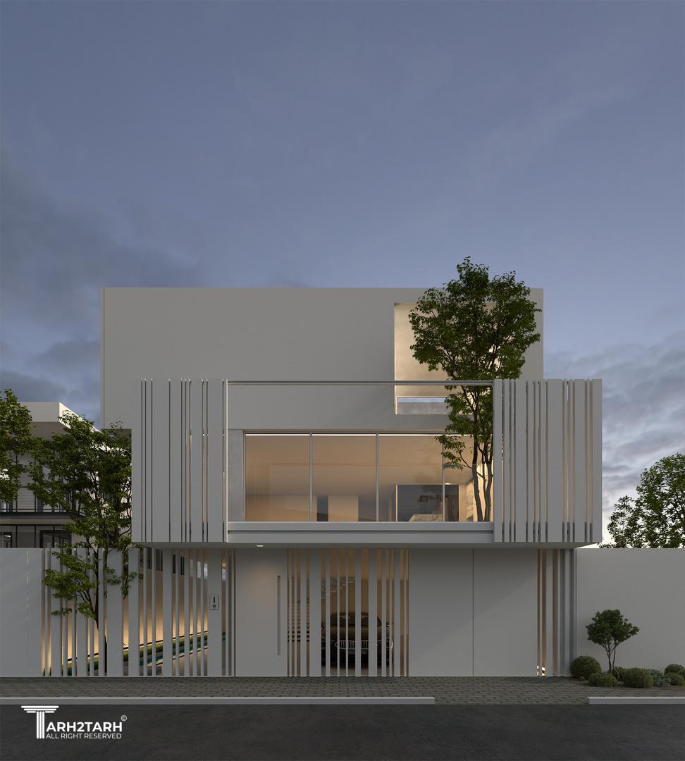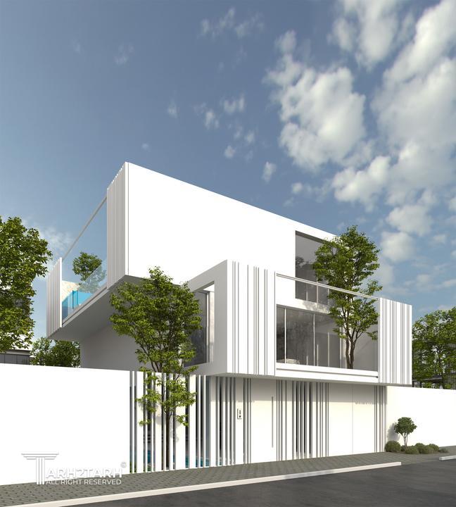 هدف طراحی دو واحد بوده که هر کدام از واحدها حس یک خانه ویلایی رو تداعی کنه. پس با چرخش دو واحد روی هم تراس هایی ایجاد شدند که مسقف نباشن و حس یک حیاط کوچک را بدهد. برای استفاده بهتر و راحتتر از تراس لوورهای باز شونده ای طراحی شده ک برای حس محرمیت بیشتر بشه از اون استفاده کرد.