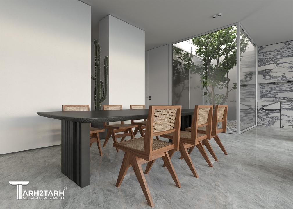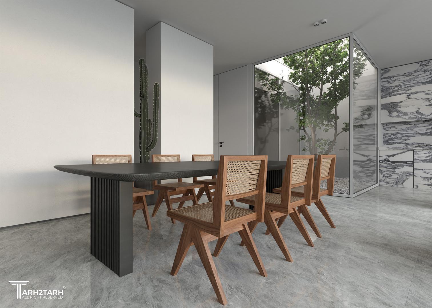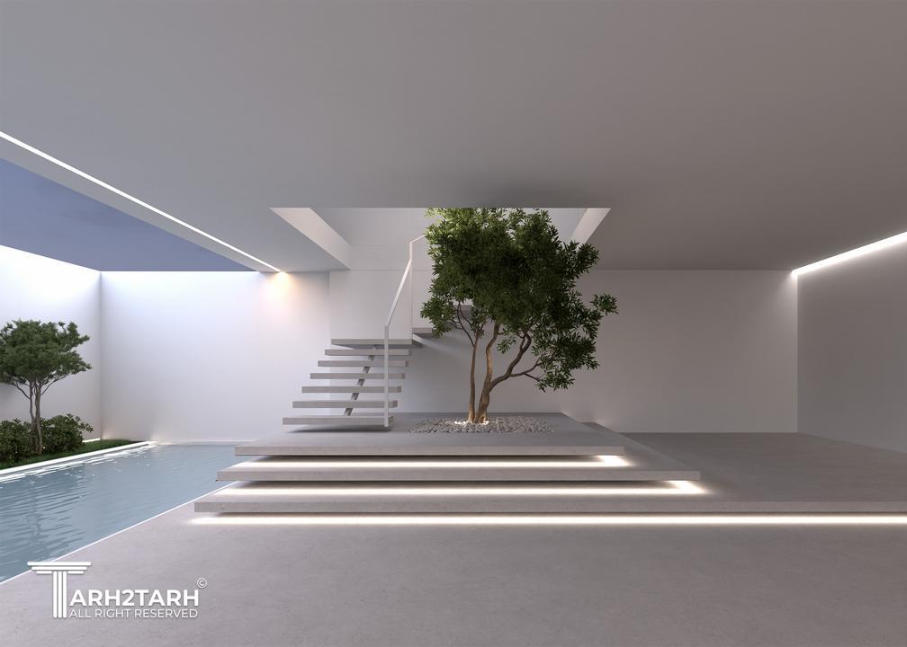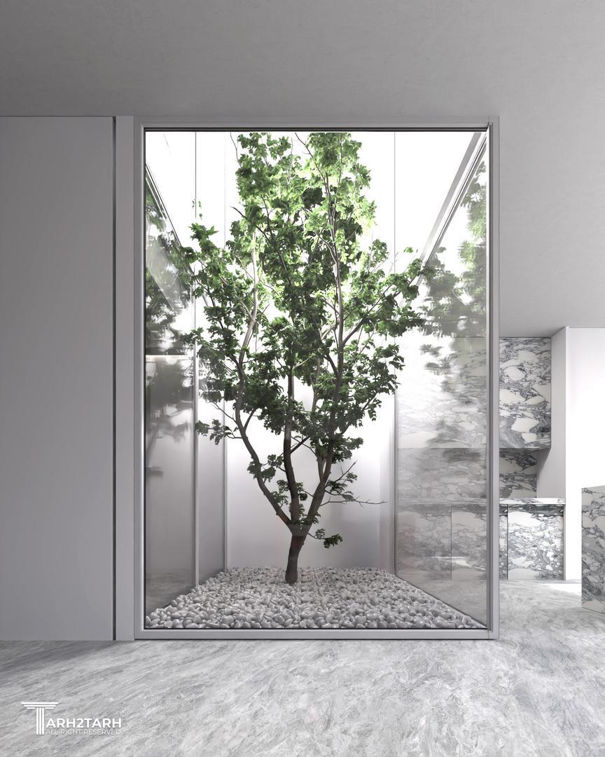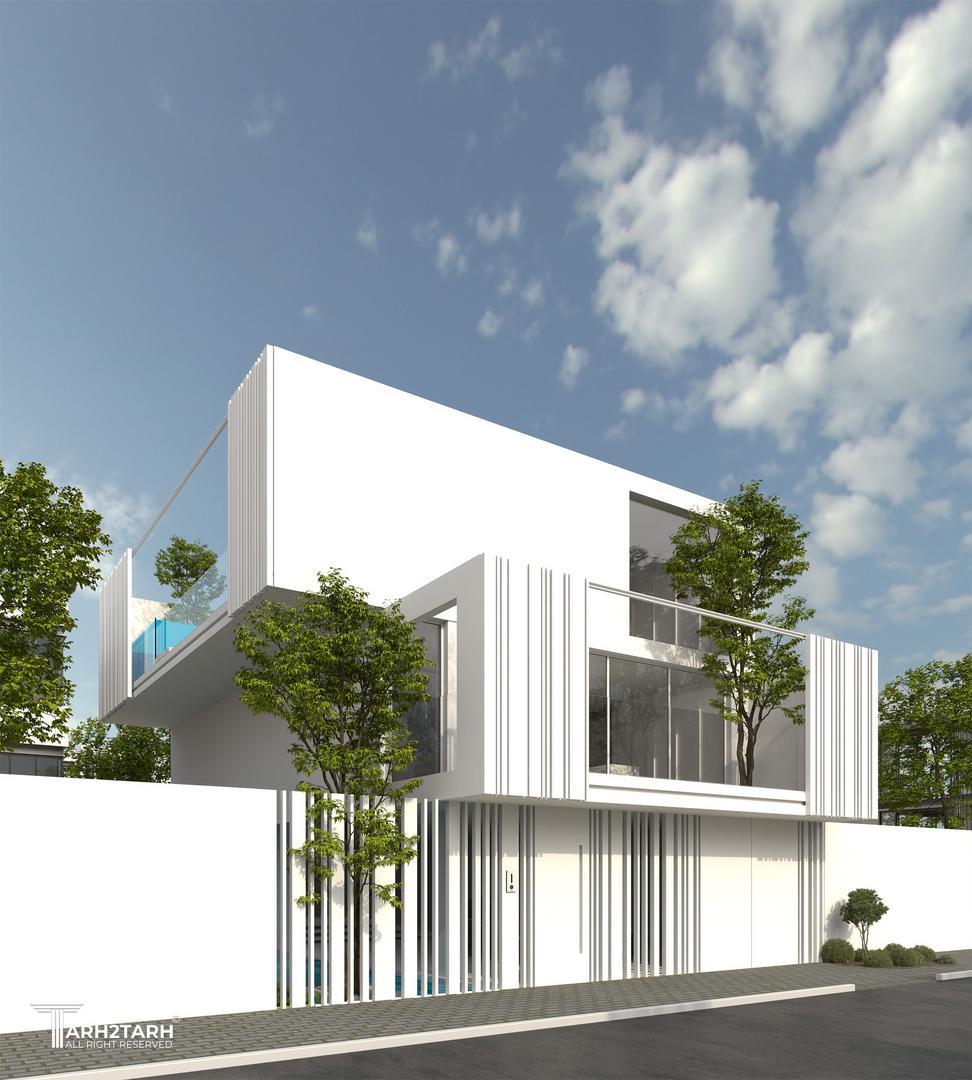 هدف طراحی دو واحد بوده که هر کدام از واحدها حس یک خانه ویلایی رو تداعی کنه. پس با چرخش دو واحد روی هم تراس هایی ایجاد شدند که مسقف نباشن و حس یک حیاط کوچک را بدهد. برای استفاده بهتر و راحتتر از تراس لوورهای باز شونده ای طراحی شده ک برای حس محرمیت بیشتر بشه از اون استفاده کرد.