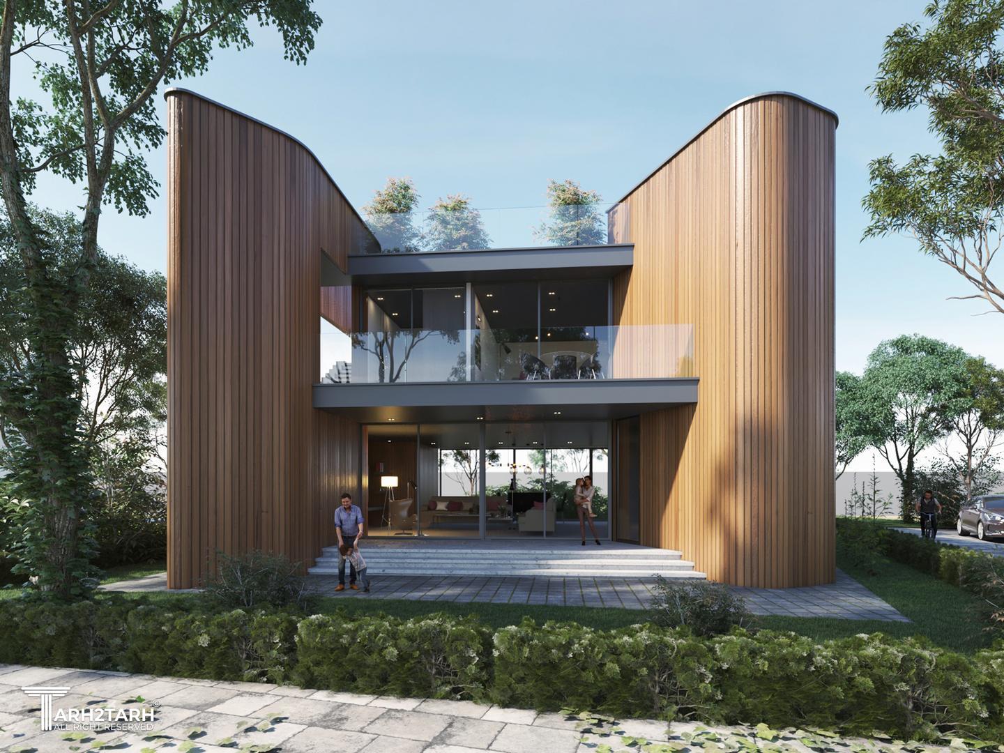 در طراحی ویلای 66 دهکده گلچین بر منظر شمال و جنوب و استفاده از چوب و شیشه به عنوان متریال غالب تاکید شده است