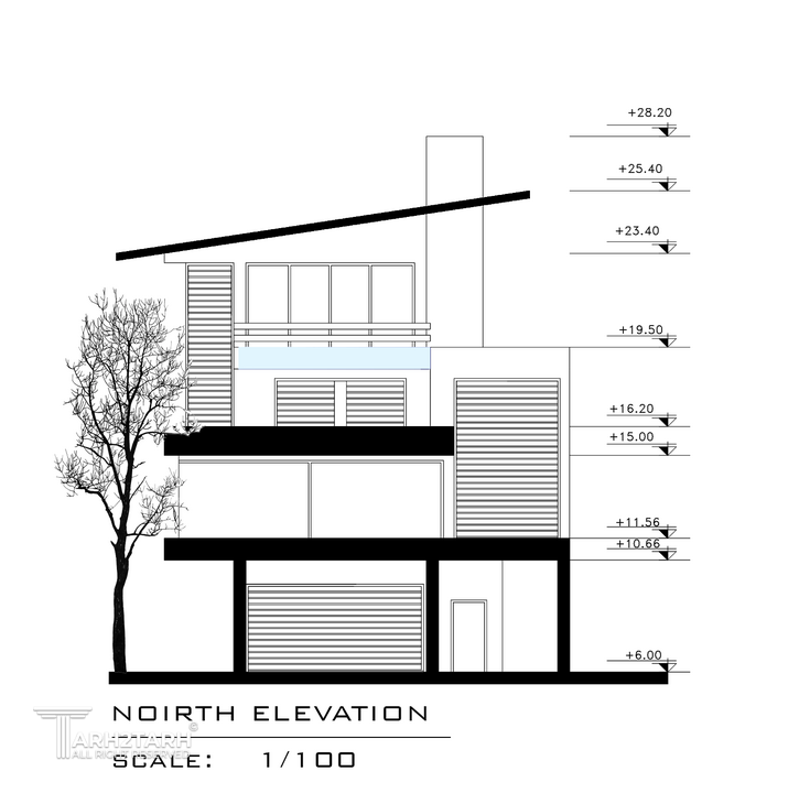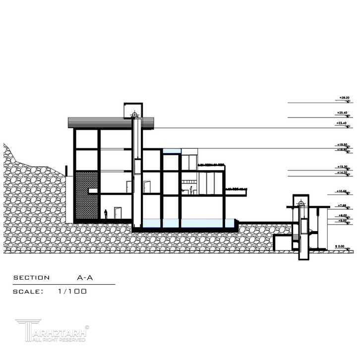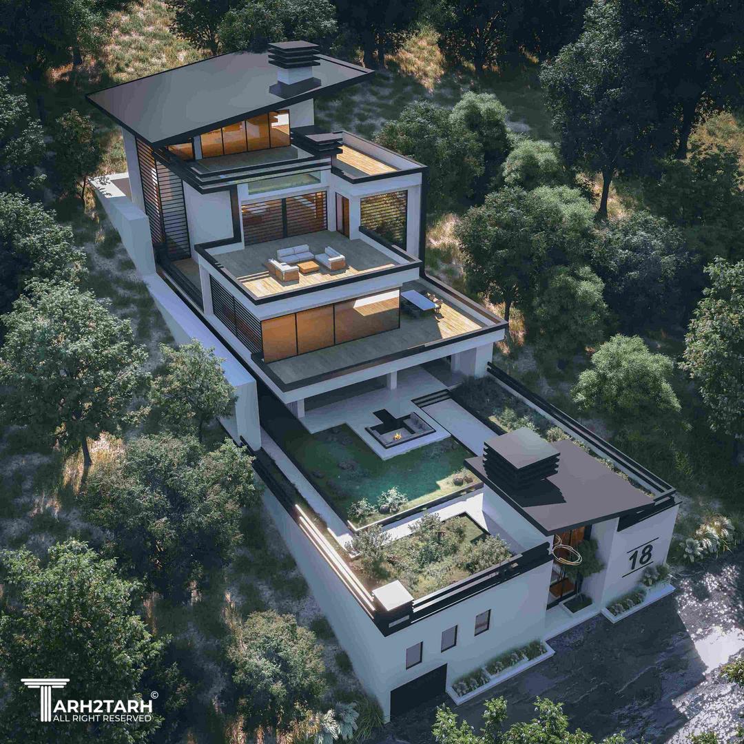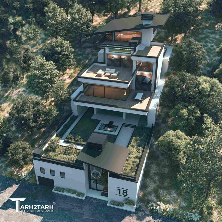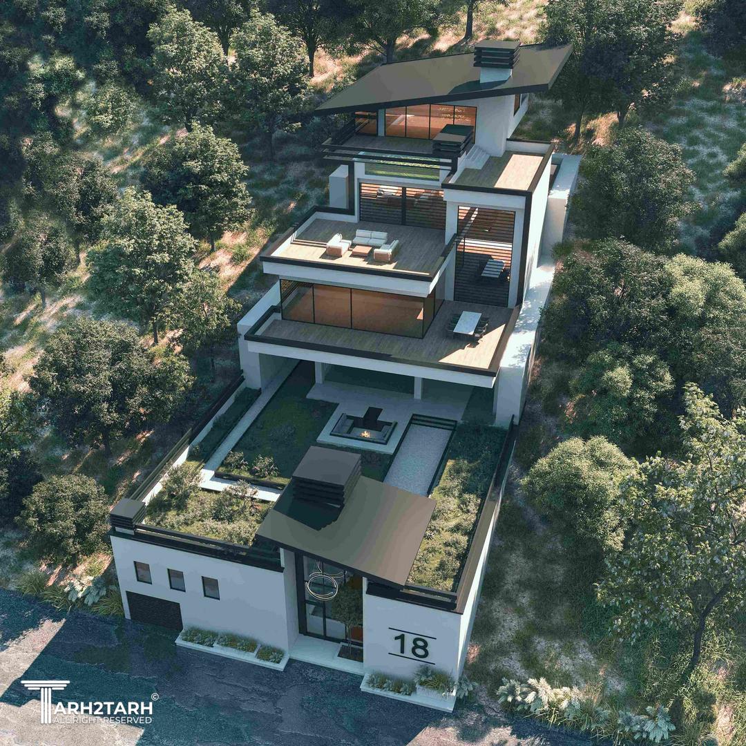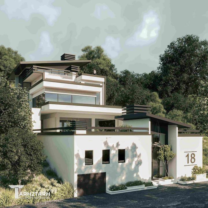 ویلای عزیزیان در دامنه کوههای رودهن، با الهام از شیب طبیعی زمین و هندسه تپهماهوری طراحی شده است. بنا با دو لایه فضایی خدماتی و مسکونی، بهصورت پلکانی در دل طبیعت جای گرفته و با ریتم زمین همنواست. تراسهای سبز، نماهای مینیمال و خطوط ساده، سکونتی آرام و پیوسته با طبیعت را رقم میزنند.