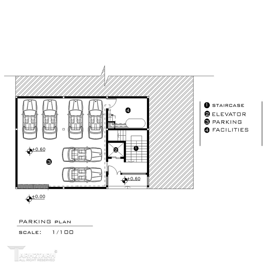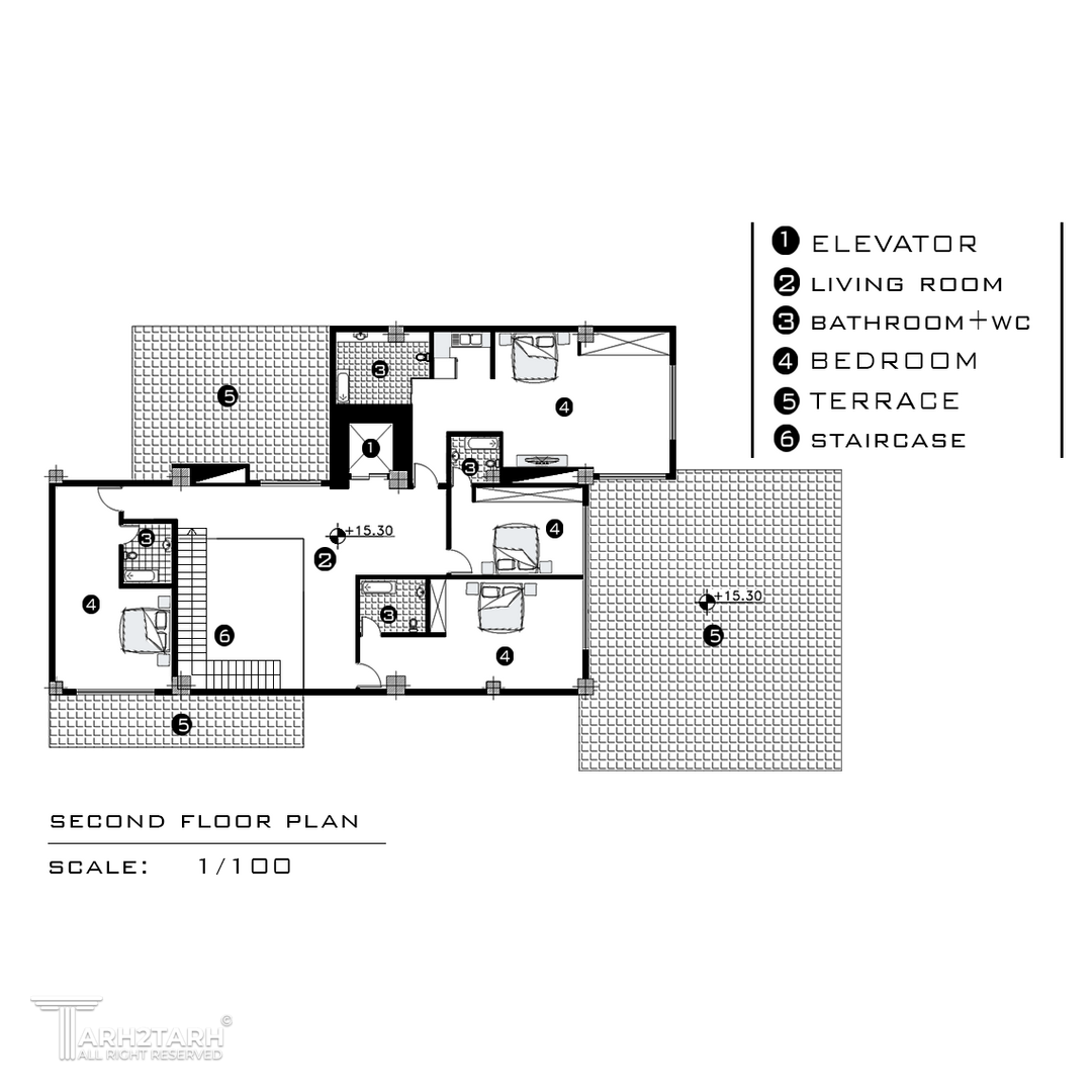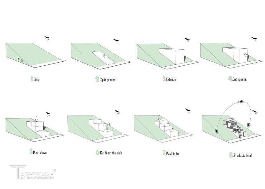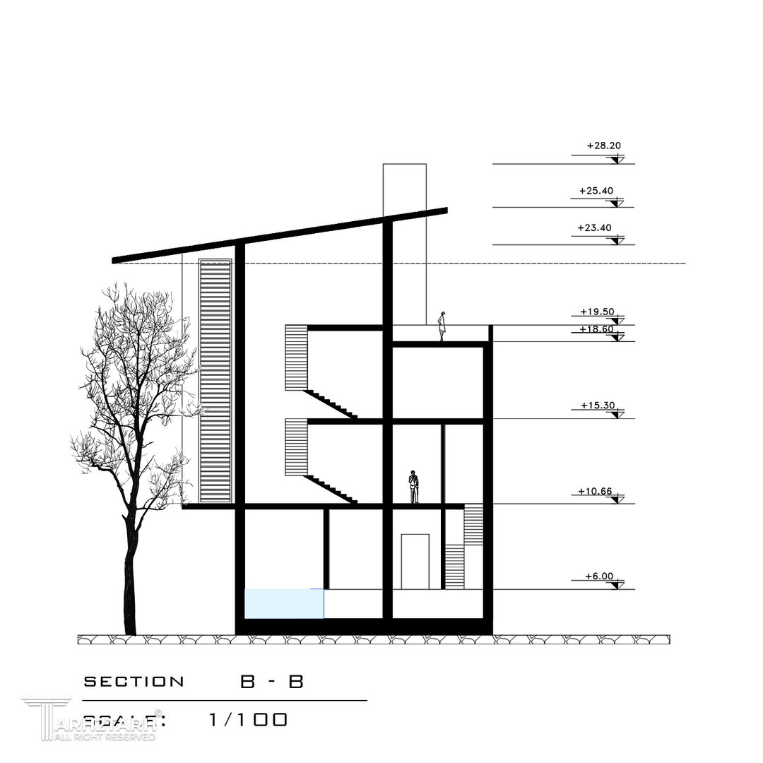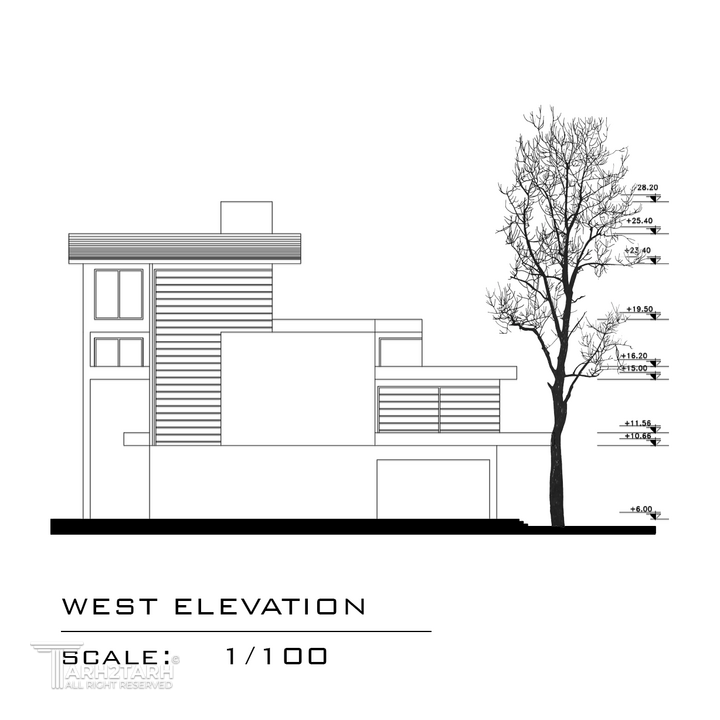ویلای عزیزیان در دامنه کوههای رودهن، با الهام از شیب طبیعی زمین و هندسه تپهماهوری طراحی شده است. بنا با دو لایه فضایی خدماتی و مسکونی، بهصورت پلکانی در دل طبیعت جای گرفته و با ریتم زمین همنواست. تراسهای سبز، نماهای مینیمال و خطوط ساده، سکونتی آرام و پیوسته با طبیعت را رقم میزنند.