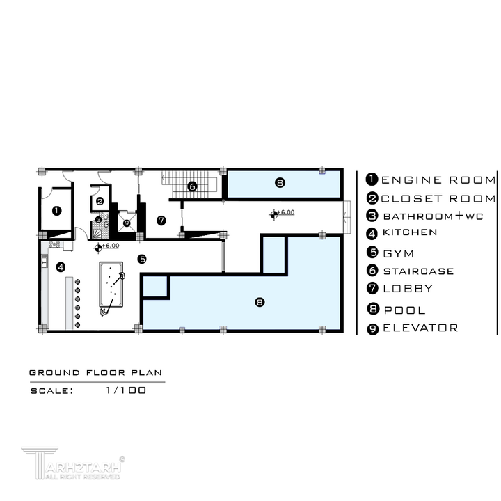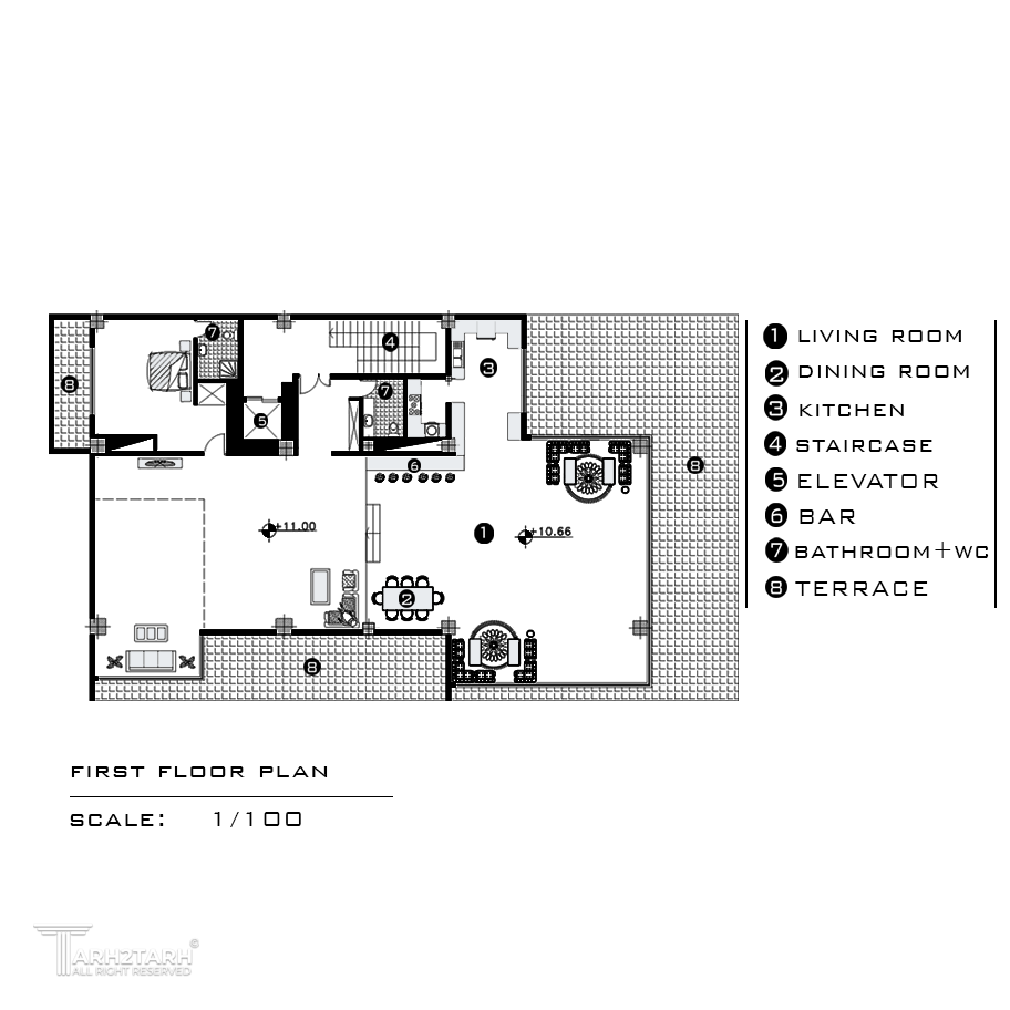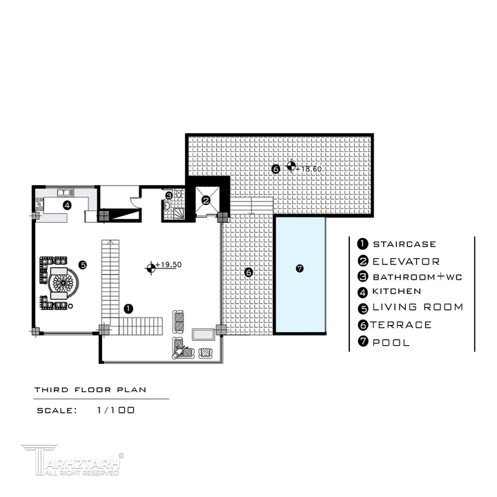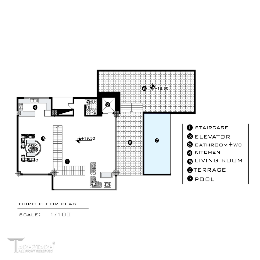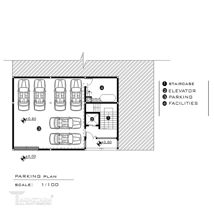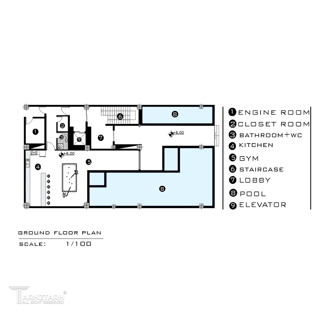 ویلای عزیزیان در دامنه کوههای رودهن، با الهام از شیب طبیعی زمین و هندسه تپهماهوری طراحی شده است. بنا با دو لایه فضایی خدماتی و مسکونی، بهصورت پلکانی در دل طبیعت جای گرفته و با ریتم زمین همنواست. تراسهای سبز، نماهای مینیمال و خطوط ساده، سکونتی آرام و پیوسته با طبیعت را رقم میزنند.