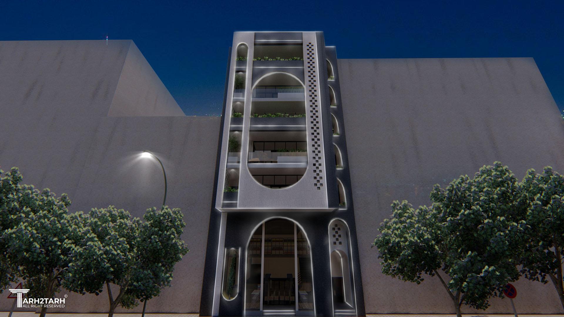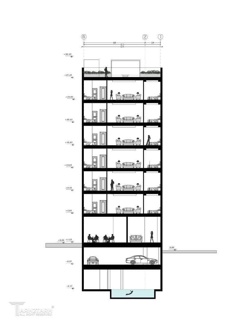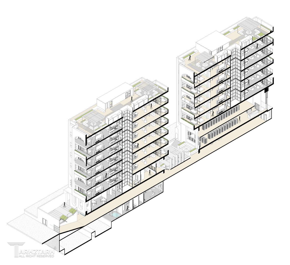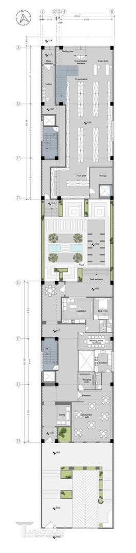 پلان همکف(شامل واحد سرایداری، سالن اجتماعات، واحد تجاري)