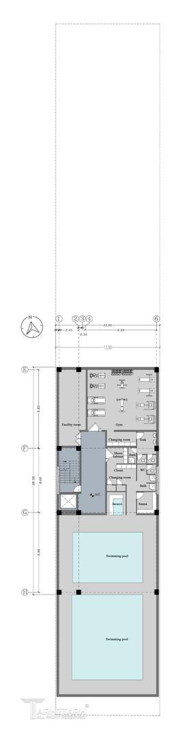 پلان زیرزمین2(شامل سالن ورزش، استخر، موتورخانه)