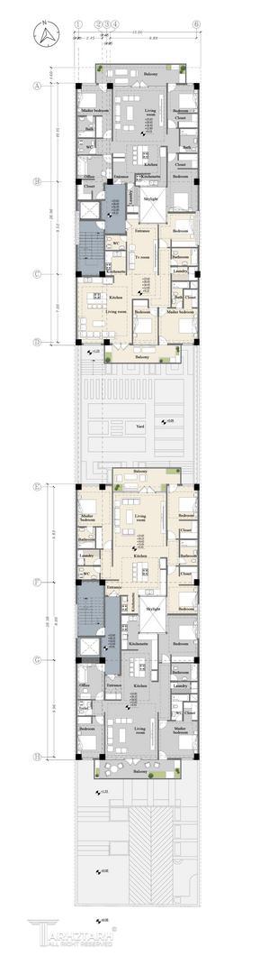 پلان تیپ طبقات(شامل 4 واحد در 2 بلوك جدا از هم)