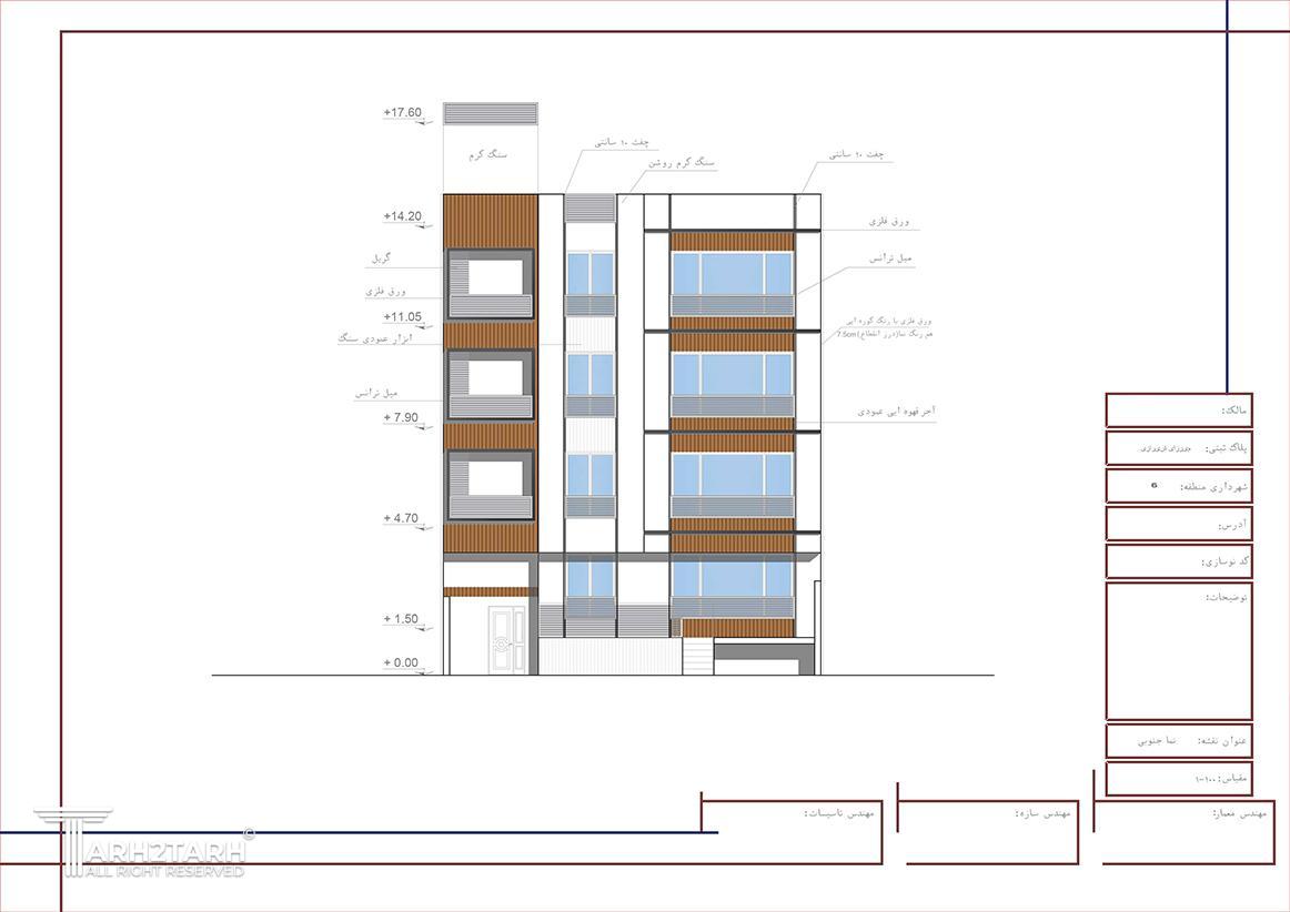 پروژه توسط کارفرما جهت طراحی مجدد نما به آتلیه ارجاع داده شد، نمای ترکیبی سبک معاصر برای این پروژه طراحی و بر اجرای طرح نظارت گردید.