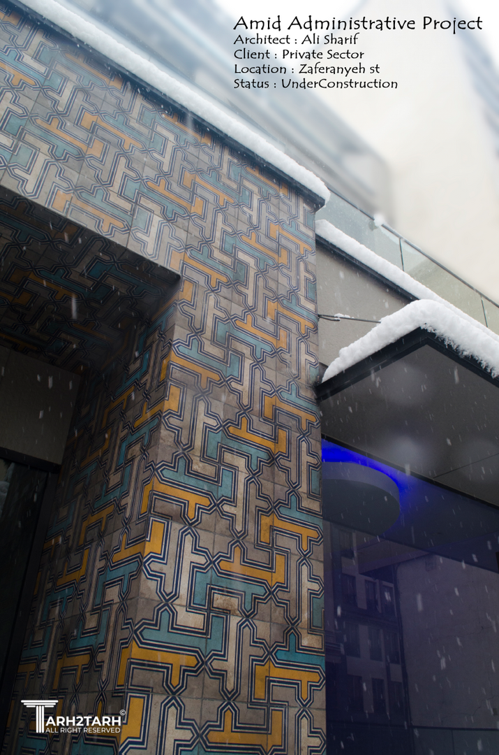 پروژه «مقدس اردبیلی» یک مجموعهی تجاری–اداری واقع در محور شهری فعال شمال تهران است که هدف آن ترکیب عملکرد اقتصادی با هویت فرهنگی معماری ایرانی میباشد. این مجموعه در قالب ساختمانی چندطبقه با کاربریهای ترکیبی طراحی شده است؛ طبقات پایین شامل واحدهای تجاری و خدماتی، و طبقات بالاتر به فضاهای اداری انعطافپذیر اختصاص دارد. در طراحی نما، از طرح کاشیکاری الهامگرفته از هنر اسلامی ایرانی استفاده شده تا در عین حفظ جنبههای مدرن ساختوساز شهری، حس هویت و اصالت معماری سنتی به مخاطب القا شود. نقوش هندسی، رنگهای فیروزهای و لاجوردی، و چیدمان منظم کاشیها باعث ایجاد تصویری آرام، فرهنگی و چشمنواز در جداره شهری شده است. در سناریوی طراحی، ابتدا ارتباط پروژه با بافت شهری و مسیرهای دسترسی مورد تحلیل قرار گرفته، سپس با توجه به جریان حرکتی عابران و مشتریان، فضاهای تجاری در پایینترین سطح قرار گرفته و با بازشوها و شفافیت بیشتر در نما همراه شدهاند. بخش اداری نیز با مصالح سنگ و شیشه مکمل کاشیها، حس رسمیت و جدیت را در کنار زیبایی سنتی ایجاد میکند. هدف اصلی طرح، ایجاد توازن میان هویت، زیبایی و کارایی است؛ به نحوی که نمای کاشیکاری نهتنها جلوهی بصری بیافریند، بلکه به نوعی روایتی معاصر از هنر و فرهنگ ایرانی در کالبد یک پروژهی اقتصادی باشد.