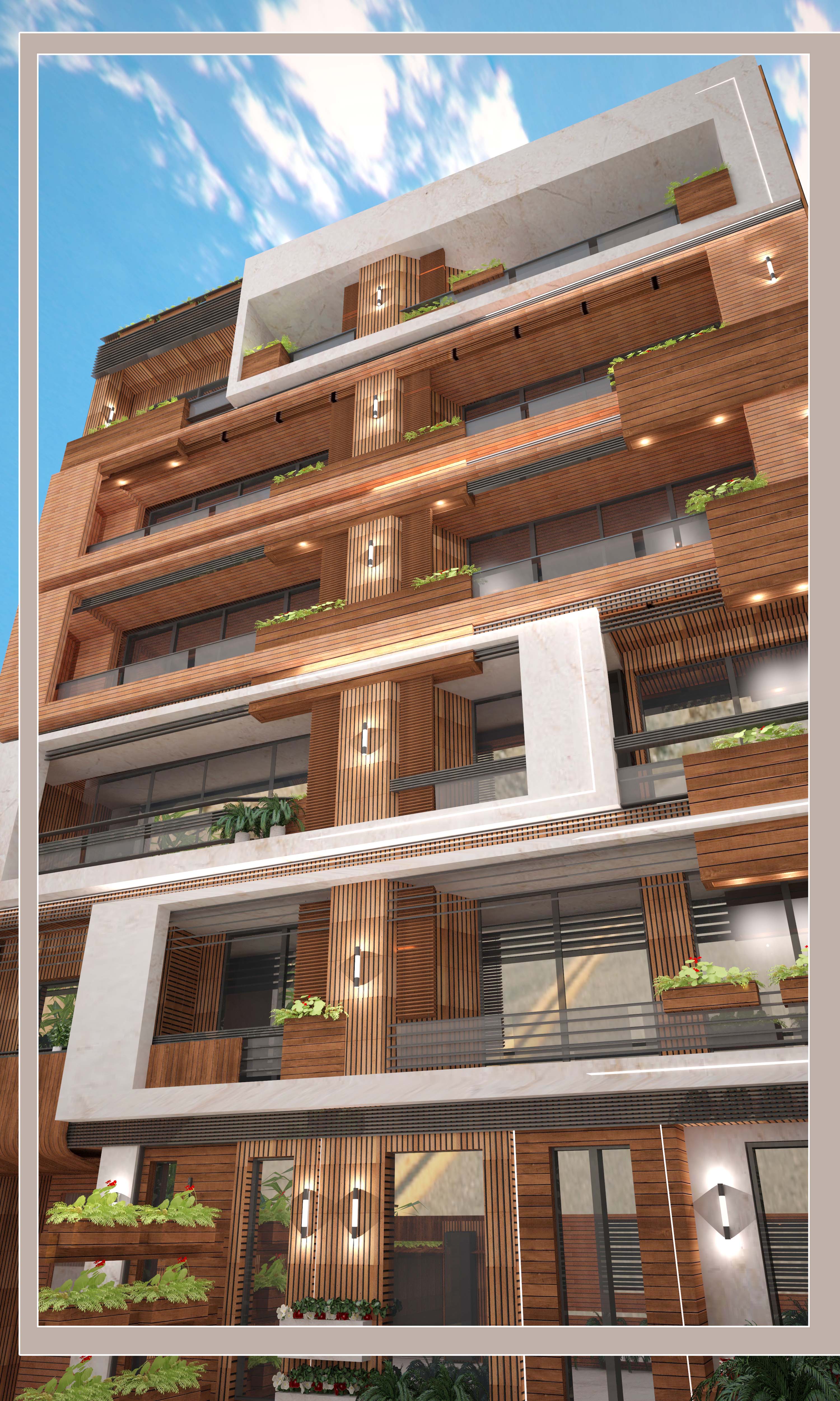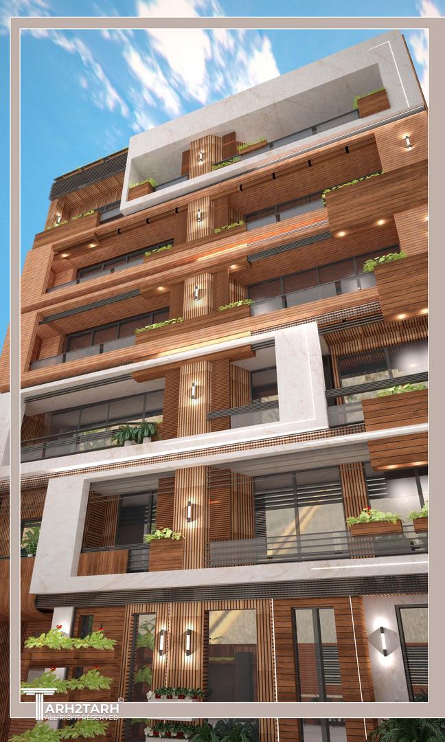 طراحی نما با متریال پیشنهادی سنگ سفید چوب .آجر
