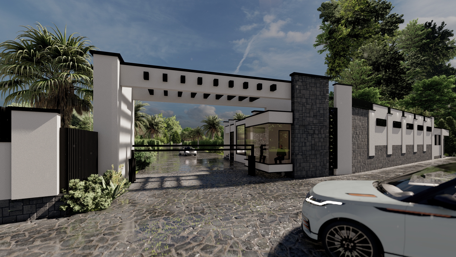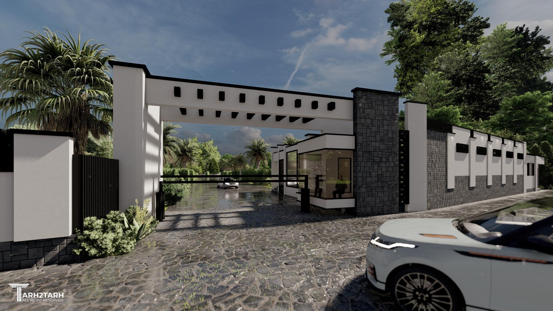طراحی سردر , استخر , نگهبانی و جداره ورودی شهرک