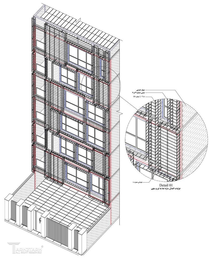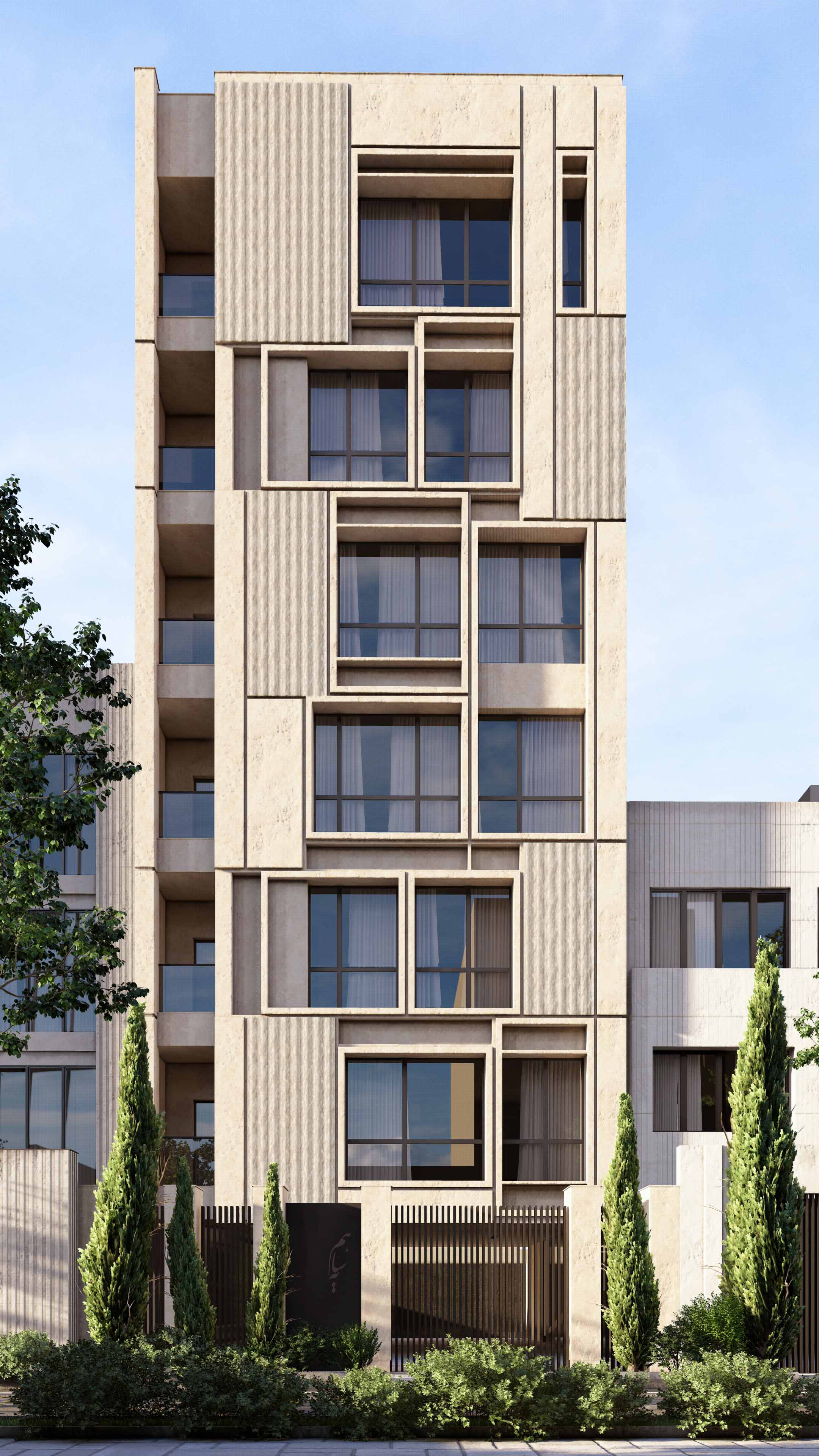 «پروژه همسایه ۲، واقع در بلوار دانشآموز شهر مشهد، تلاشی است برای بازتعریف مقیاس نما از طریق قاببندیهای متنوع. این قابها با ایجاد سایهبانهای افقی و عمودی، نقش مؤثری در کنترل نور ورودی به ساختمان ایفا میکنند و همزمان، از درون فضاها، چشماندازها را بهدقت قاب میگیرند. بدینگونه، نما نهتنها به مقیاس انسانی نزدیک میشود، بلکه به واسطهی تعامل نور و دید، کیفیت فضایی تازهای مییابد.