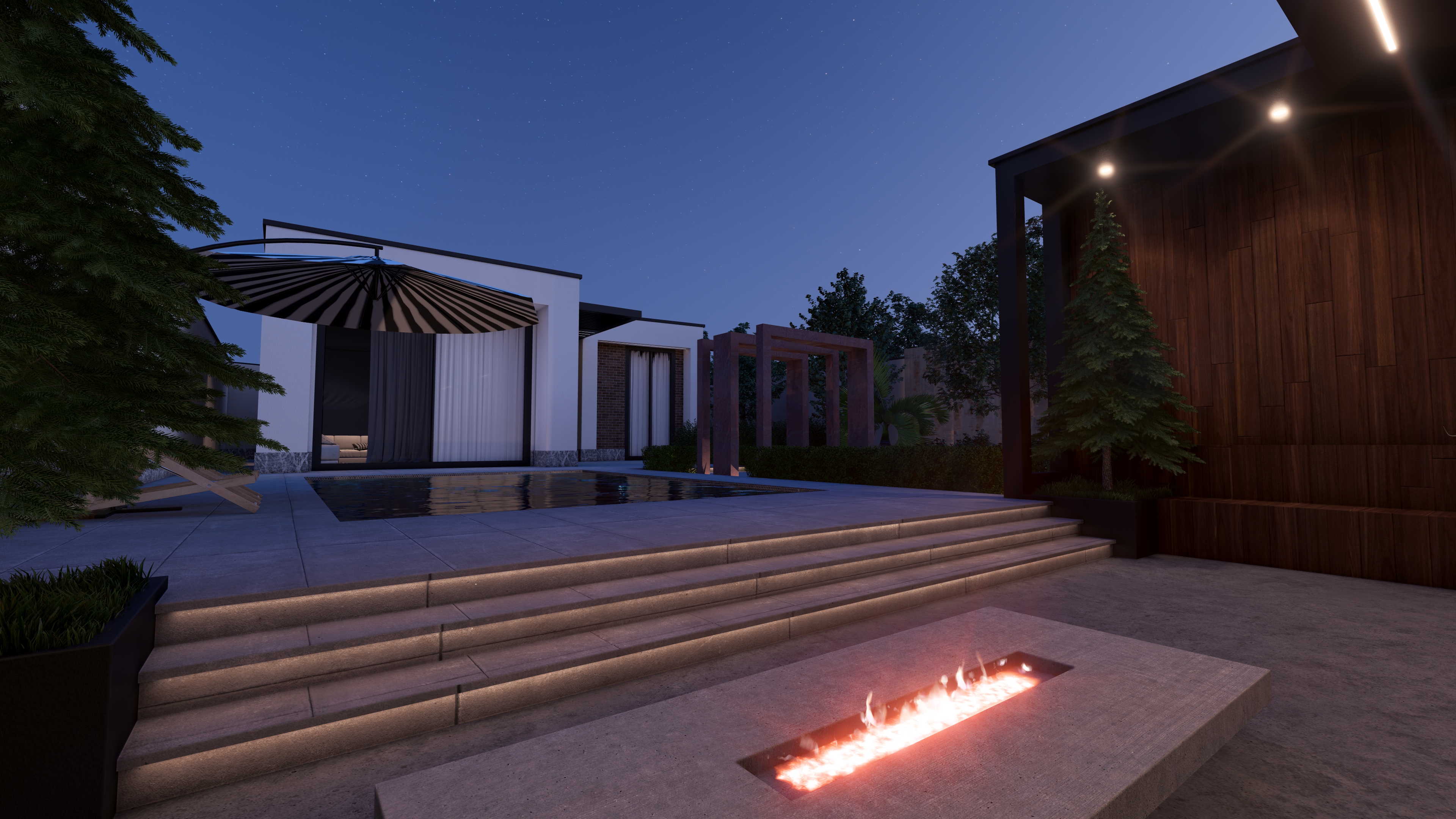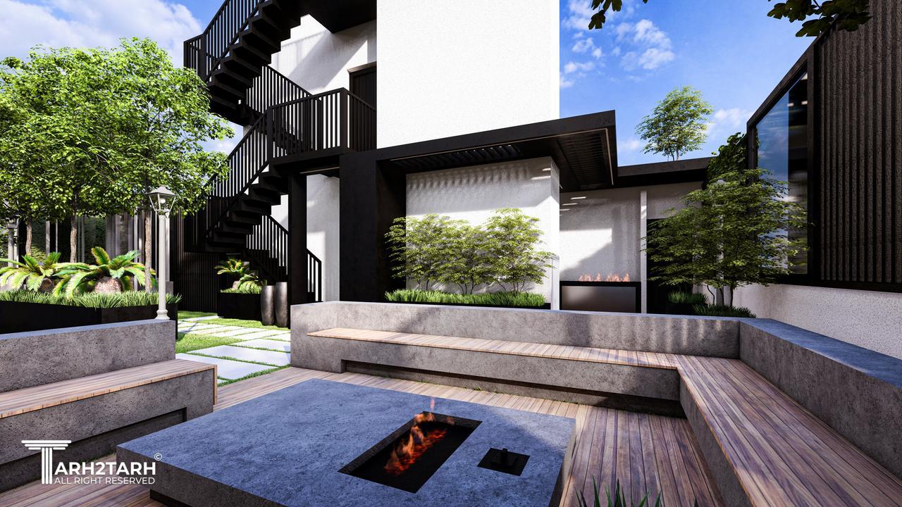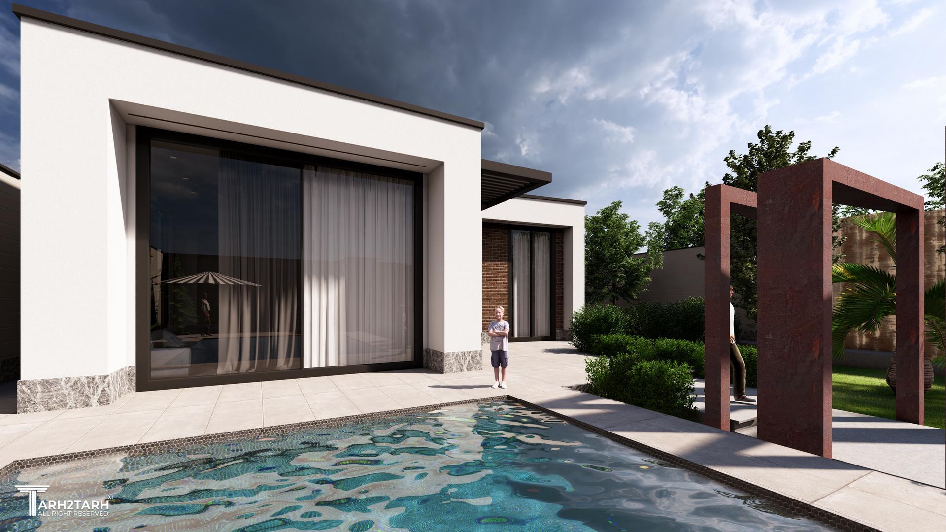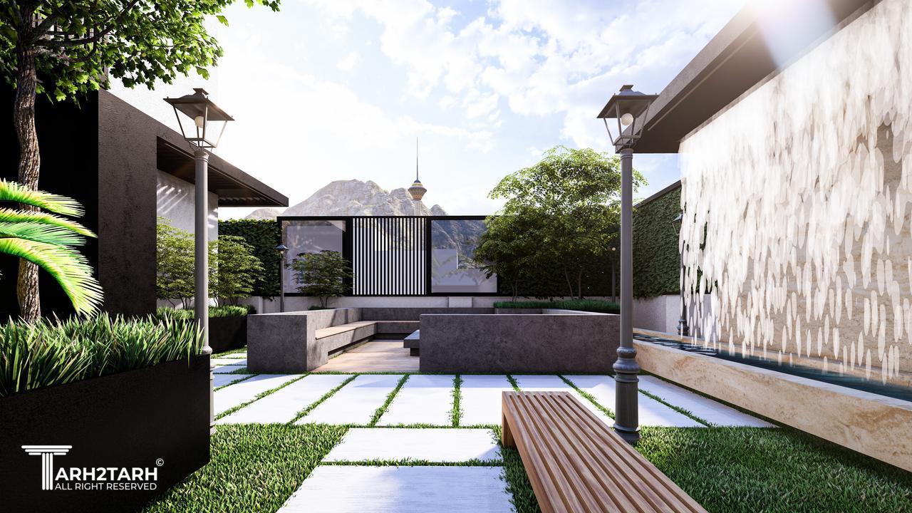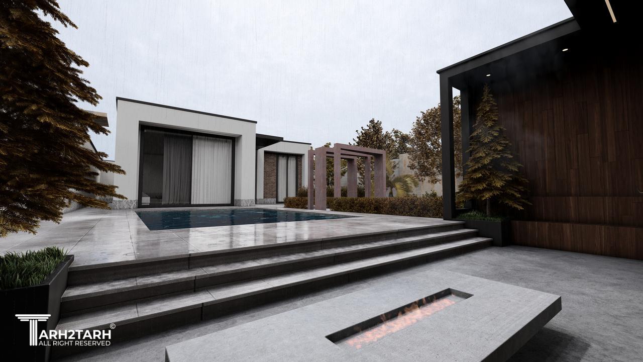 طراحی ویلا فلت به سبک مدرن همراه با لنداسکیپ زیبا و در عین حال ساده
