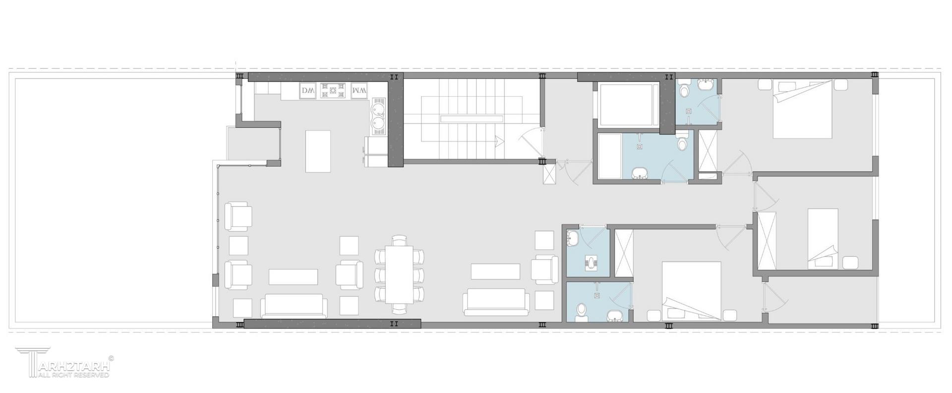 پروژه «همسایه ۵» در بلوار دانشجو ۲۵ شهر مشهد واقع شده است. در طراحی این بنا تلاش شده است تا با ایجاد شکستها و عقبنشستگیهای هدفمند در نما، ارتباطی هماهنگ با بافت و ساختمانهای مجاور برقرار شود و این رویکرد بهصورت مؤثر به فضای داخلی نیز منتقل گردد. این شکستها در پوستهی ساختمان، منجر به شکلگیری تراسهایی متنوع از نظر ابعاد و تناسبات شدهاند؛ فضاهایی که علاوه بر ارتقای کیفیت زیستی واحدها، ریتم و حرکت بصری را در نمای پروژه ایجاد میکنند و نگاه مخاطب را بهصورت پیوسته بر سطح نما هدایت مینمایند.