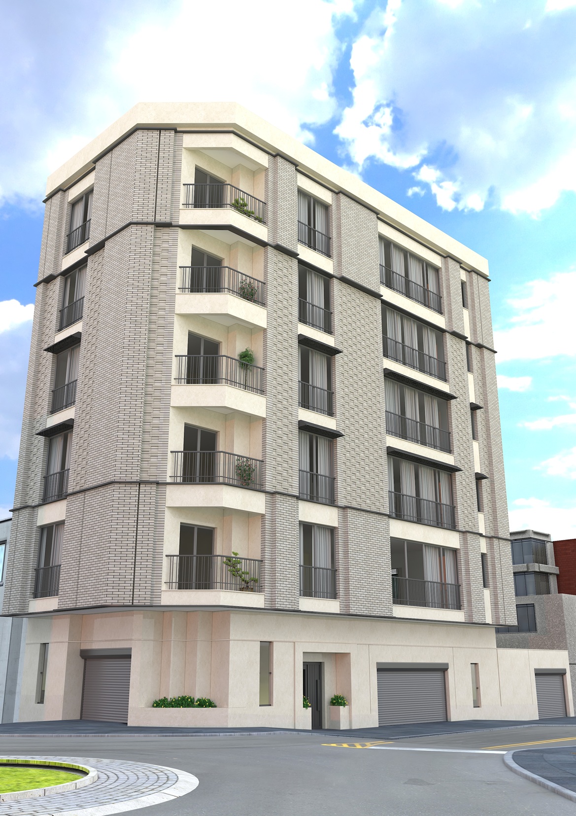 مبنای طراحی خواست کارفرما منطبق با ضوابط شهرسازی و کمیسیون نمای منطقه 7 تهران بانضمام استفاده از درصد زیادی آجر بوده که جهت رعایت هماهنگی جنس مصالح با ساختمانهای همجوار و در عین حال گفتمانی مجرد و منحصر به فرد این طرح مورد تایید قرار گرفته است