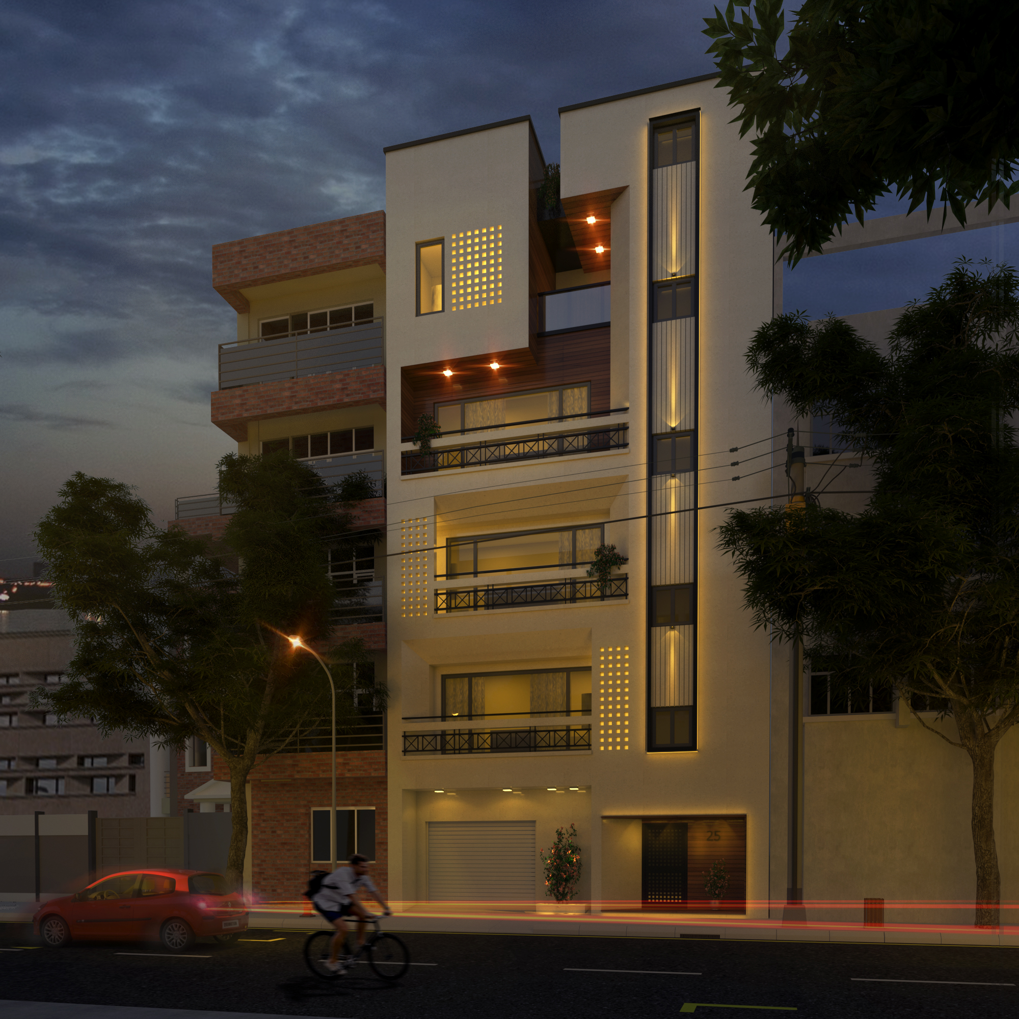 خواست کارفرما طراحی 3 واحد مسکونی در زمینی به مساحت 155 متری که طبقه سوم و چهارم بصورت یک واحد دوبلکس در نظر گرفته شده انجام شد