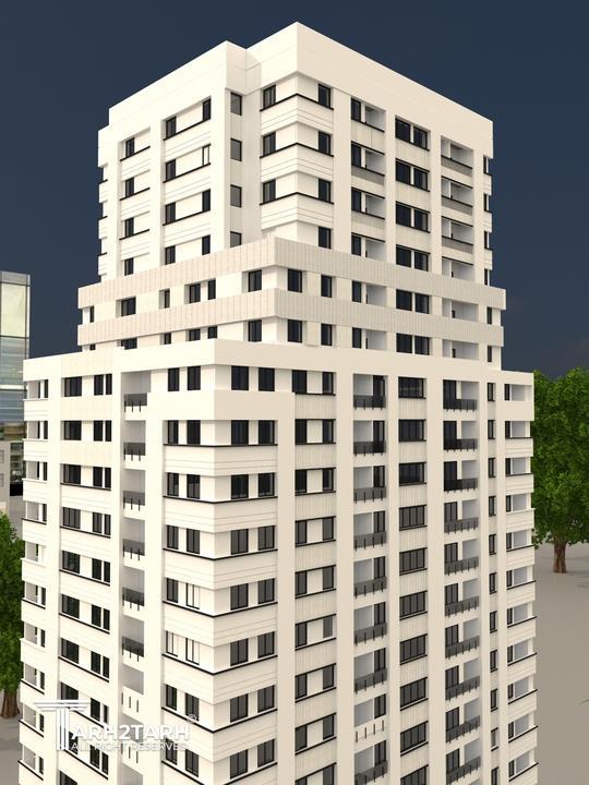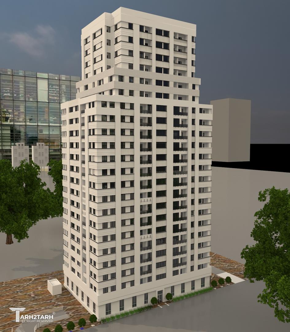 پروژه برج مسکونی در 21 طبقه و4 طبقه زیرزمین و با متراژ ساخت 27000متر مربع