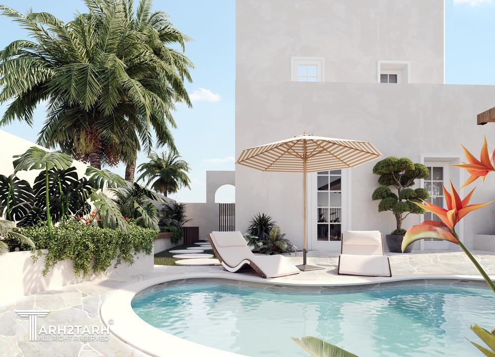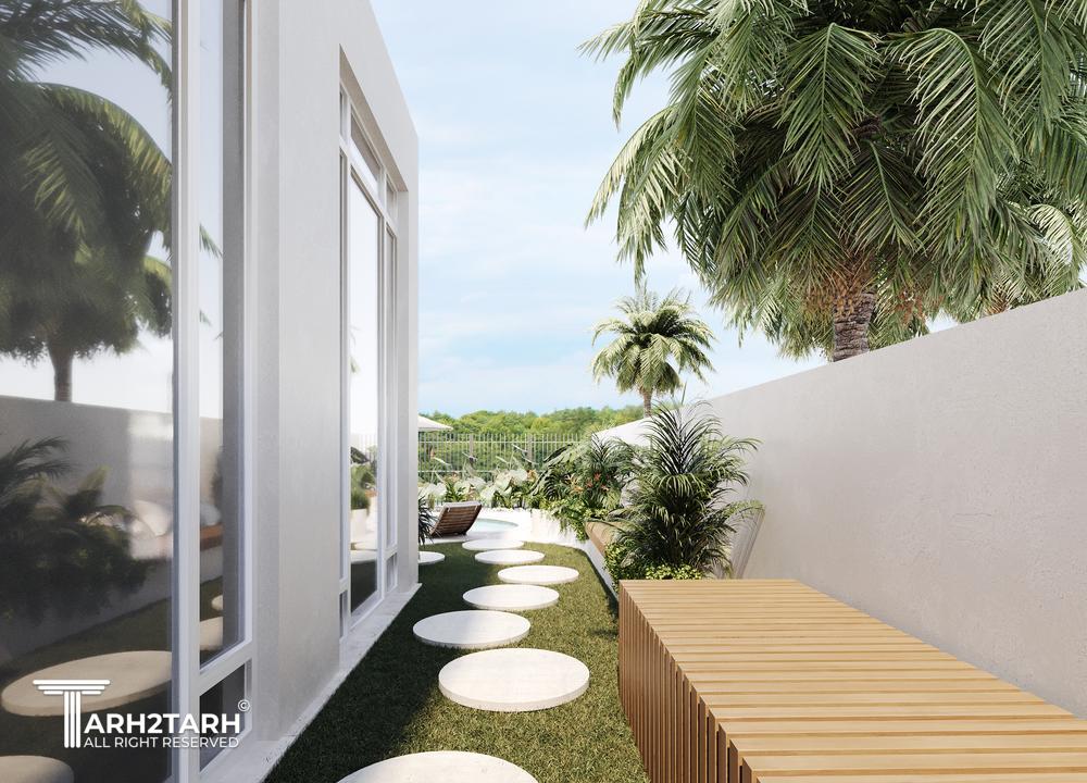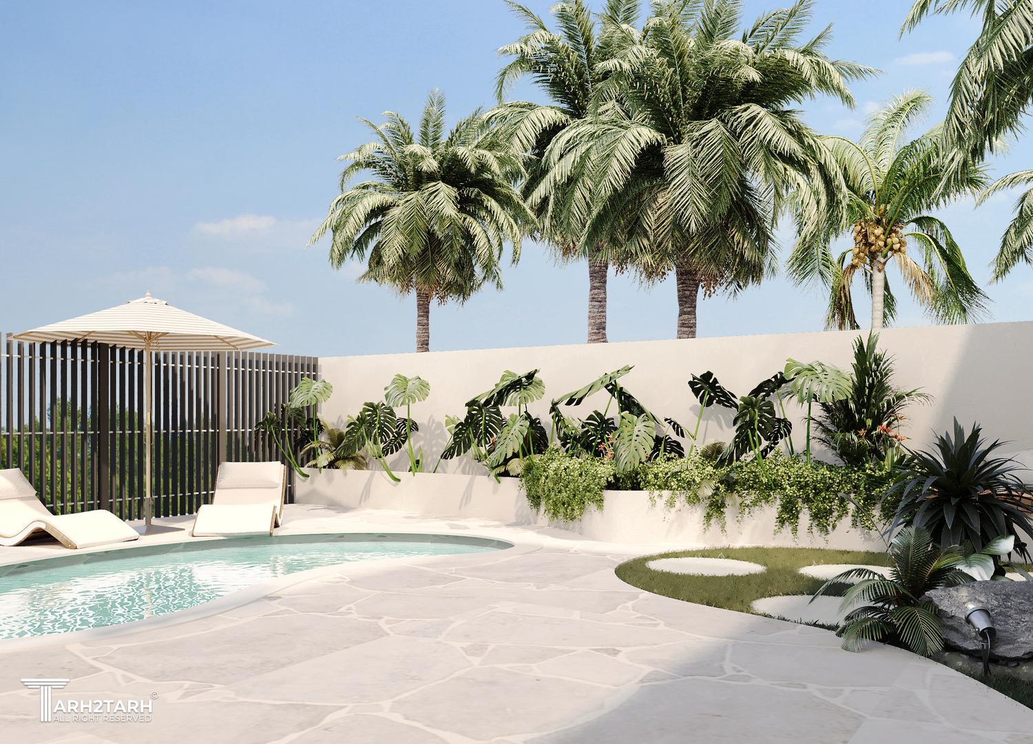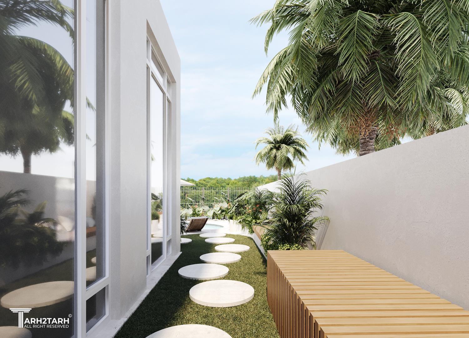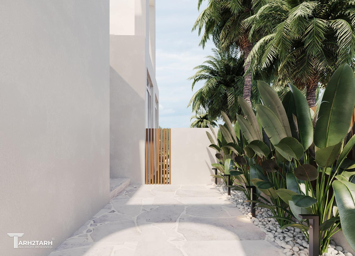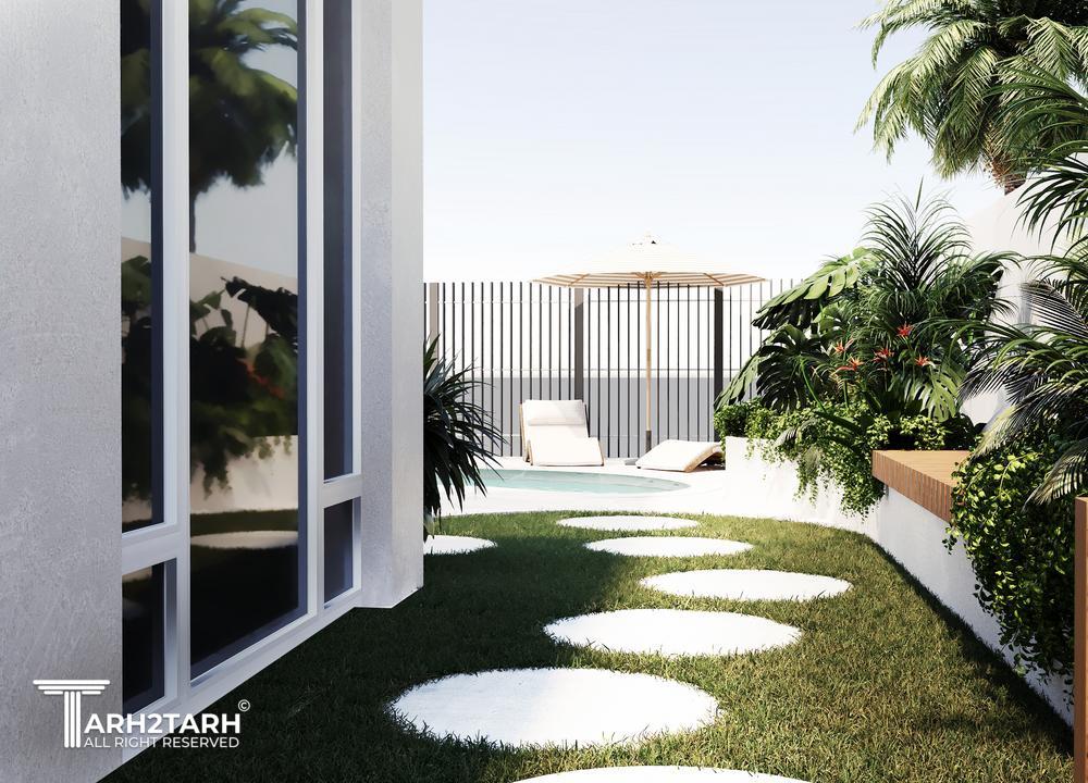 این لندسکیپ با الهام از سبک مدرن گرمسیری، ترکیبی از سطوح روشن، خطوط نرم و گیاهان انبوه استوایی را ایجاد کرده تا فضایی آرام، لوکس و یکپارچه بسازد.