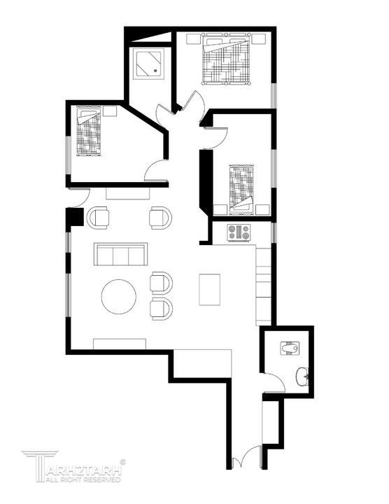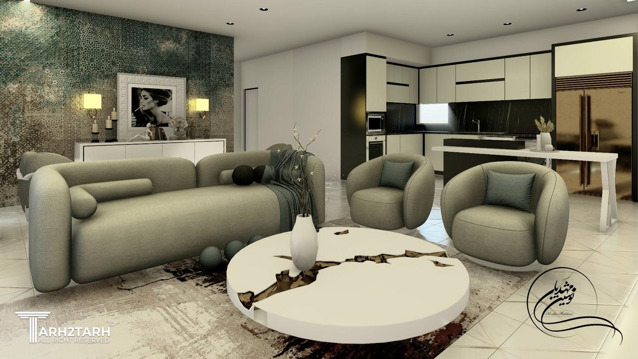 این پروژه در طراحی دکوراسیون داخلی بخش های آشپزخانه، اتاق خواب و قسمت نشیمن انجام گرفت. در طراحی این پروژه به علت ارتفاع کوتاه سقف چالش هایی برای طراحی کناف وجود داشت. لذا با حداقل طراحی های کنافی انجام گرفت