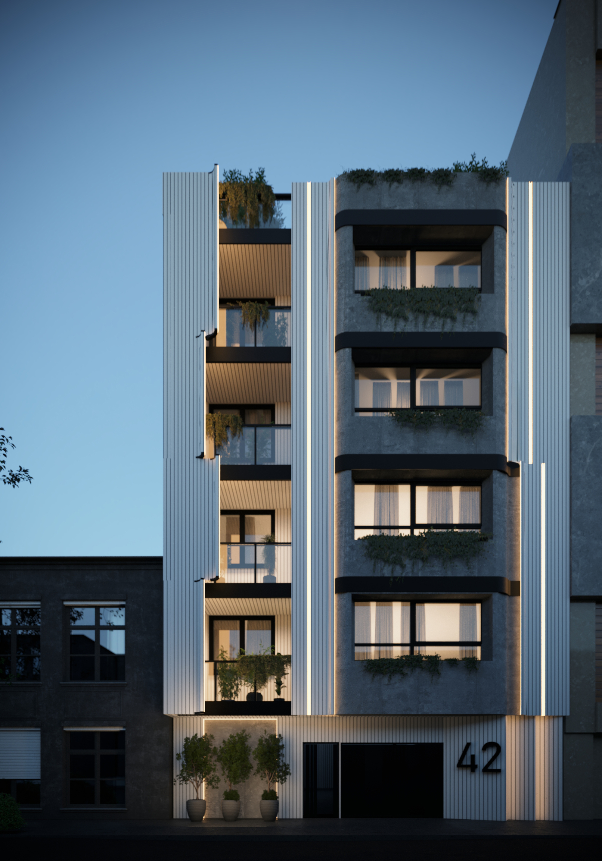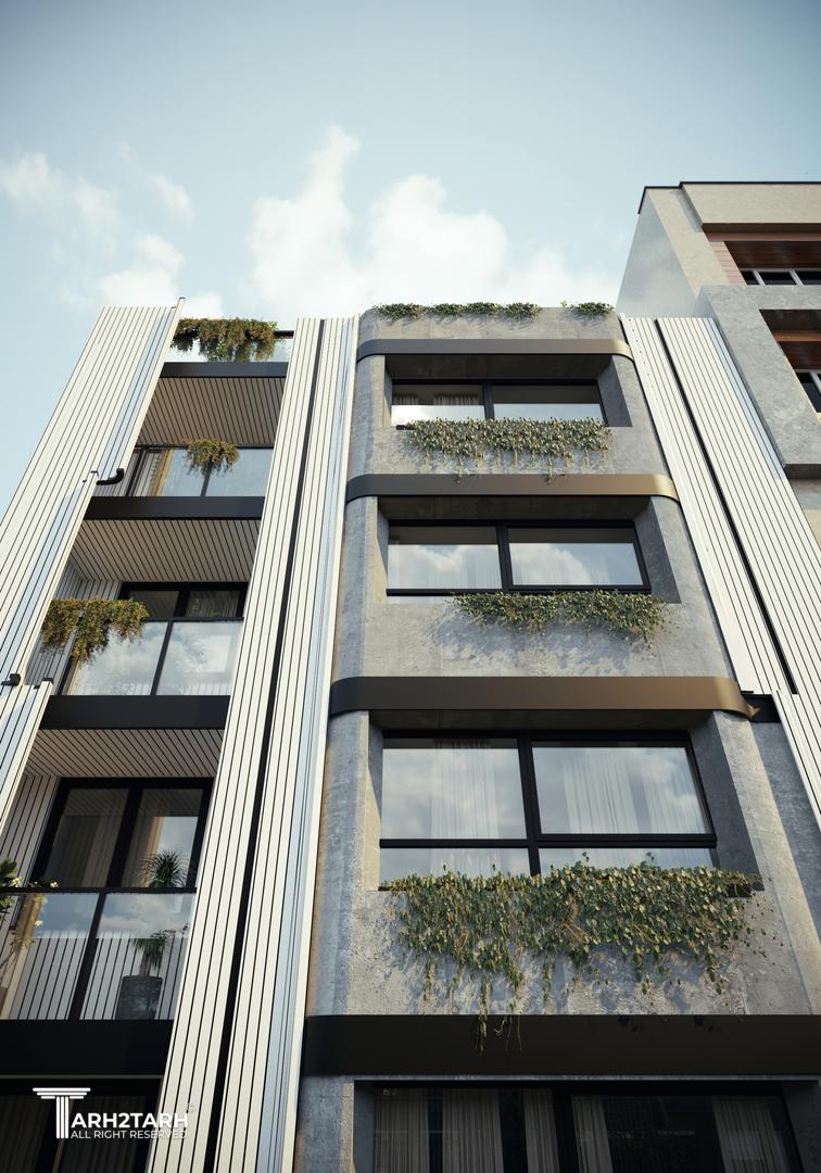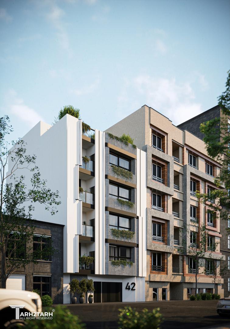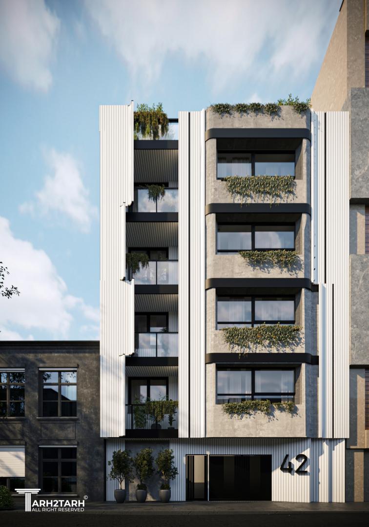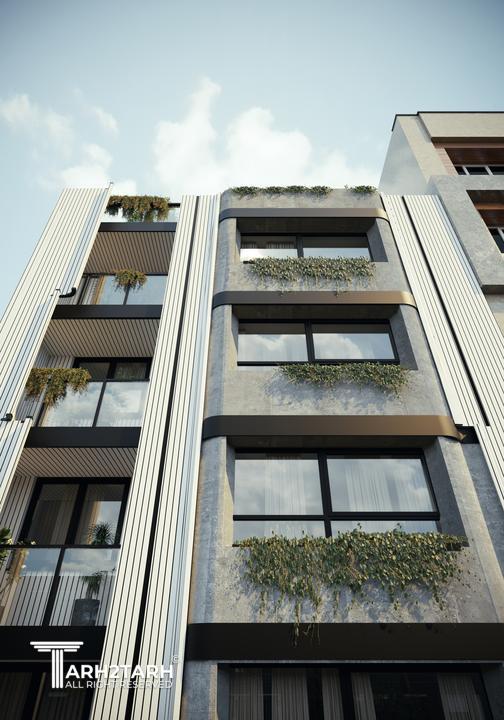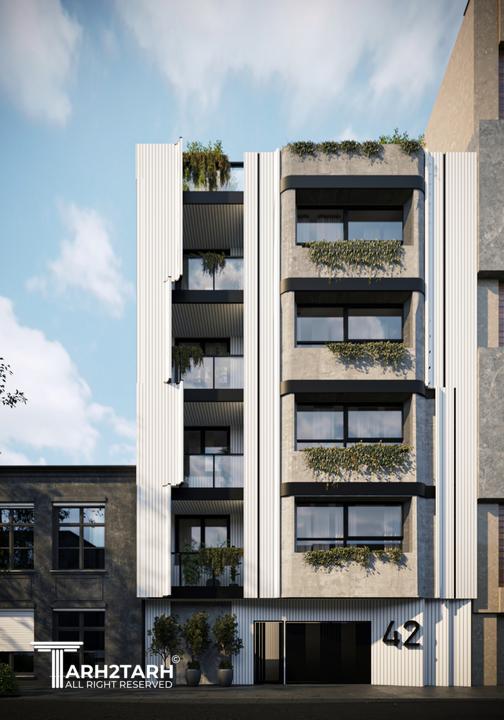 پروژه طراحی نما با توجه به خواست کارفرما با متریال آجر سفید ، بتن و سنگ انجام شد