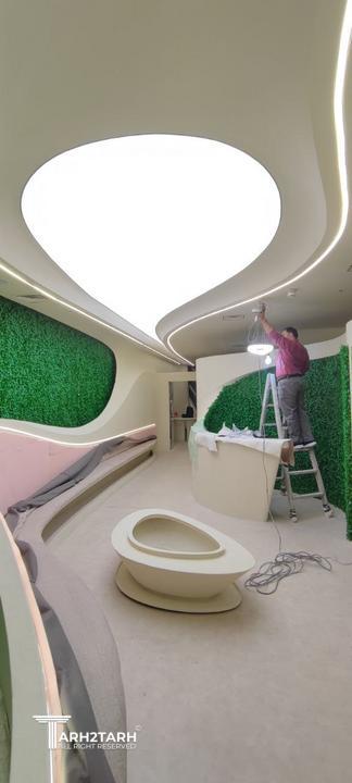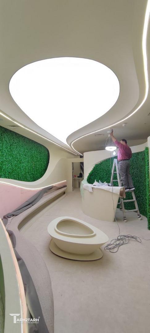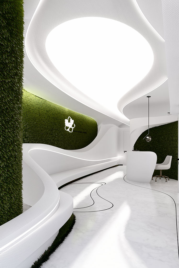 این فضا با رویکردی مدرن و ارگانیک طراحی شده تا تجربهای آرام، لوکس و آیندهگرایانه برای مراجعهکنندگان ایجاد کند. خطوط سیال، نورپردازی گسترده و ترکیب بافت سبز با سطوح سفیدِ پیوسته، هویتی مینیمال و در عین حال پویا به کلینیک بخشیده و حس سلامت، پاکیزگی و آرامش را تقویت میکند.