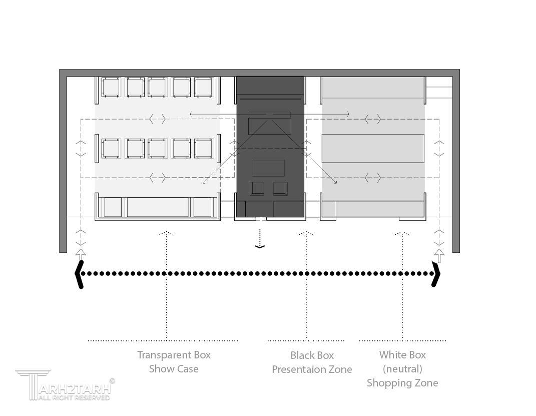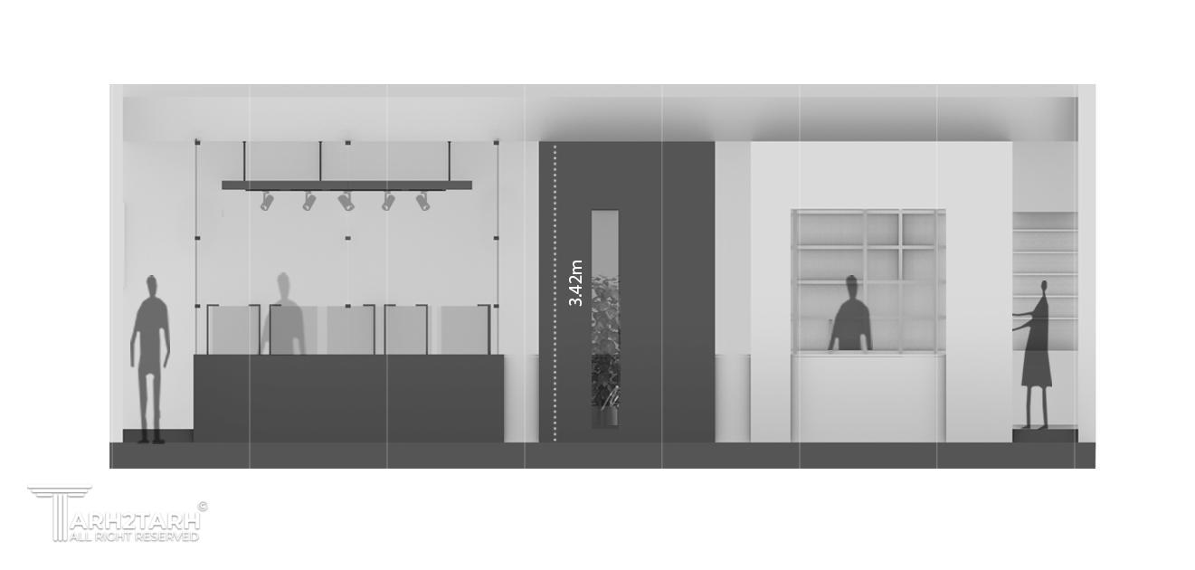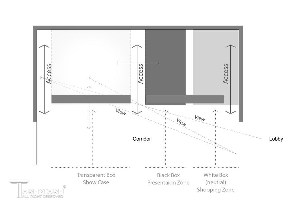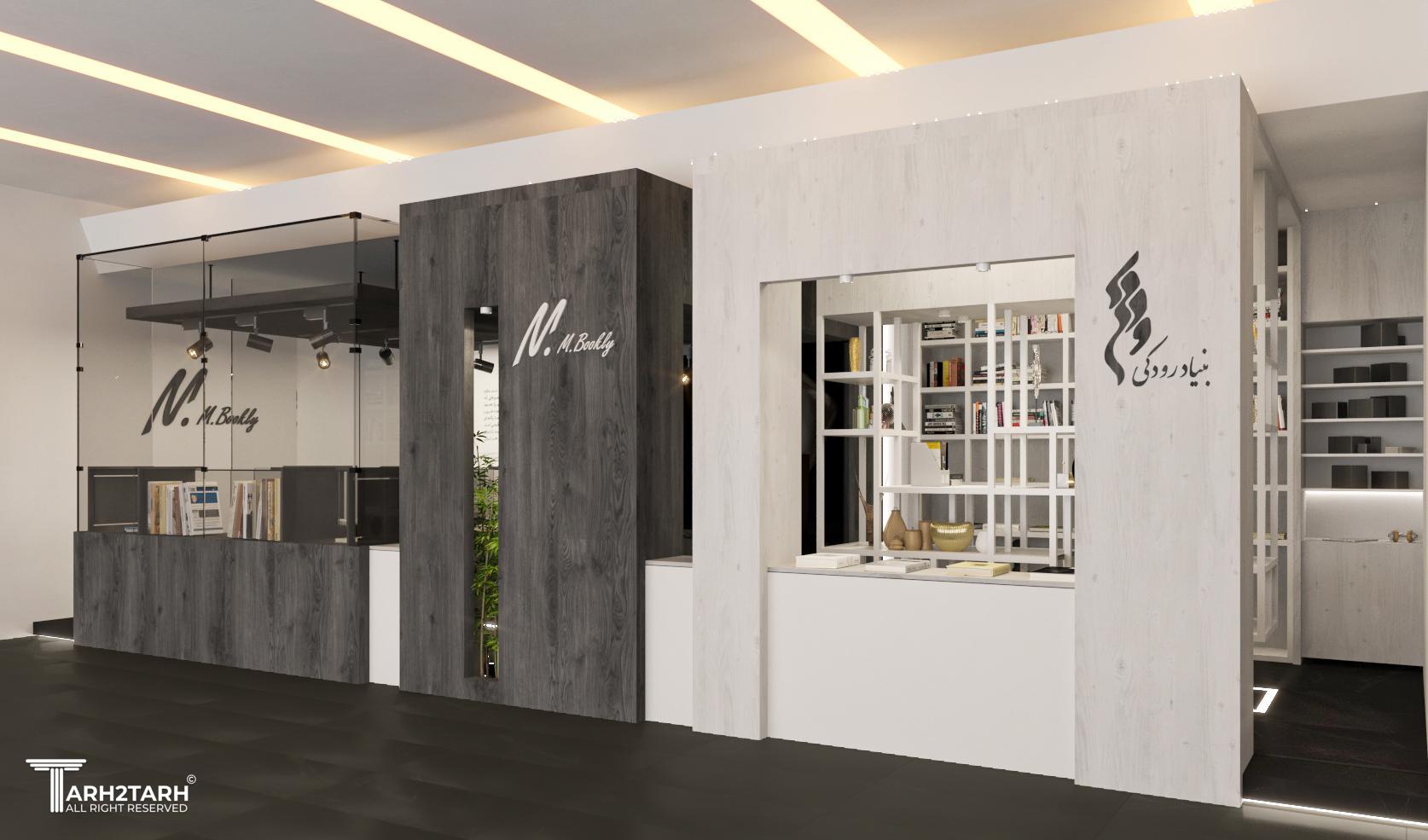 پروژه در محلی با ابعاد 10/85 در 3/50 متر داخل تالار وحدت تهران برای نمایش و فروش کتابهای نفیس “تیراژ محدود” و همچنین فروش محصولات فرهنگی هنری اختصاص تعریف شدهاست. قرارگیری این دو کاربری در کنار هم با توجه به تمایز زیاد در ارزش محصولات ، یکی از چالشهای برنامه ریزی فضا میباشد. از طرفی خود ساختمان تالار وحدت از بناهای ارزشمند تهران محسوب میشود. با توجه به این دو مهم، استراتژی طراحی بر مبنی هر چه کم اثرتر و خنثیتر بودن بستر ارائه در جهت تاکید بر مکان موجود و از طرفی خود کتب بنا شدهاست با توجه به خواسته کارفرما مبنی بر استفاده از طرح این فضا به عنوان امضای شخصی در محیطهای دیگر و همچنین ارزش کتب ارائه شده و داشتن مخاطب و خریدار خاص، مبنای طراحی بر قرارگیری مخاطب در یک فضای تعریف شده مجزا برای بازدید و خرید - به جای تجربه آن در کنار کالاهای دیگر - تعریف شد؛ کلیت فضا از سه بخش ویترین برای ارایه کتب همانند مجسمههایی در جعبههای شیشهای - در معرض دید همگان - فضایی سفید و خنثی برای ارایه محصولات فرهنگی و فضایی میانی برای ارایه کتب - به تصویر کشیدن آنها در صفحه نمایش و در نهایت مشاهده از نزدیک و ارائه خدمات مناسب به مخاطبان خاص- هم چنین نظارت و کنترل بر بخش محصولات فرهنگی، تشکیل خواهد شد با توجه به اهمیت حفظ کف و سکوهای موجود در فضا، کیوبها برروی یک کف کاذب سرتاسری با پوششی مانند کف اصلی بنا اجرا خواهند شد؛ به گونهای که سکوهای موجود کاور شده و بخشی از آنها بدون آسیب دیدهگی، برای نمایش آثار استفاده خواهند شد.