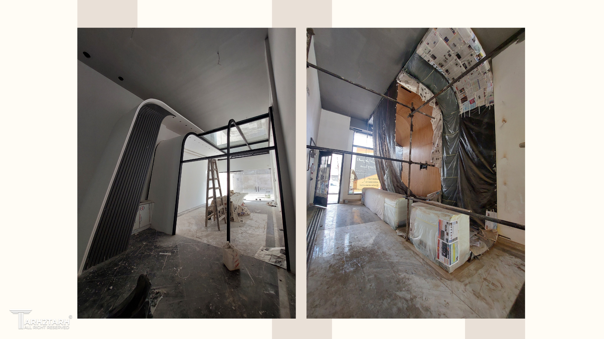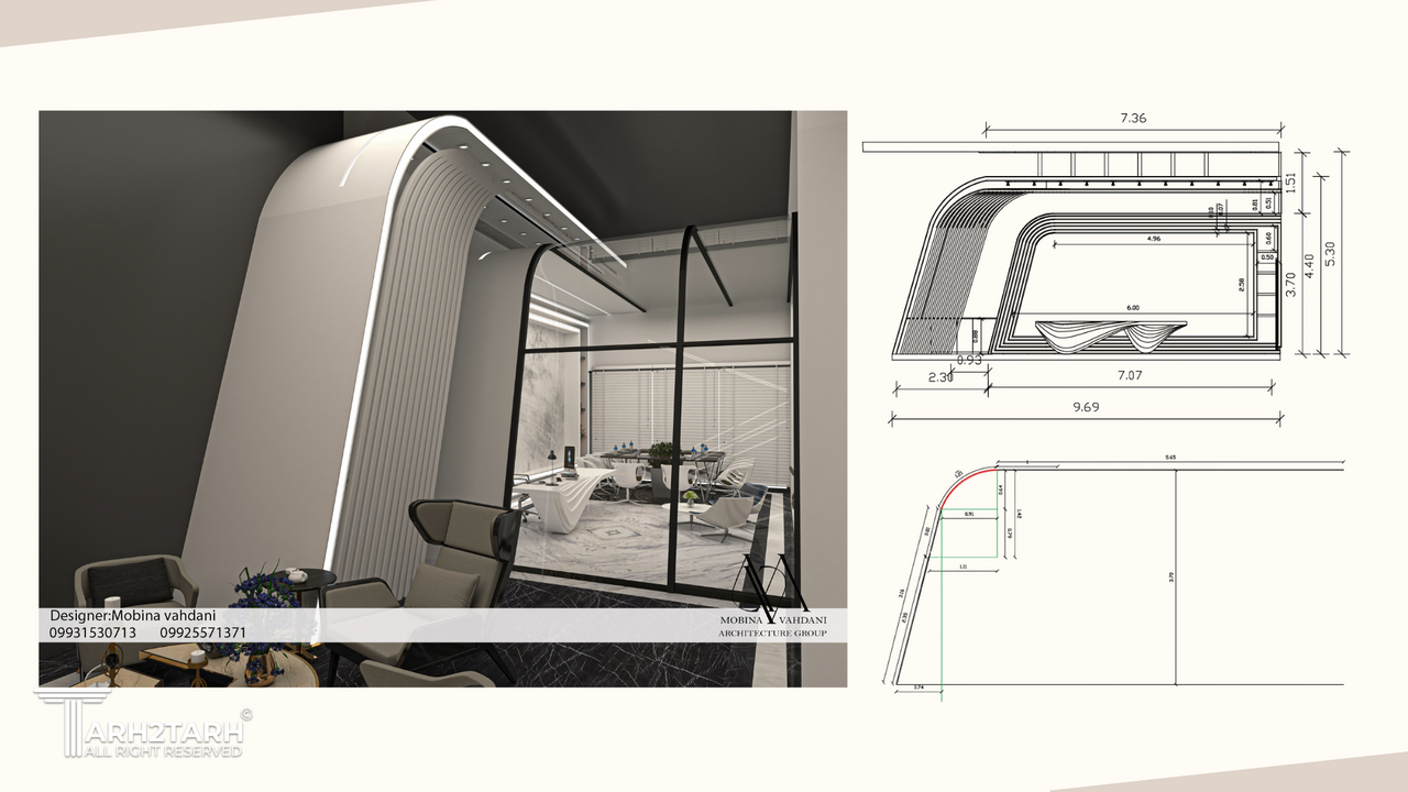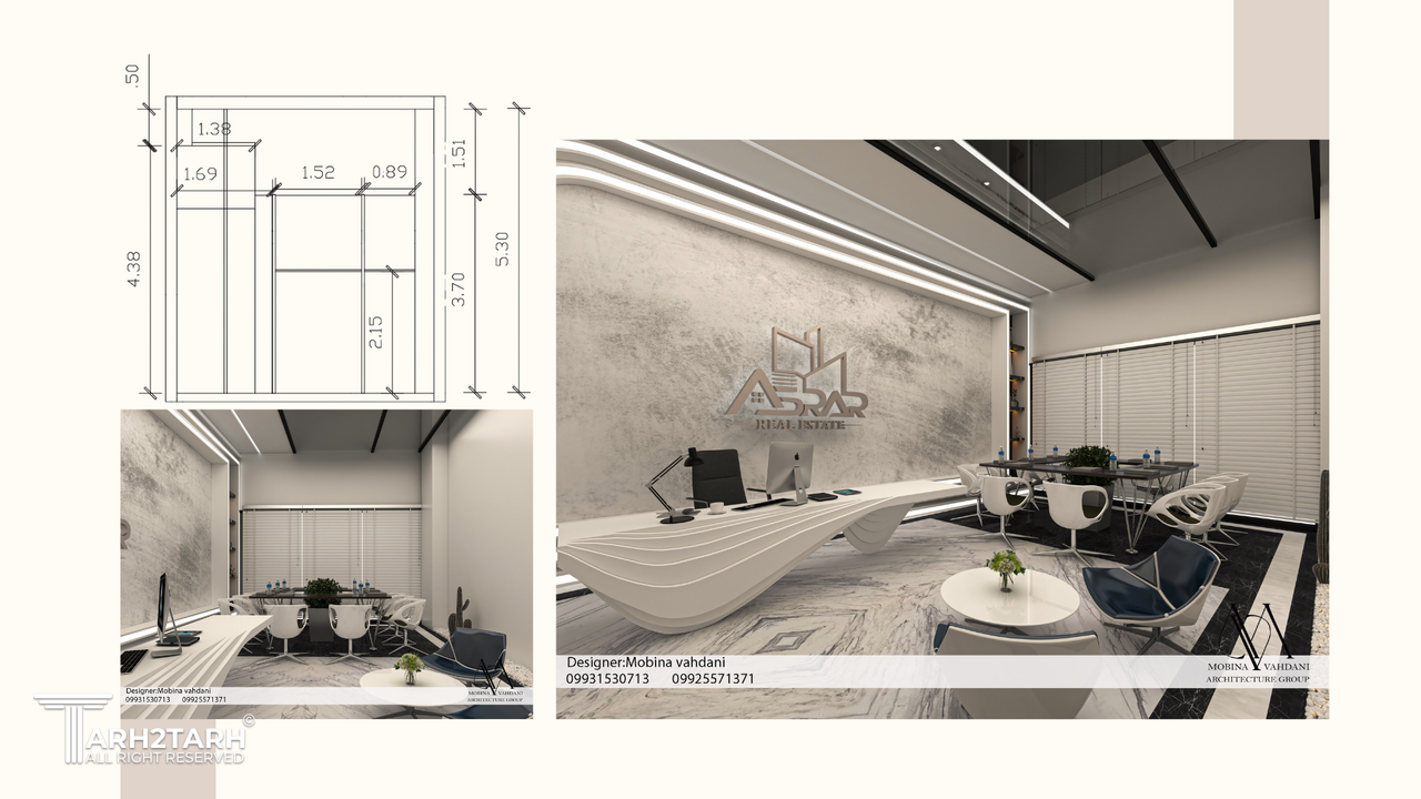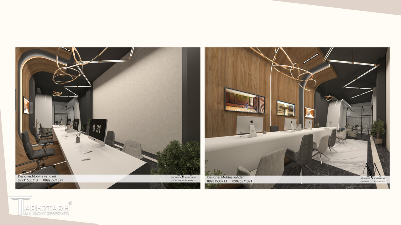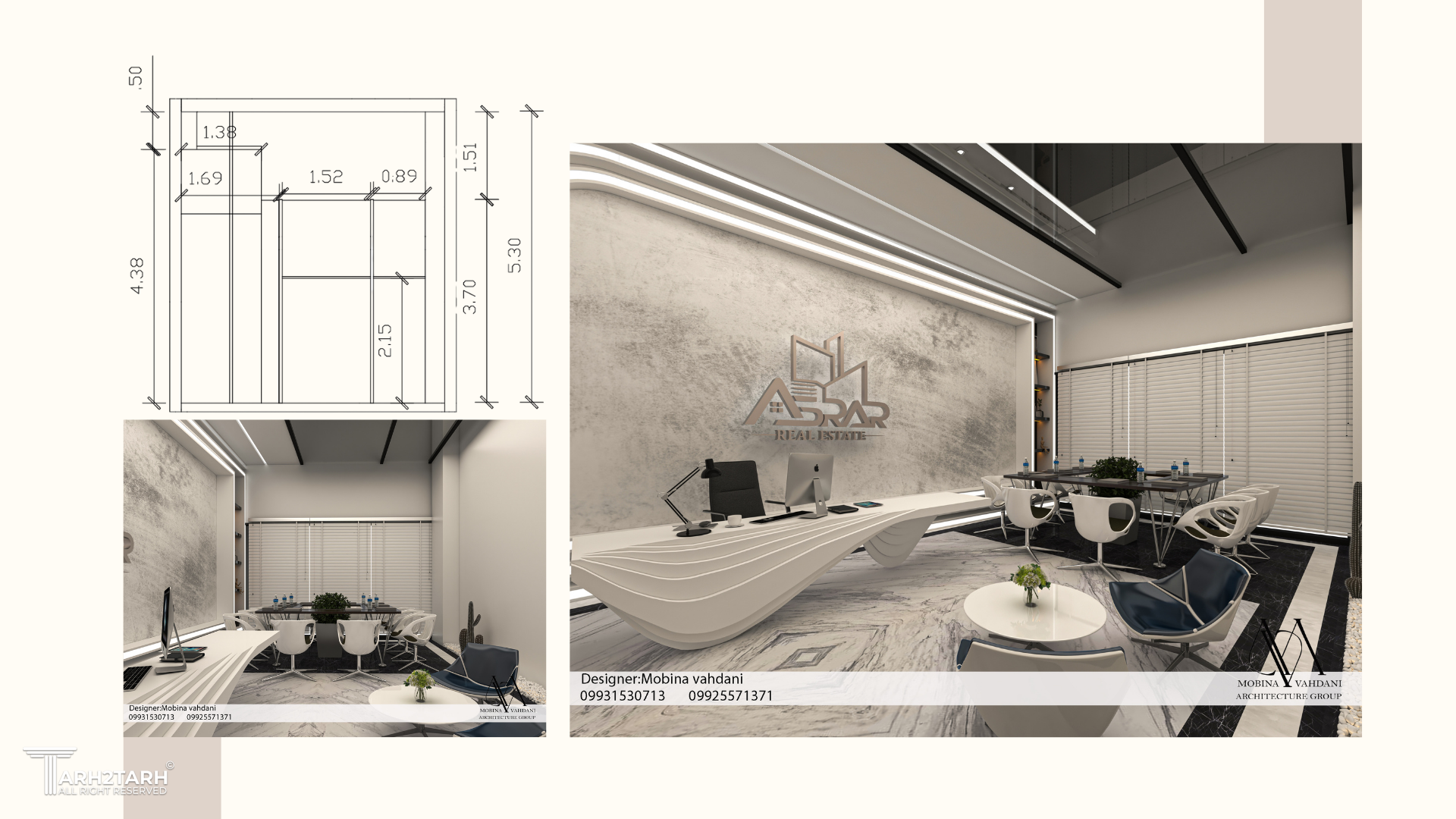 طراحی دفتر املاک که فضای مدیریت رو از فضای کارکنان جداکردیم و با طراحی منحصربفرد فضایی خاص رو ایجاد کردیم