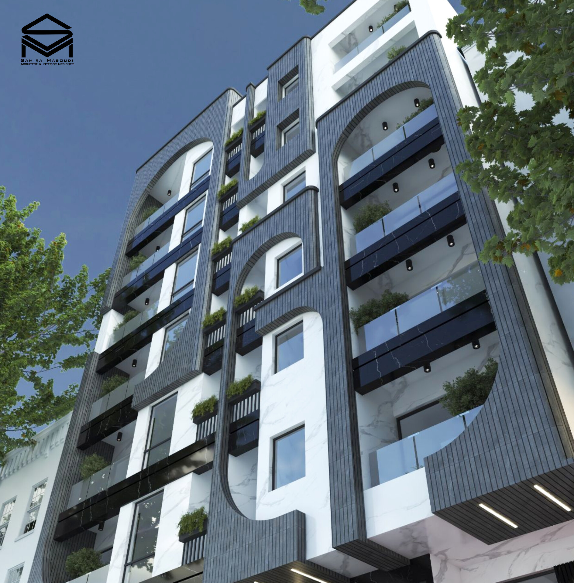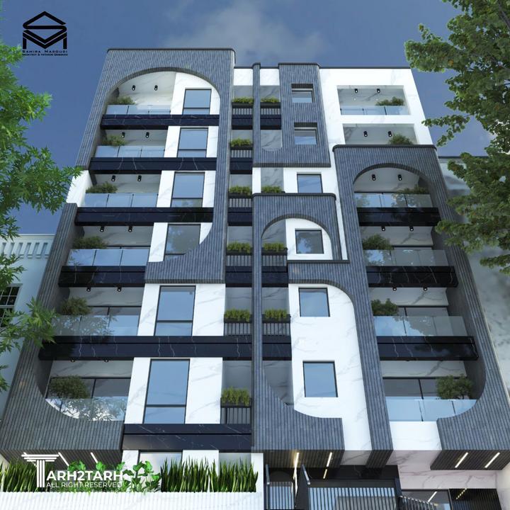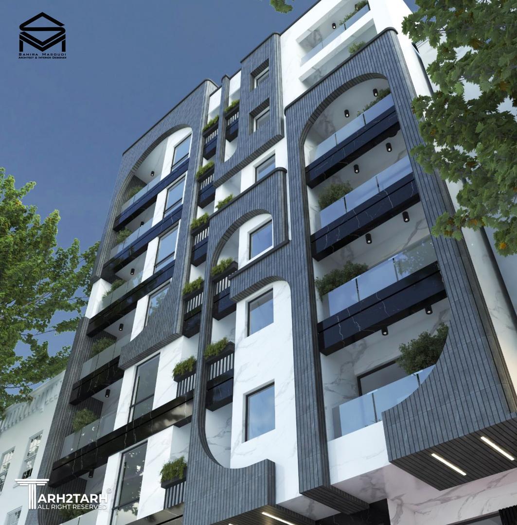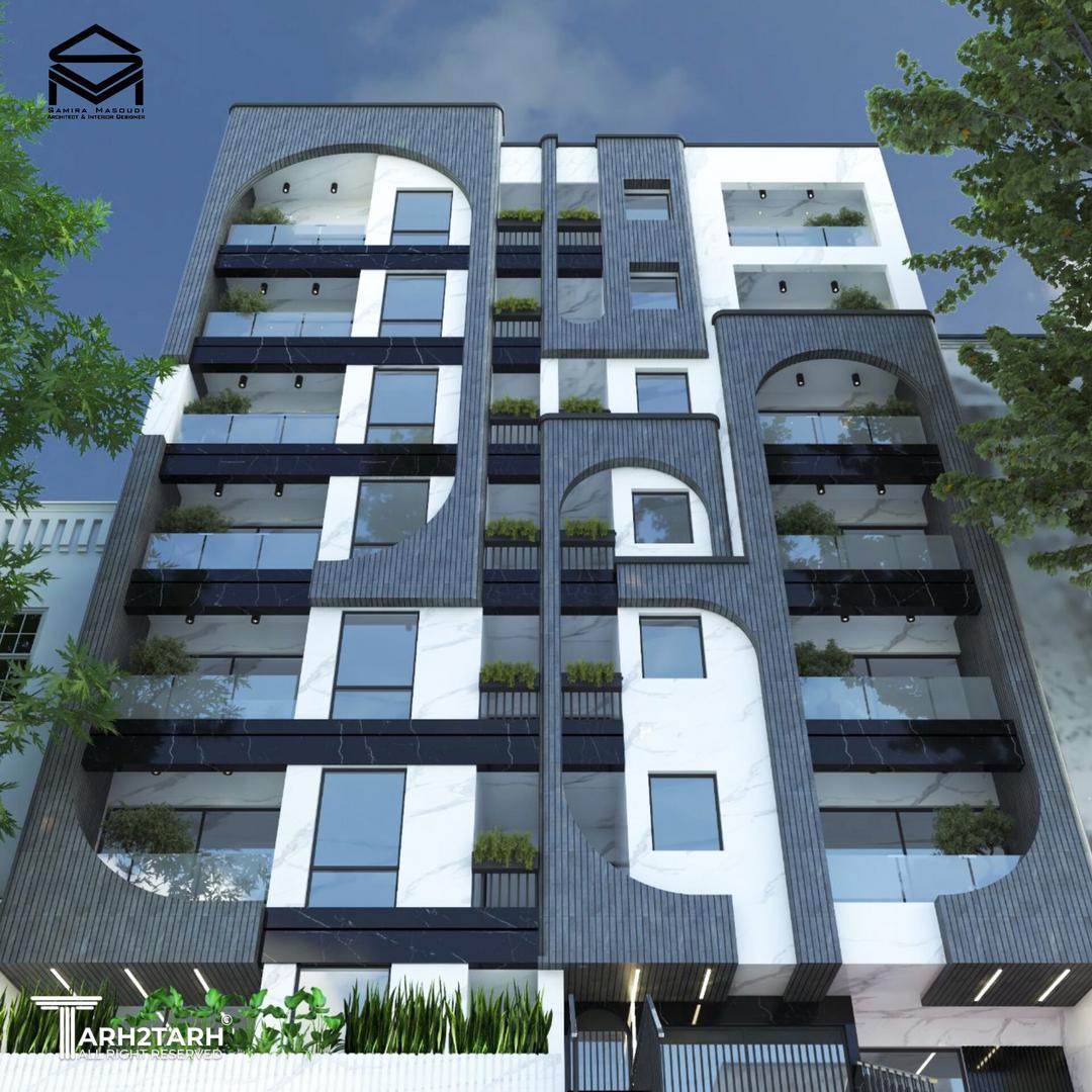 طراحی نمای مجتمع مسکونی ۱۲ واحدی،با رویکرد معماری ایرانی و استفاده از متریال آجر و سنگ