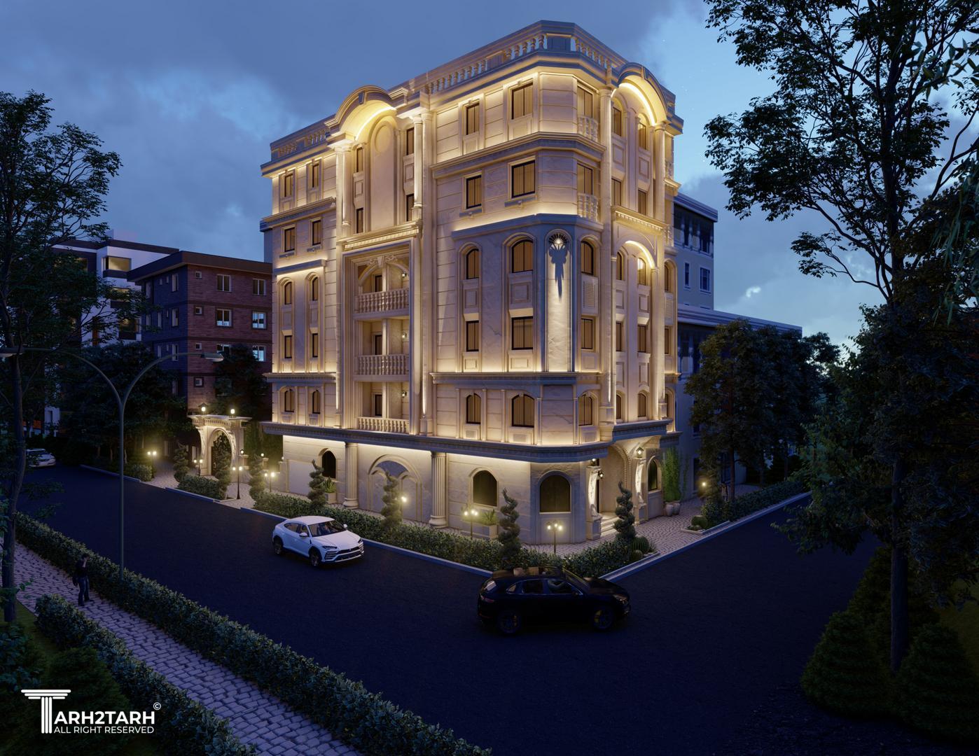 <p>در این پروژه خواسته کارفرما طراحی نمای کلاسیک با متریال سنگ بوده است. در طراحی نما سعی شده علاوه بر برآورده کردن خواسته ی کارفرما طراحی با الهام از عناصر و خطوط معماری سنتی در خانه های شهر کاشان انجام شود.</p>