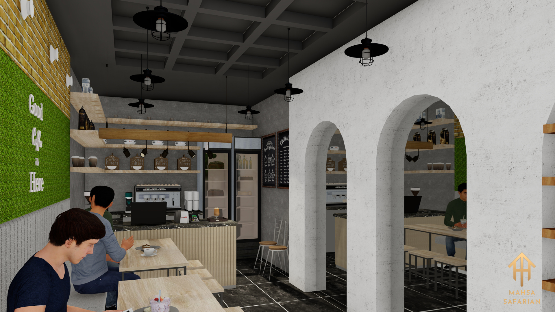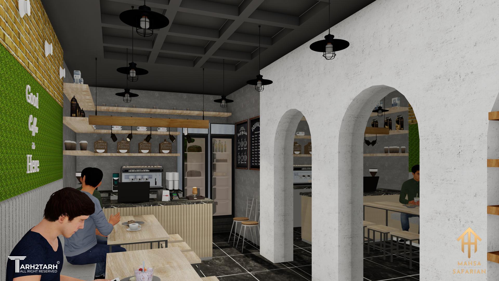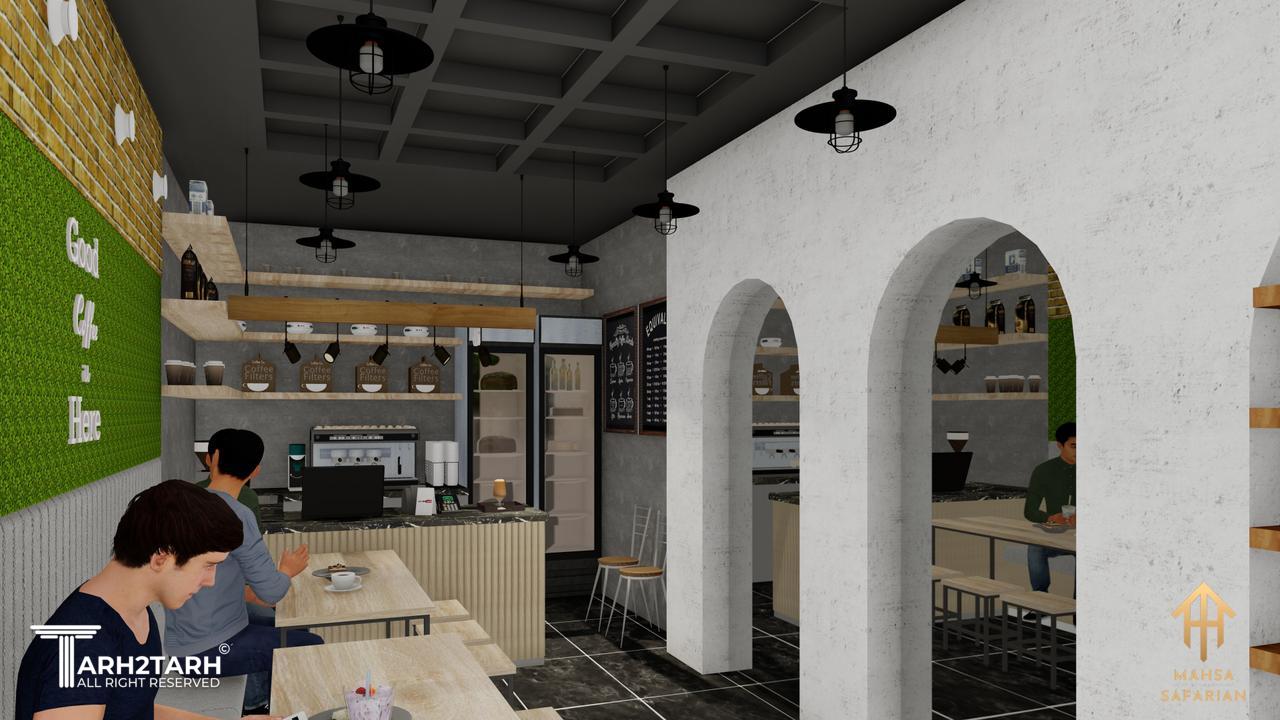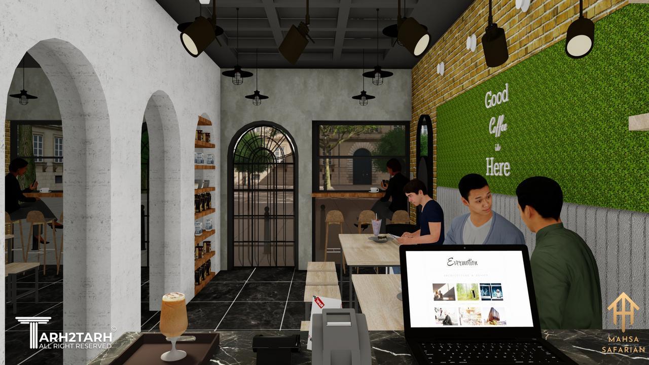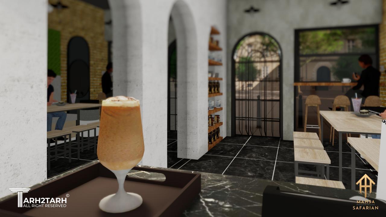 در این پروژه ما یک فضای با عرض نسبتا کم 3.5 متری داشتیم و در تلاش بودیم تا با طراحی داخلی و استفاده به جا از آینه به نوعی در بدو ورود کاربر این احساس را در وی ایجاد کنیم که فضا در عرض ادامه دارد و سالن بزرگ تر است از چیزی که کاربر می بیند.