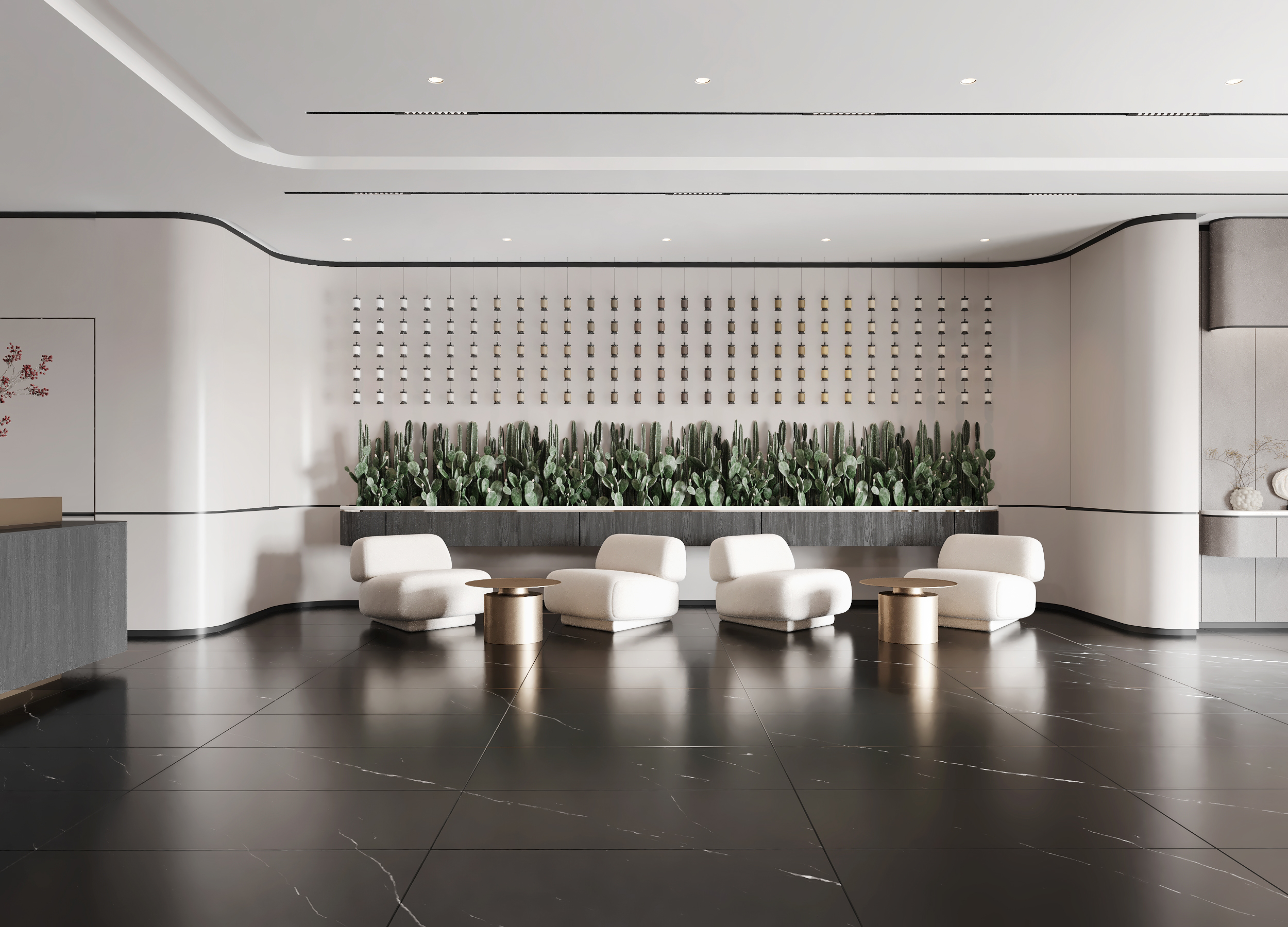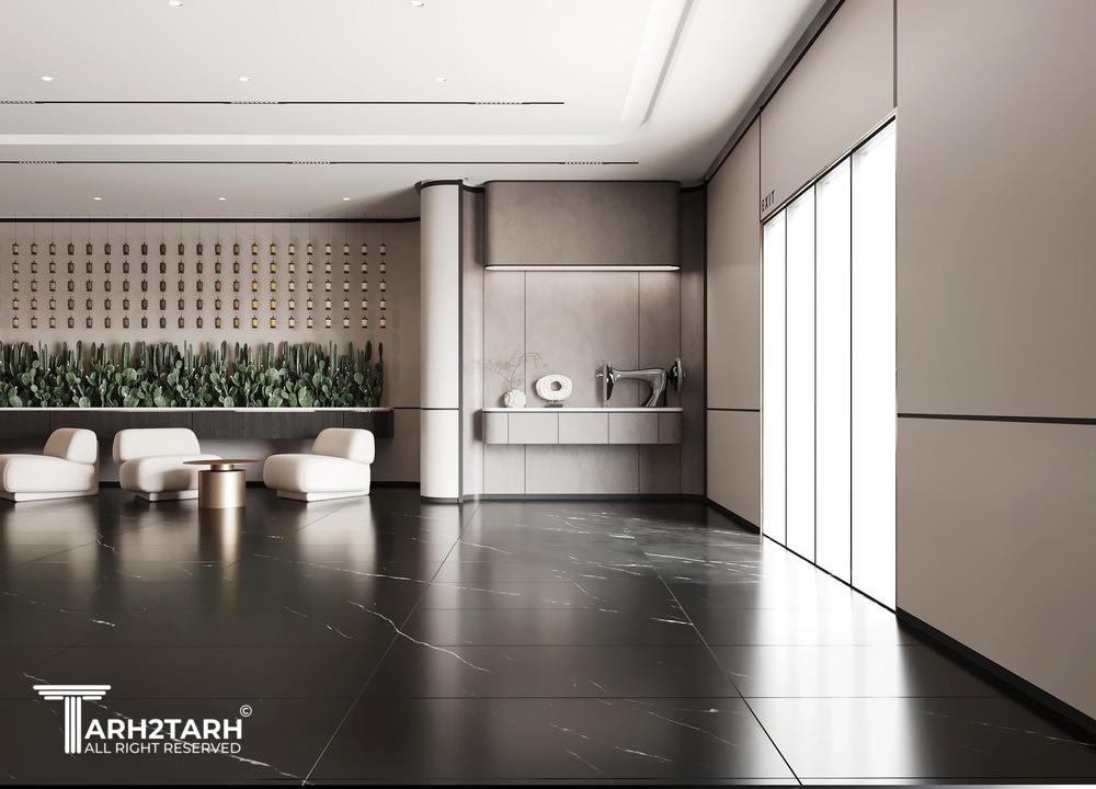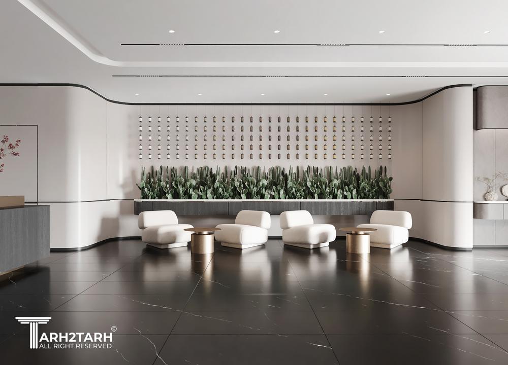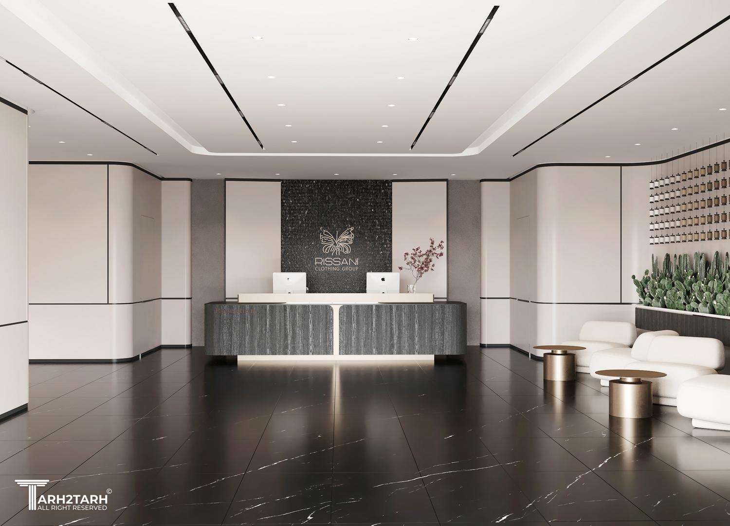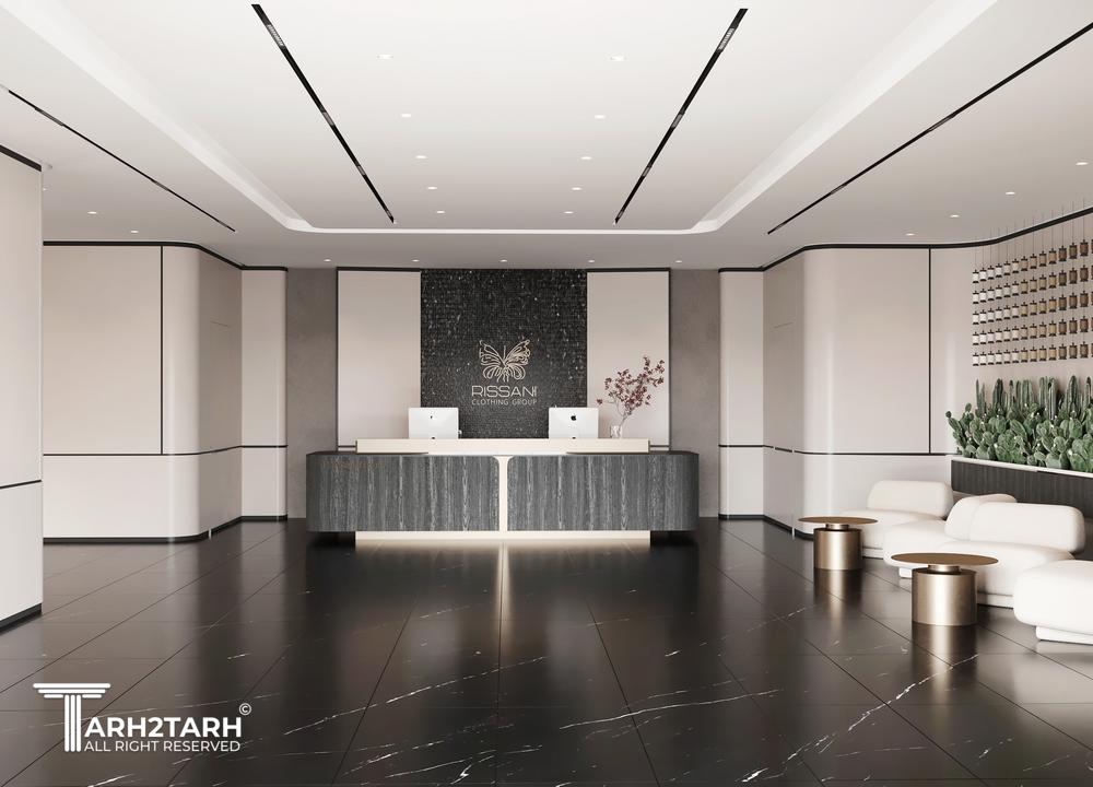 لابی و اتاق مدیریت کارخانه برند ریسانی در شهرک صنعتی قرچک برا ی طراحی مدرن