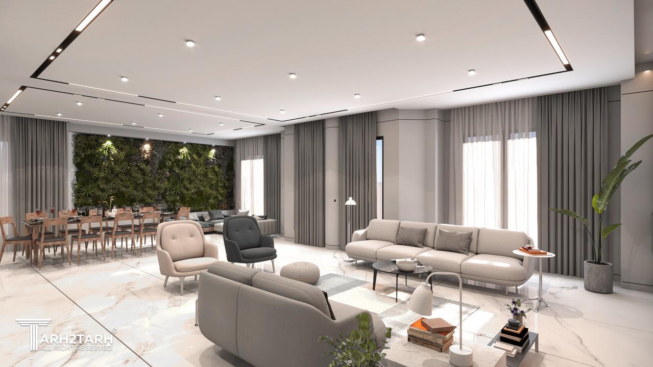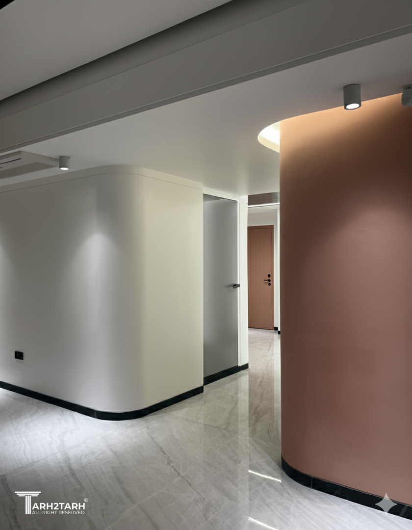 ایده اصلی از مفهومی میآید که زندگی در جریان است نه در خط مستقیم در منطقه ای مانند فرمانیه که کیفیت فضا و آرامش بصری اهمیت بسیار دارد خطوط نرم و پیوسته میتواند حس پویایی لطافت و آرامش را القا میکند در این مجتمع دیوار های گرد نماد تداوم زندگی و ارتباط میان فضا ها است