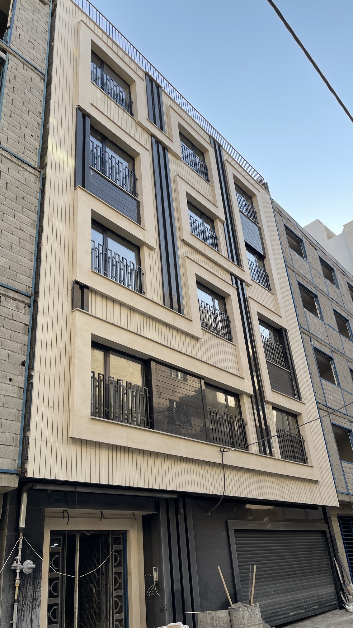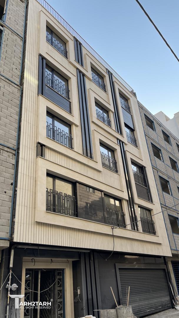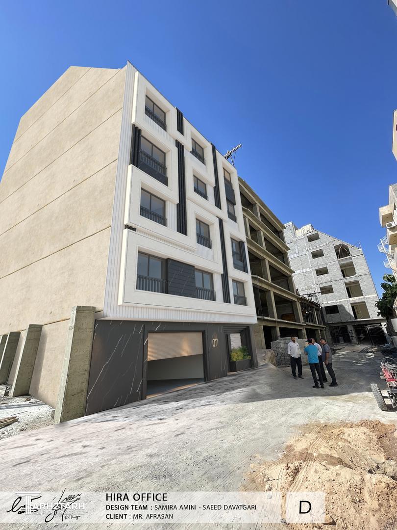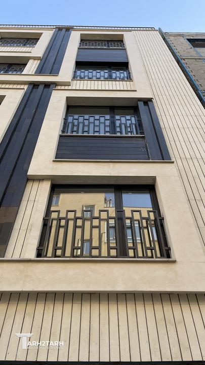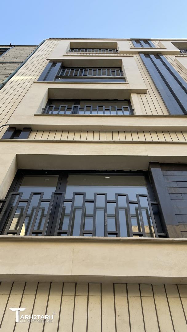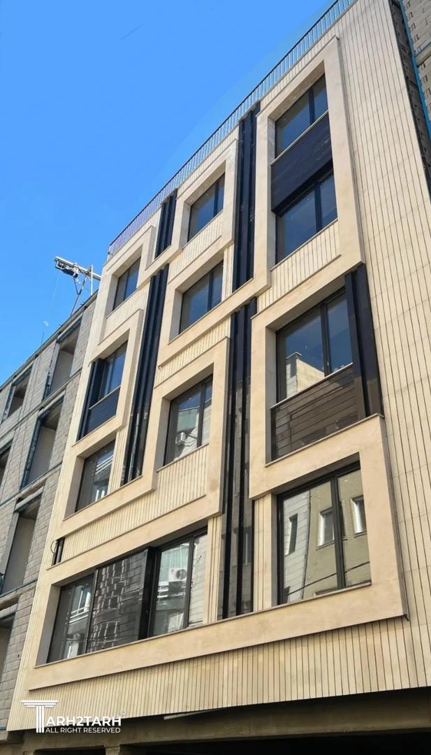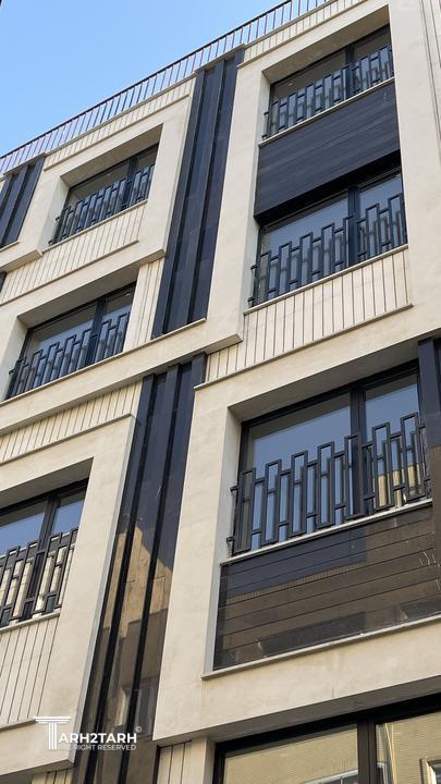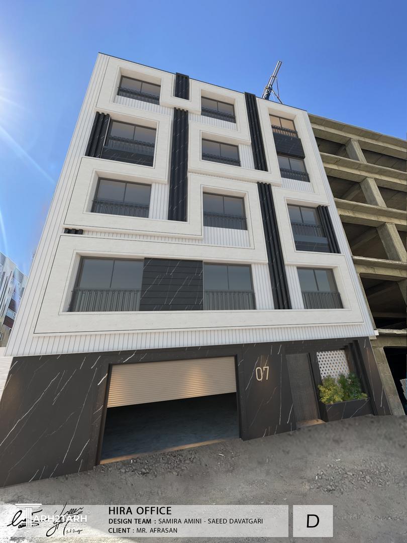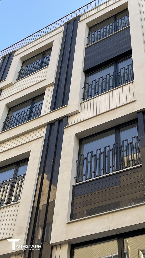 طراحی این نما با تاکید بر خطوط عمودی و افقی که بصورت یک خط پیوسته عناصر نما را در برگرفته
