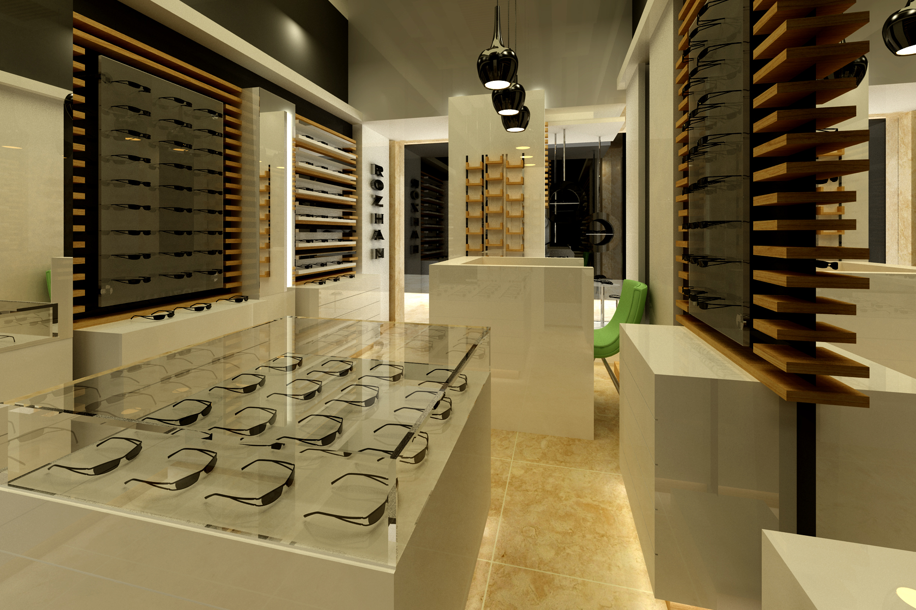 انجام خدمات مشاوره، طراحی و اجرای دکوراسیون داخلی فروشگاه عینک روژان