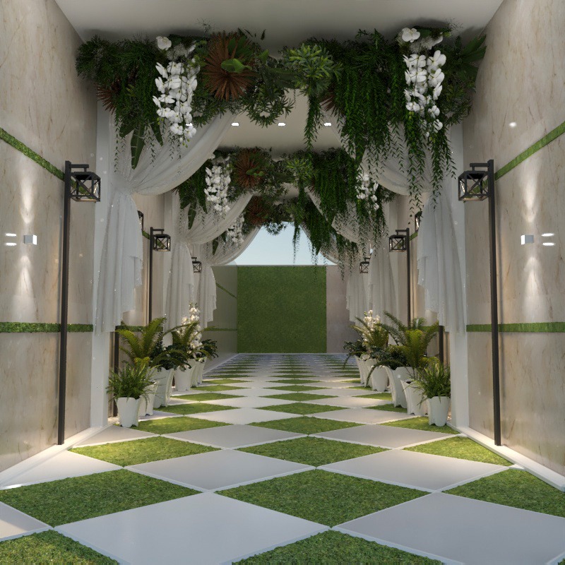طراحی ورودی ماشین عروس به حیاط و فضای وی آی پی جهت عکاسی