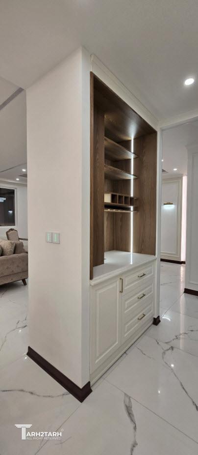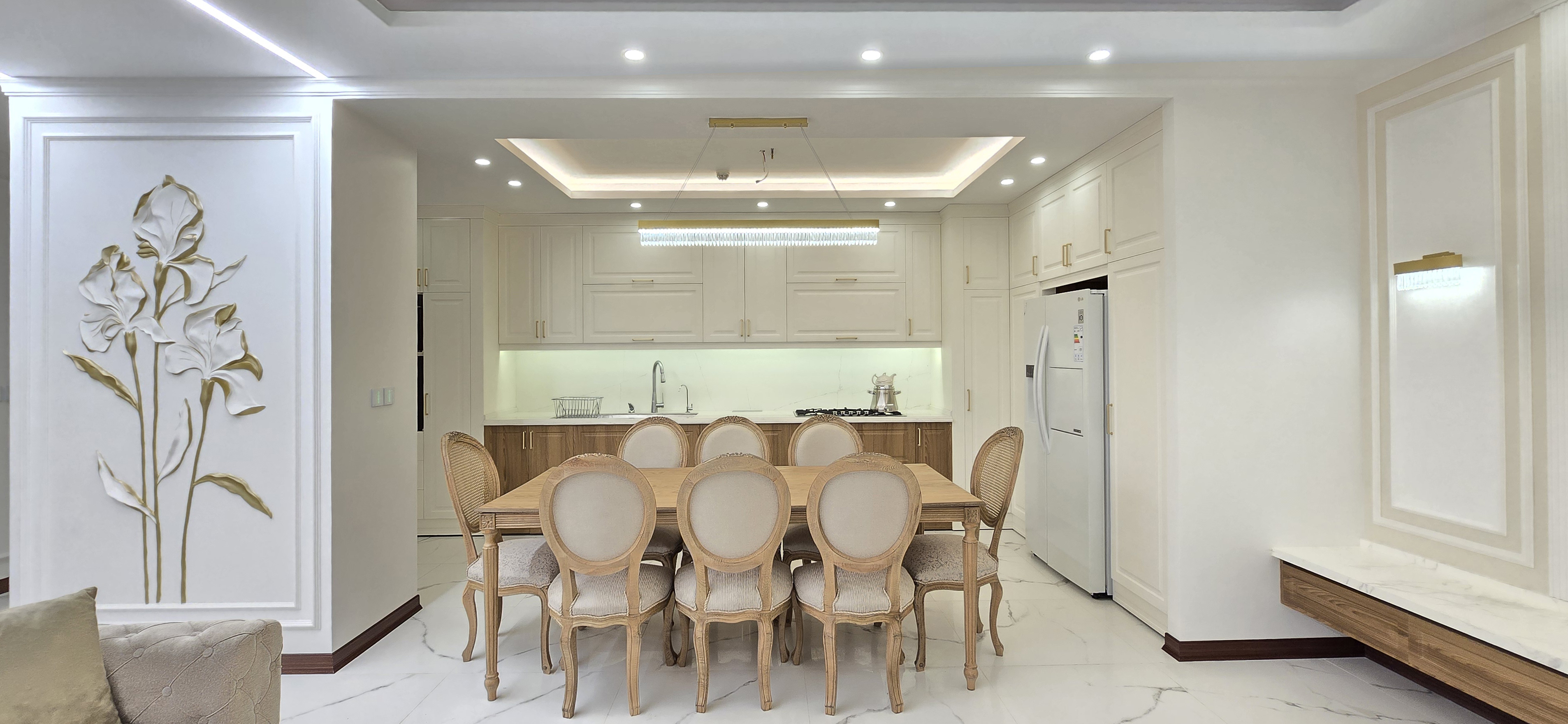 این واحد مسکونی به صورت نوساز به کارفرما تحویل داده شده بود و ایشان خواستار اصلاح پلان، طراحی مصنوعات چوبی، مشاوره خرید مبلمان و چیدمان منزل خود بودند.