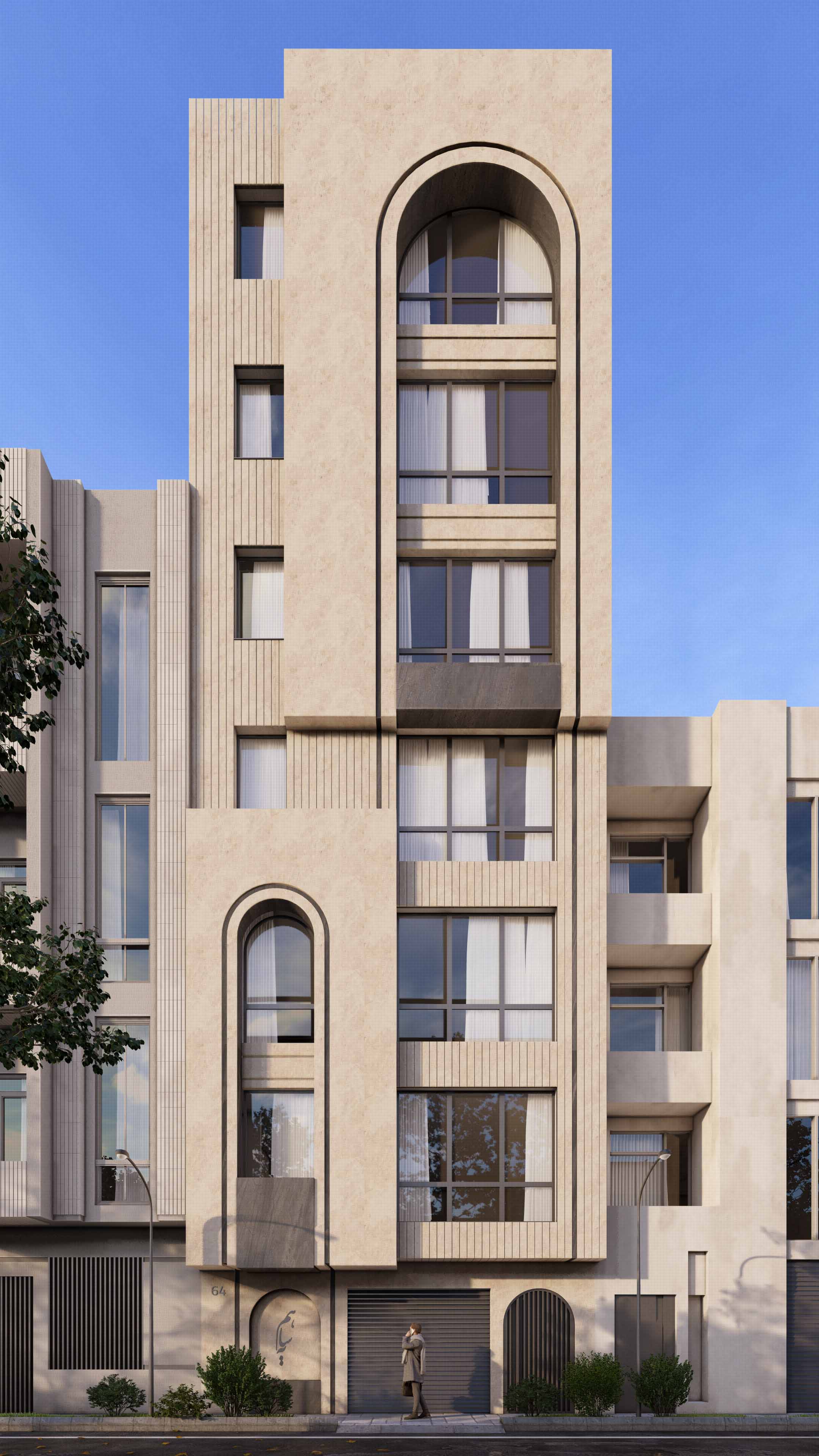 در طراحی پروژه همسایه ۱، واقع در دانشجو ۱۴ شهر مشهد، طراحان تلاش کردهاند با افزودن دو طاق اصلی، شاکلهی نما را شکل دهند. استفاده از قطعات متنوع سنگ، بافتی پویا و خوانا به پروژه بخشیده است. در طراحی داخلی نیز رویکردی مینیمال و مدرن دنبال شده تا هماهنگی میان بیرون و درون بنا حفظ شود.