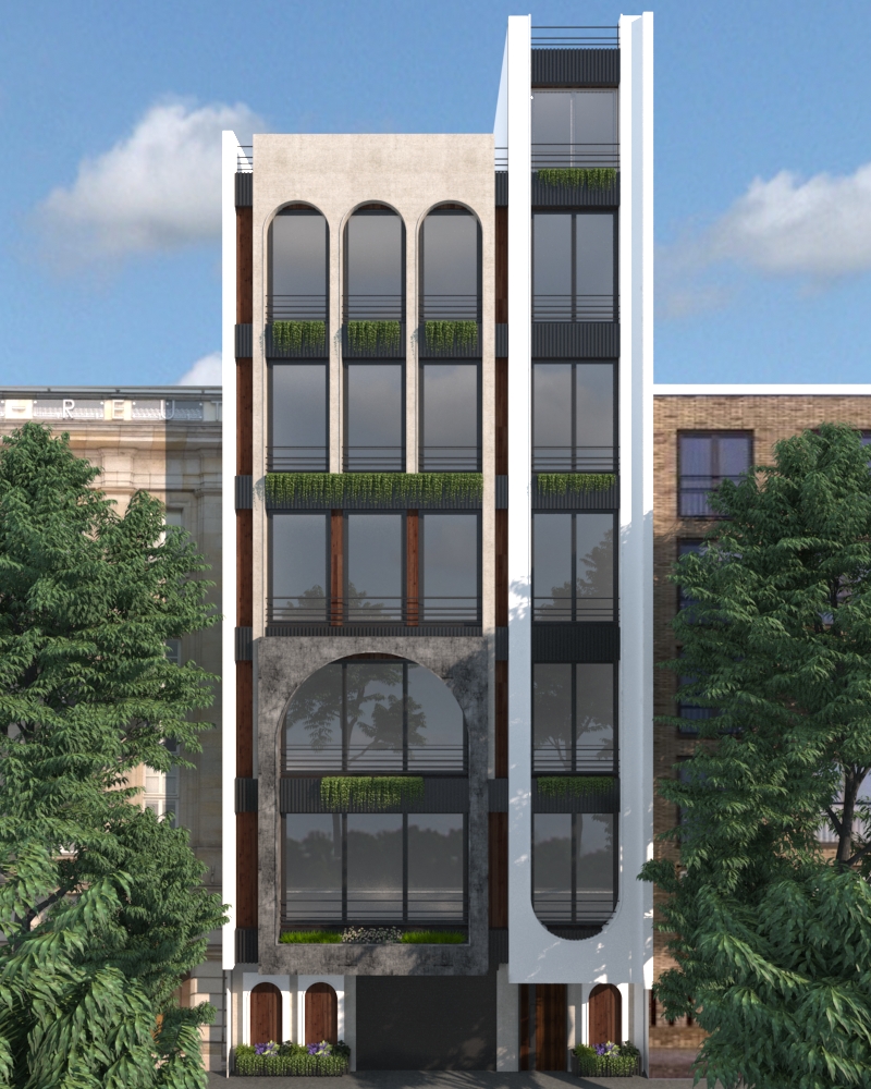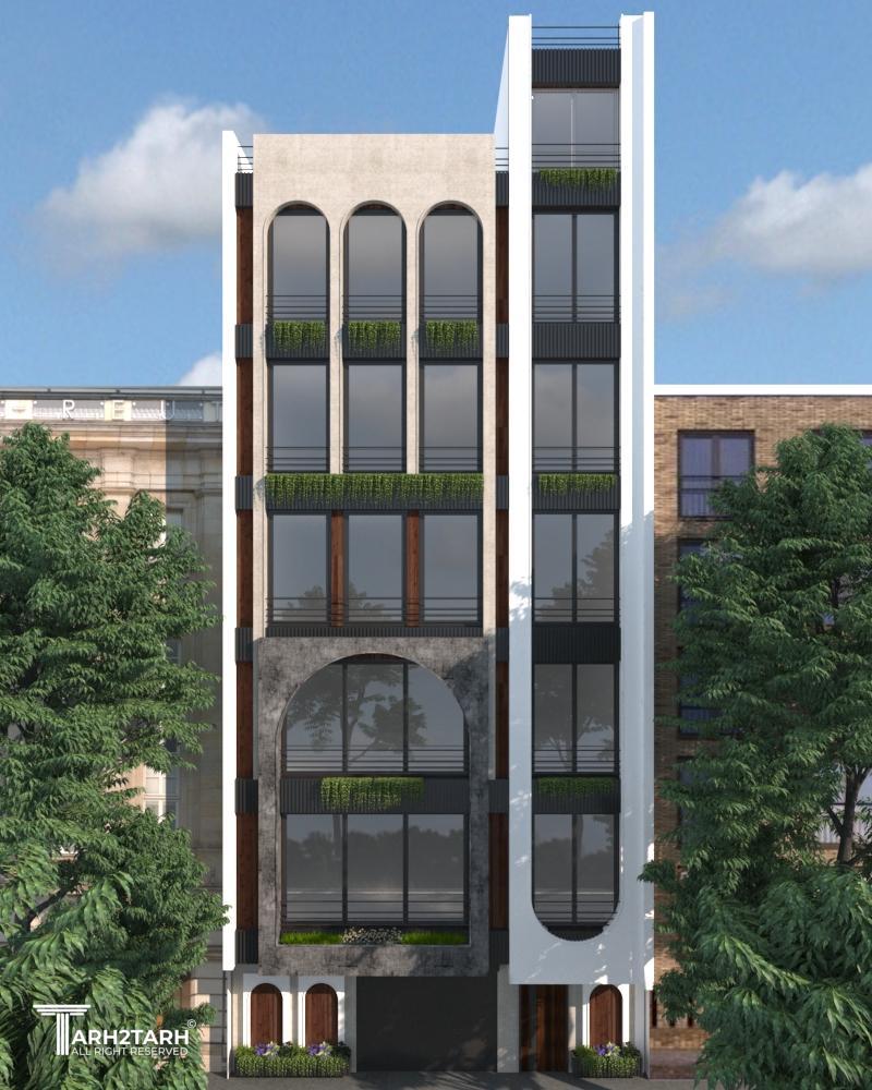 طراحی نما با تلفیق معماری اسلامی و مدرن و استفاده از قوس و به روز کردن آن