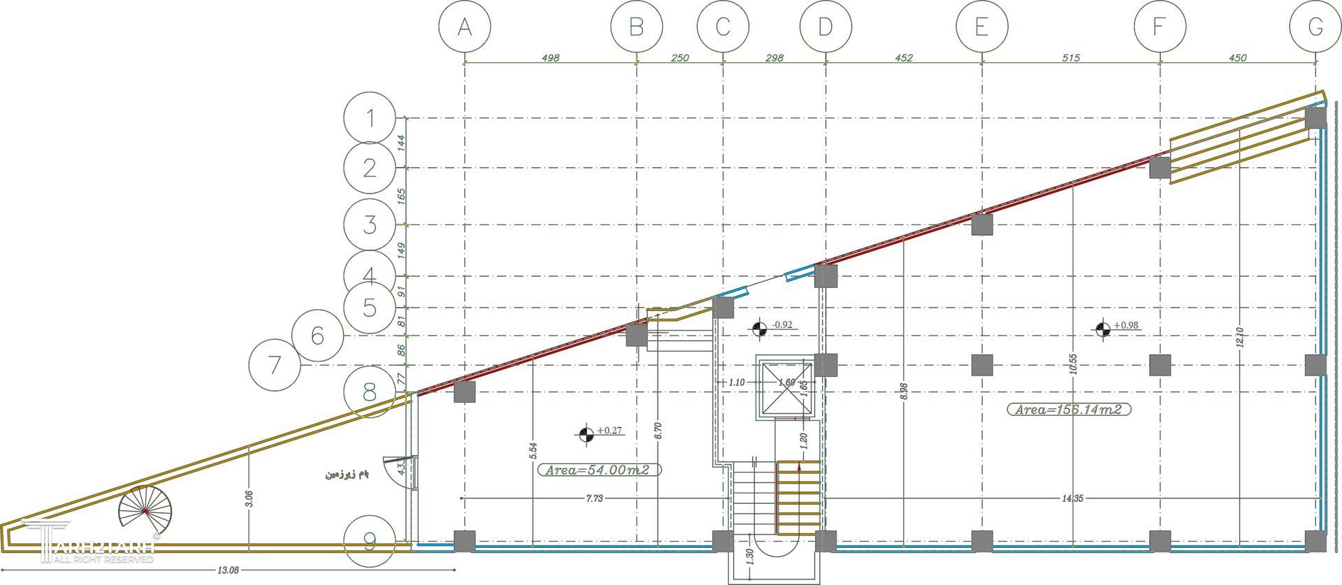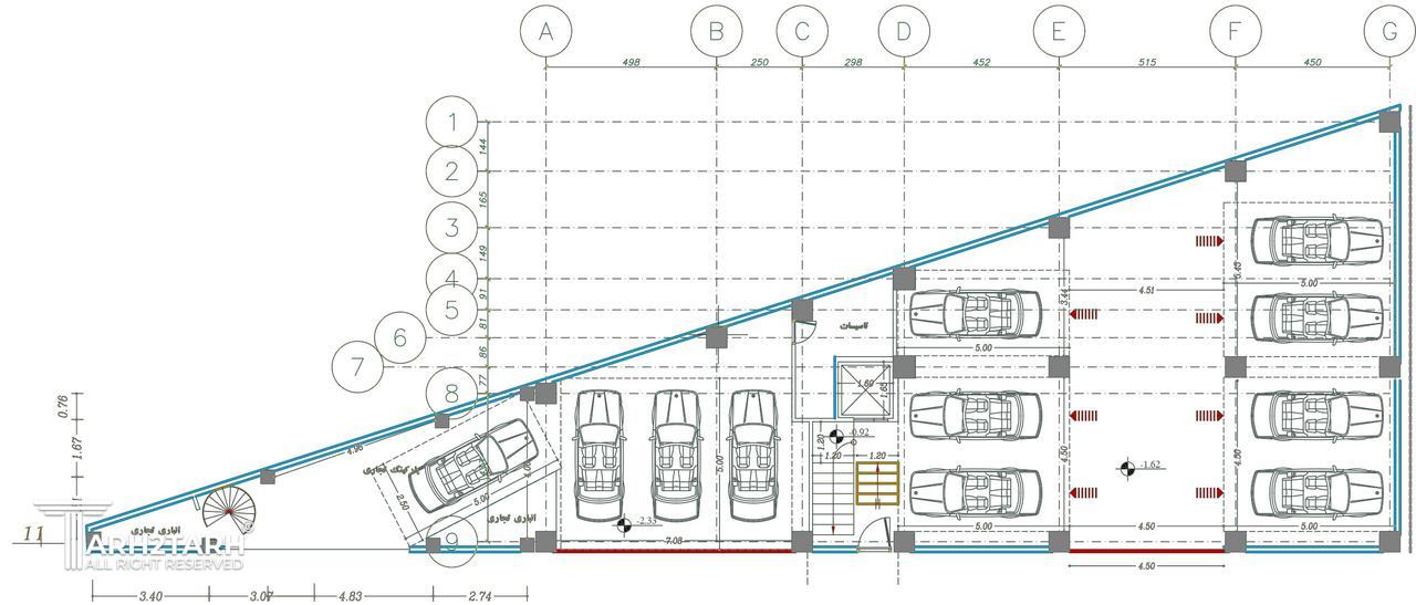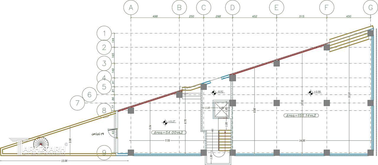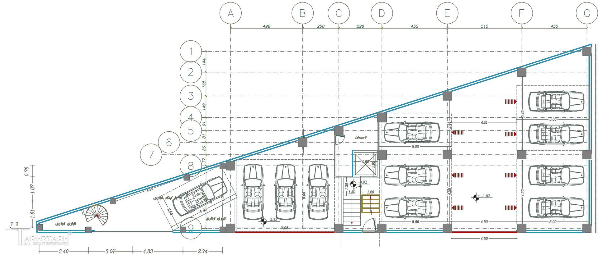 ساختمانی در انتهای کوچه که هندسه ای نا گونیا داشته و در طراحی سعی برآن شده متصرفین حداکثر استفده بهینه را از فضا ها داشته باشند.