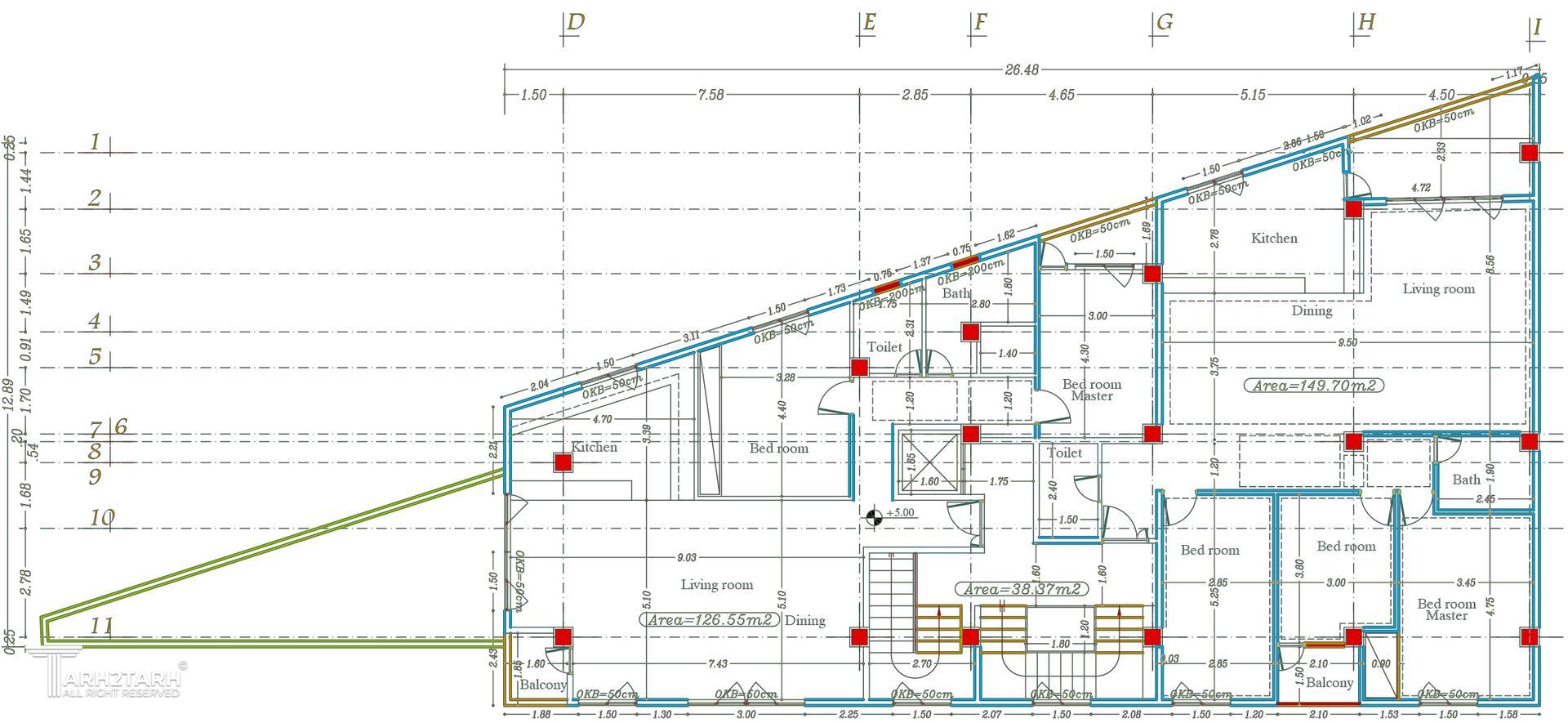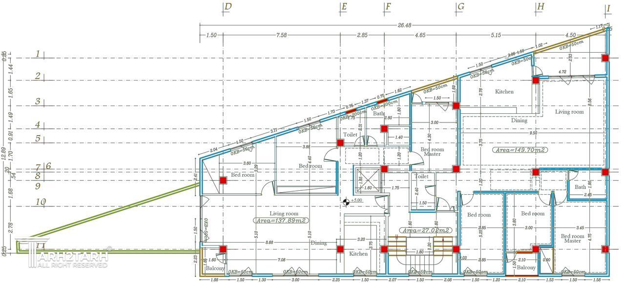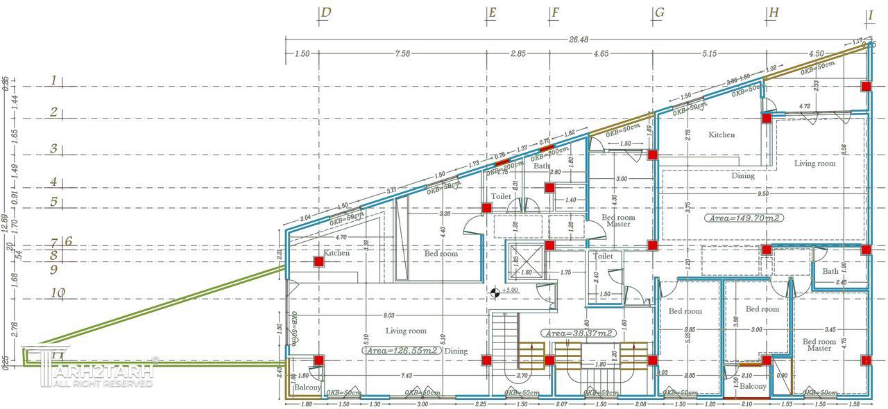 ساختمانی در انتهای کوچه که هندسه ای نا گونیا داشته و در طراحی سعی برآن شده متصرفین حداکثر استفده بهینه را از فضا ها داشته باشند.