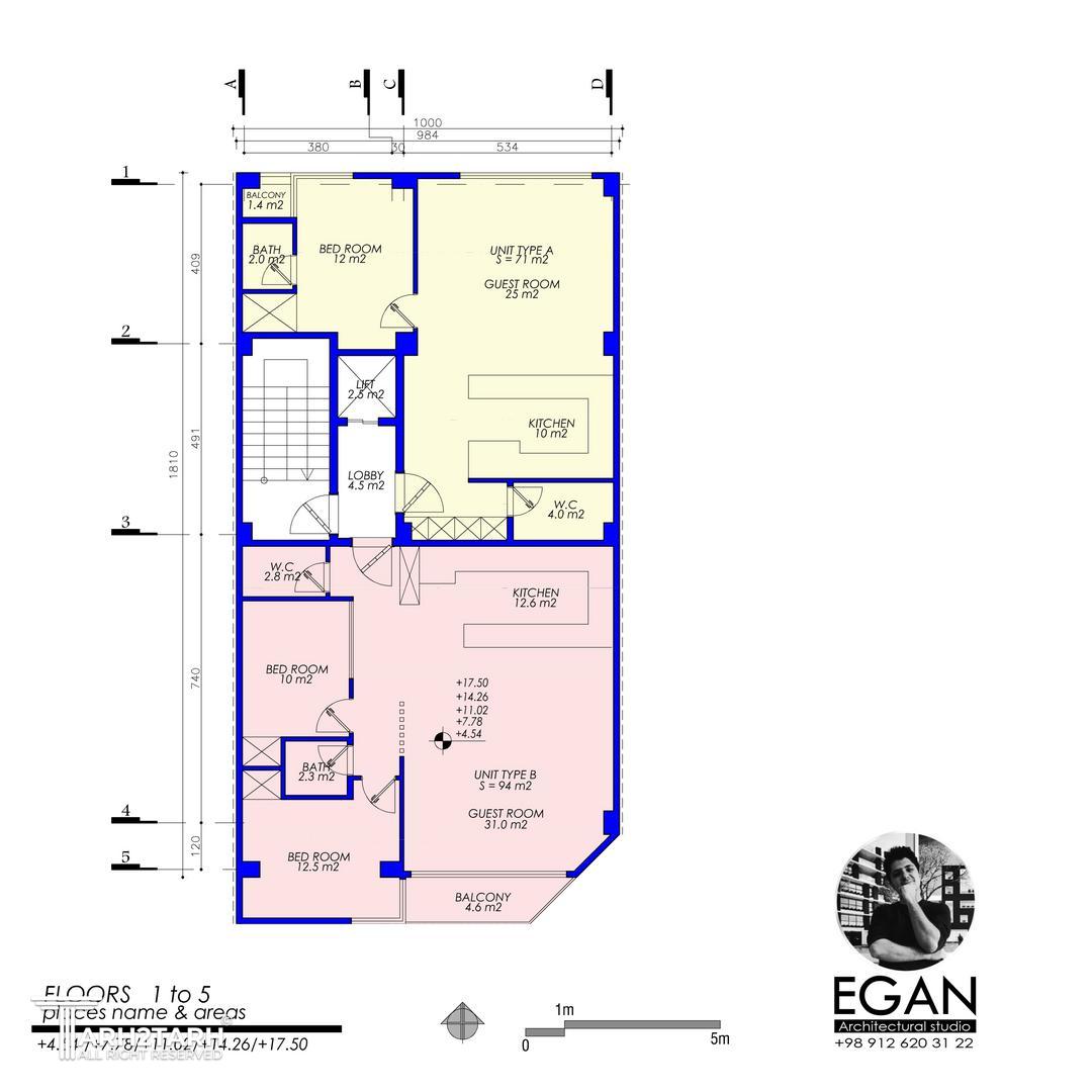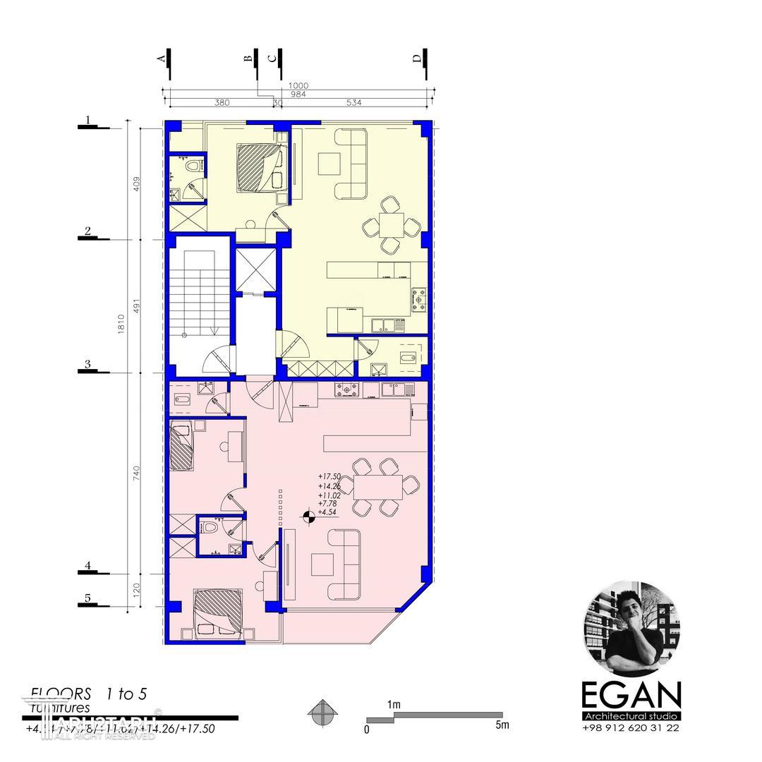 طراحی این بنا با توجه به فرهنگ منطقه و معماری خلاق صورت گرفته است و در 6 طبقه شامل یک پارکینگ و 5 طبقه مسکونی طراحی و اجرا گردید .