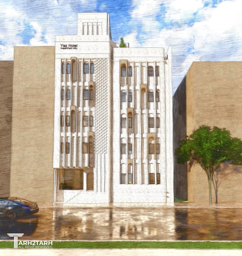 طراحی این هتل با الهام از معماری اصیل یزد، بافت کویر و مفاهیم جریان باد انجام شد تا فضایی خلق شود که هرچند در مشهد قرار دارد، اما یادآور حس و حال آرام و شاعرانهی یزد باشد. ترکیب عناصر سنتی با رویکردی مدرن، استفاده از متریالهای طبیعی، و بازی نور و سایه در فضا باعث شکلگیری محیطی گرم، دلنشین و درعینحال معاصر شد. این طرح نهتنها هویت فرهنگی خاصی به پروژه بخشید، بلکه با استقبال و رضایت چشمگیر کارفرما همراه بود؛ رضایتی که تأییدکنندهی اصالت، زیبایی و دقت در جزئیات این اثر معماری ماندگار است.