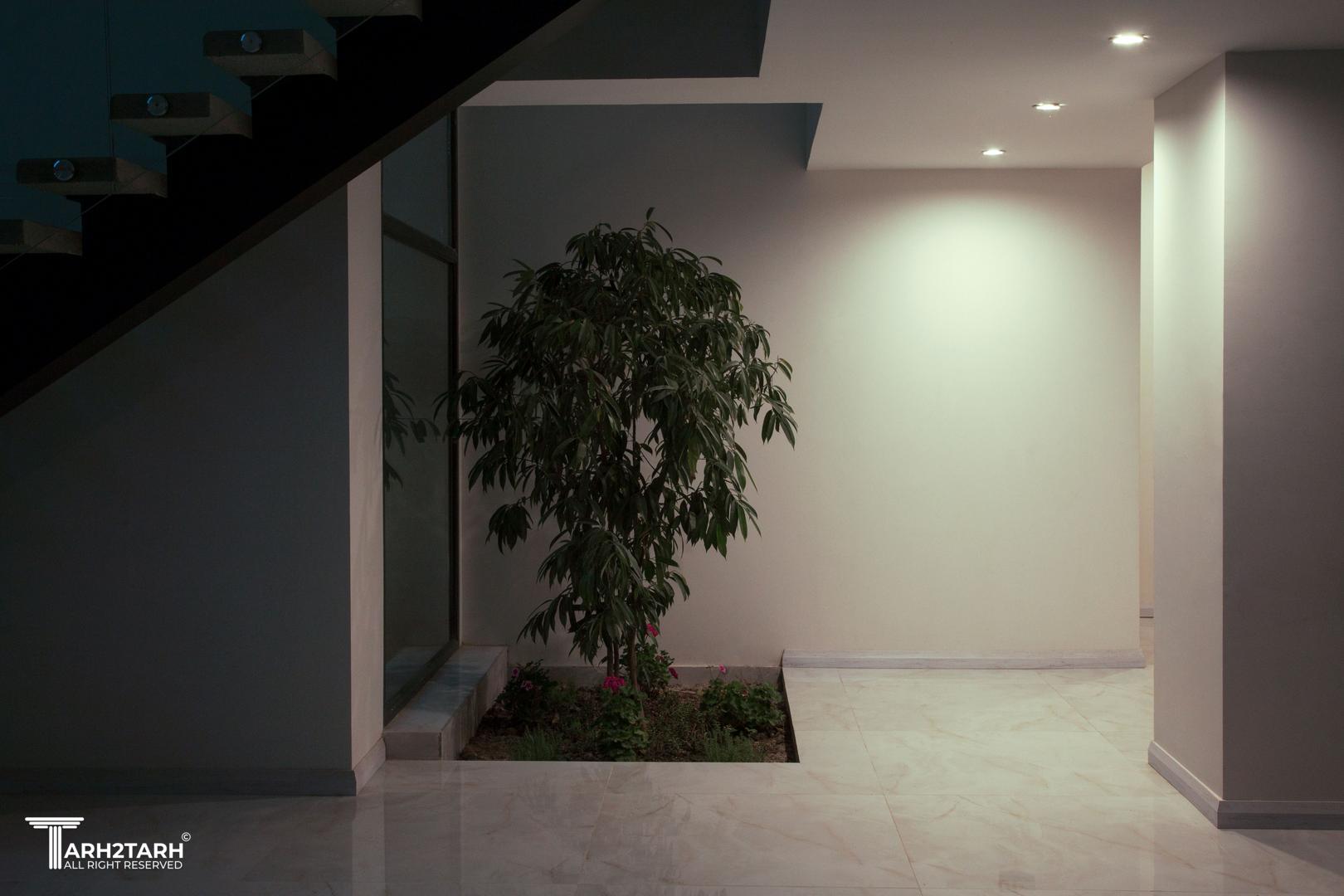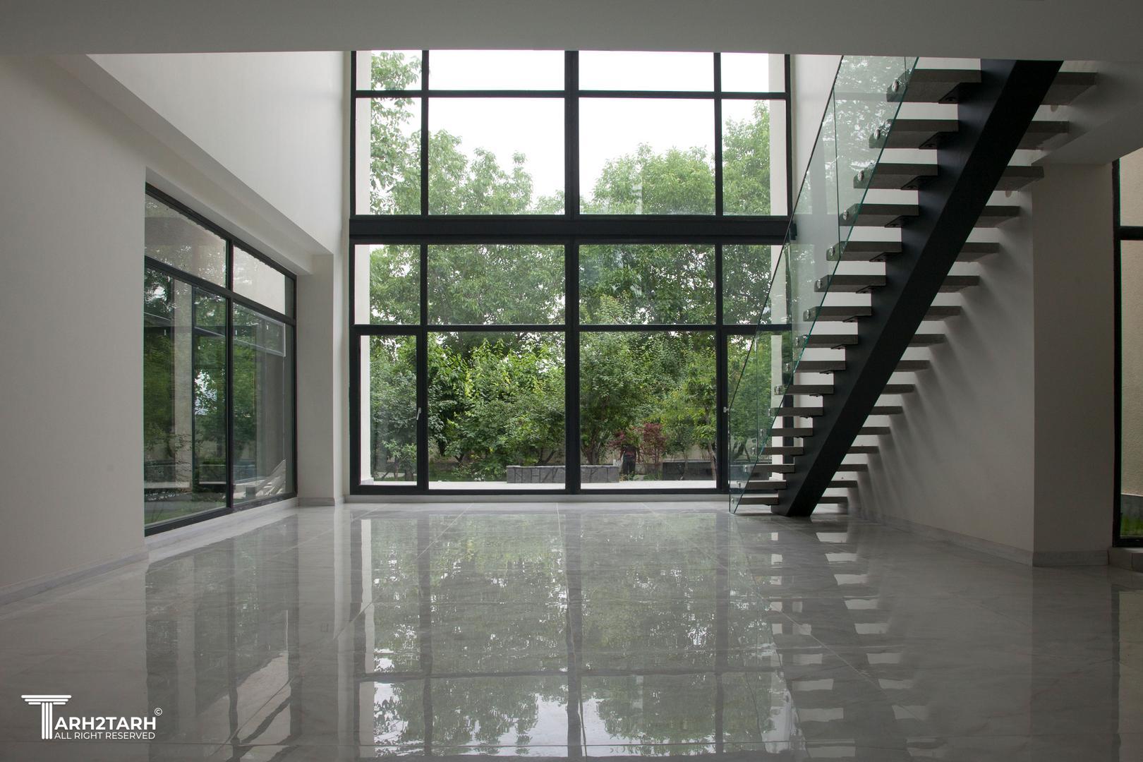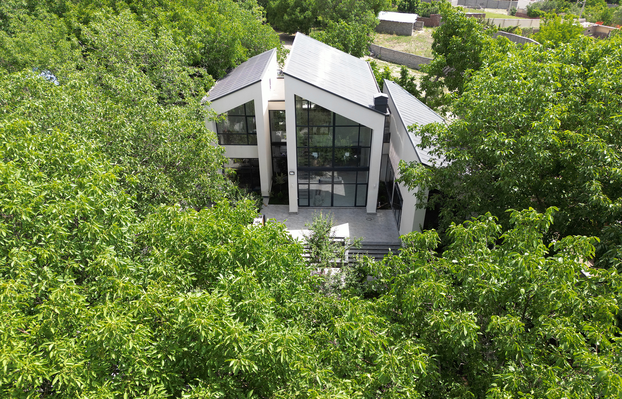 ویلای آشیان در منطقه ی سبز و باغی جیلارد گیلاومد واقع شده است و از ابتدای کار تاکید کافرما و طراح بر حفظ درختان و اتمسفر باغ میوه بوده است. ساختمان در تنها محل خالی از درخت باغ قرار گرفته است و تنها 3 اصله درخت با موفقیت جابجا شده اند. رسیدن به فضاهای مورد نیاز خانواده شامل پدر مادر، پسر و همسر و فرزند، دختر و همسر و فرزند، در محدوده ی ساخت منجر به توده ای شد که برای شکستن آن و به درون آوردن باغ به سه توده مجزا بریده شده است. در نتیجه باغ بین دو شکاف ساختمان نفوذ کرده و در فضاهی داخلی ساختمان احساس در هم تنیدگی با محیط سبز محسوس است. ارتفاع بلند ووید در سالن که در توده میانی واقع شده است، دید بی انتها به باغ و آسمان را فراهم کرده و احساس لاغری سالن را تعدیل می کند..سطوح وسیع شفاف در اضلاع شمال و جنوب ارتباط بصری با محیط باغ و استفاده از نور طبیعی را به حداکثر رسانده است. در " آشیان " حریم فضاهای شب و روز و تفریح حفظ شده است : ساختمان شرقی : اتاق های خواب ساختمان میانی : آشپزخانه و سالن ساختمان غربی : سالن بازی