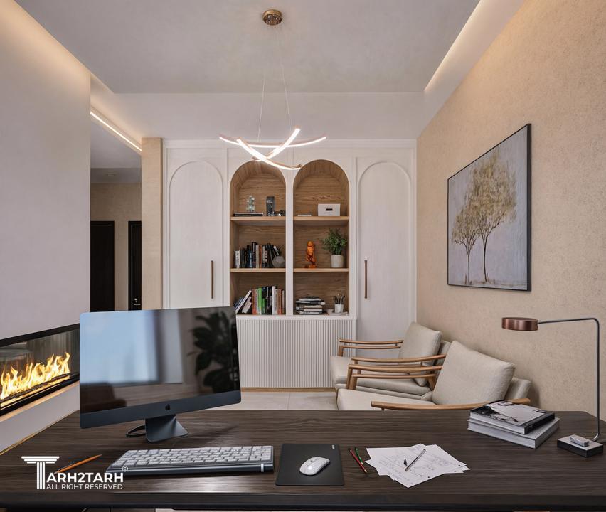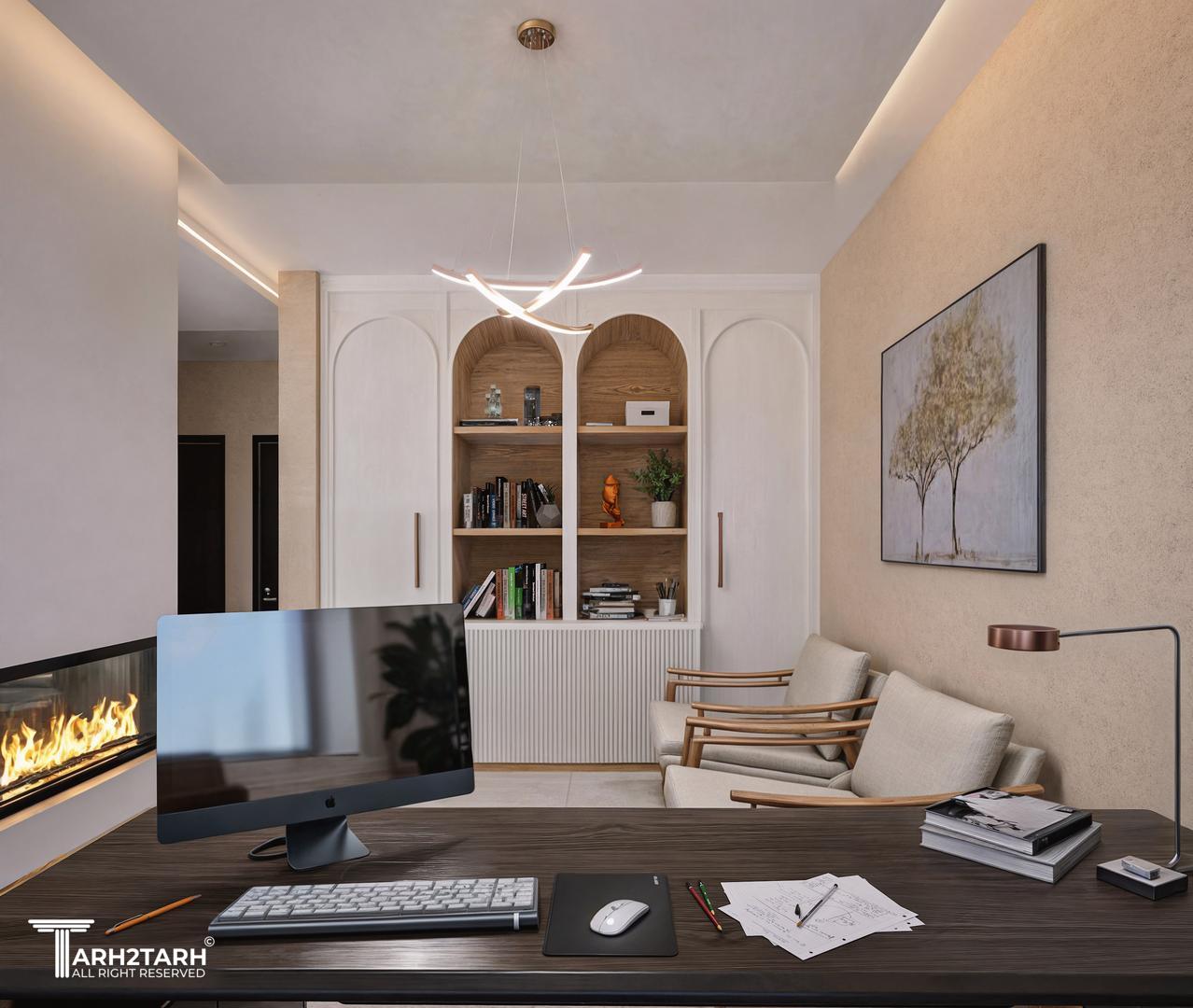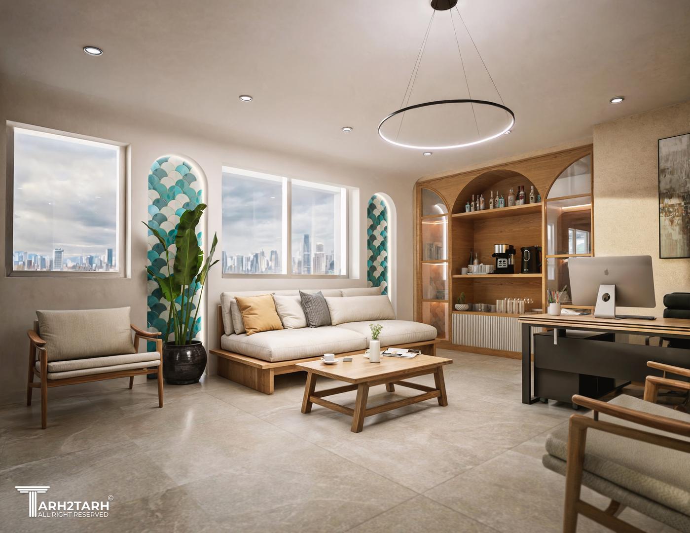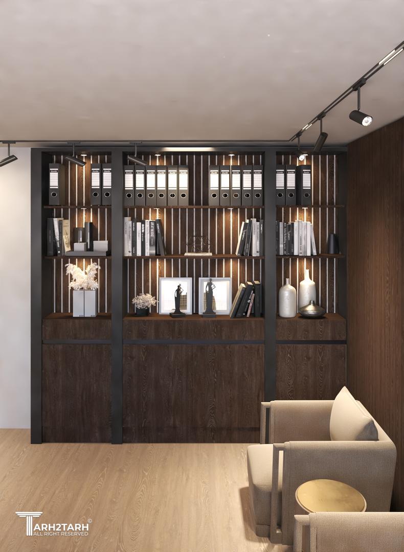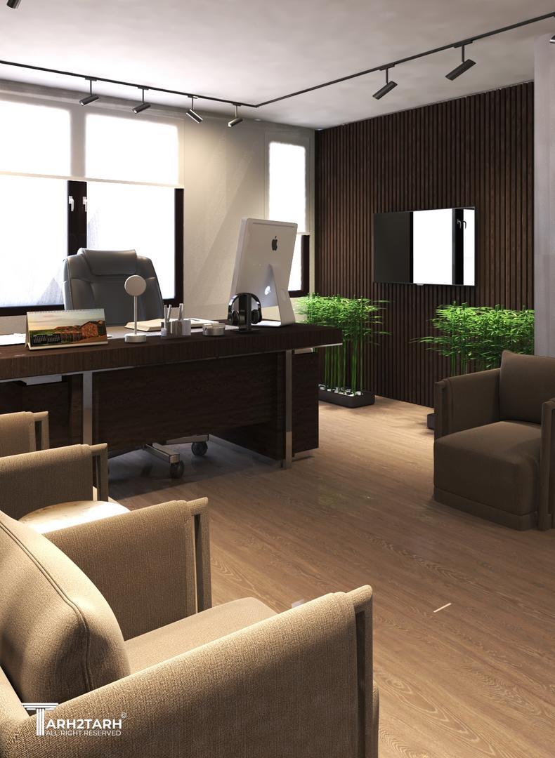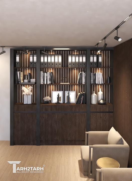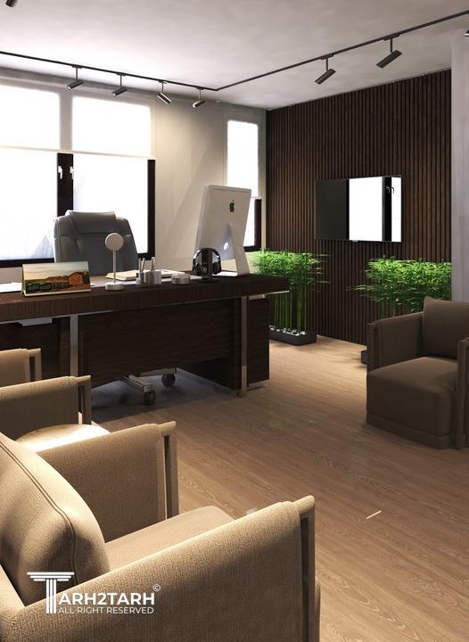 دفتر اداری شامل طراحی با دو الترناتیو مختلف بود.با نظر نهایی کارفرما طرح تصویب و در طی دو ماه اجرا شد