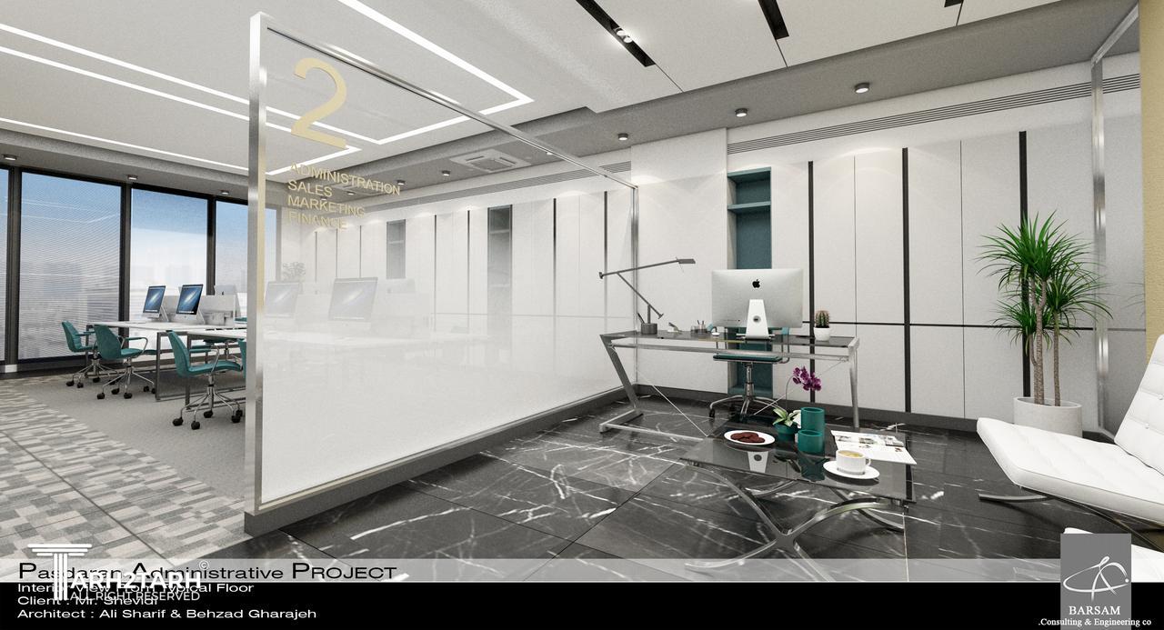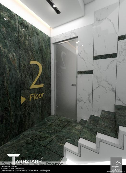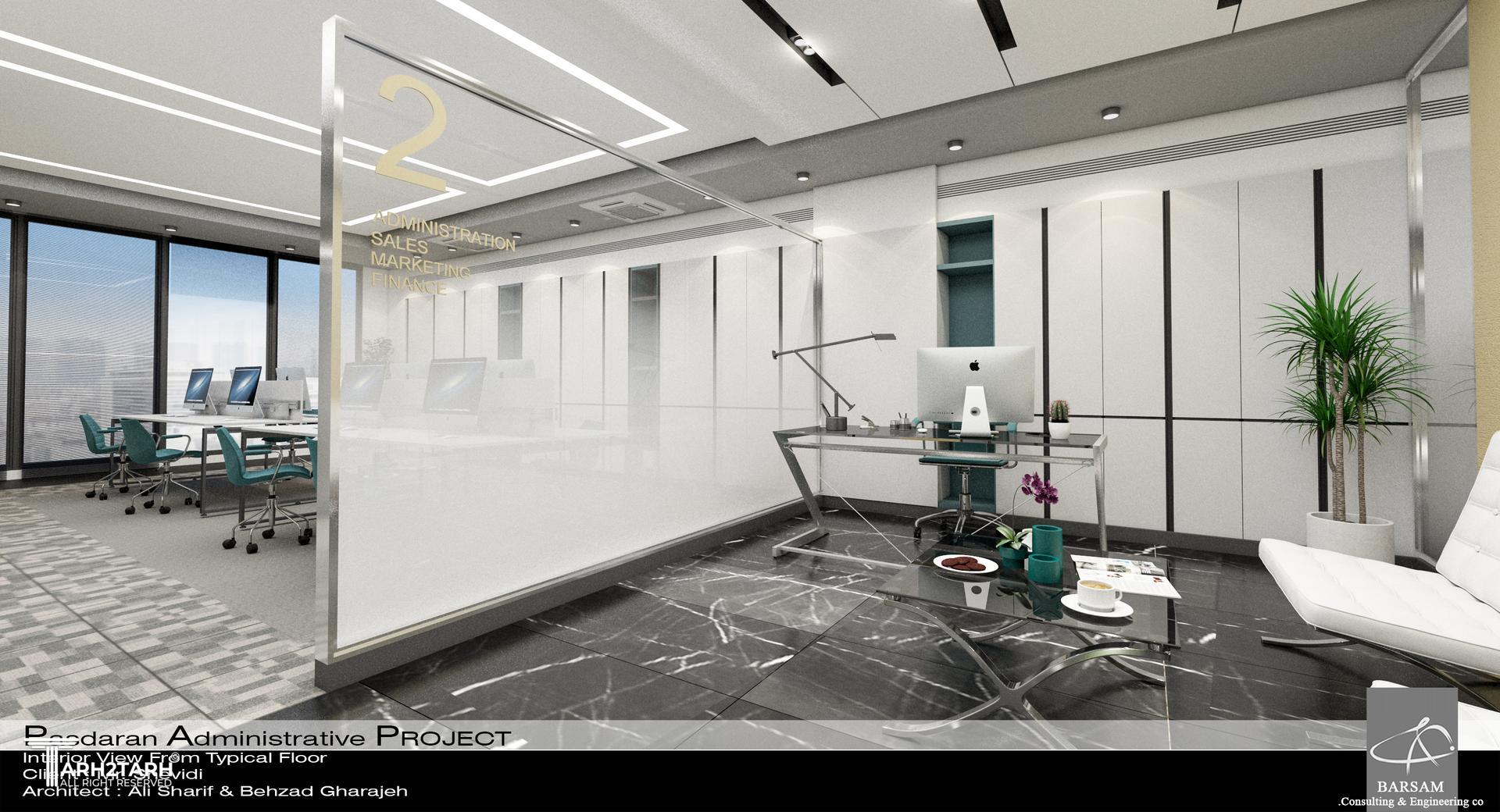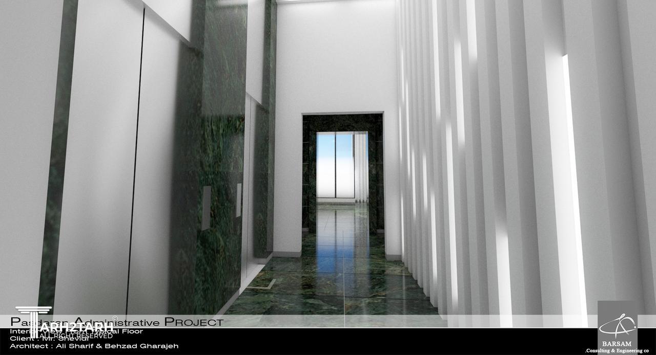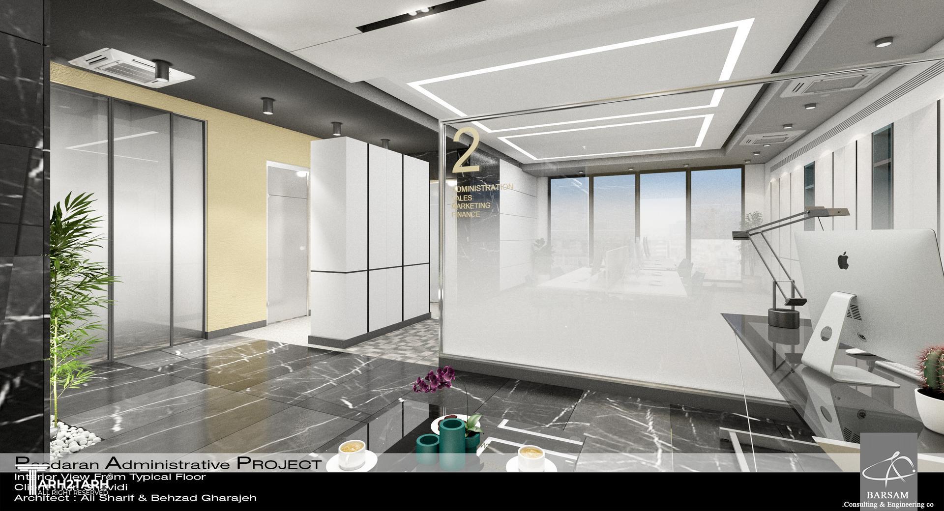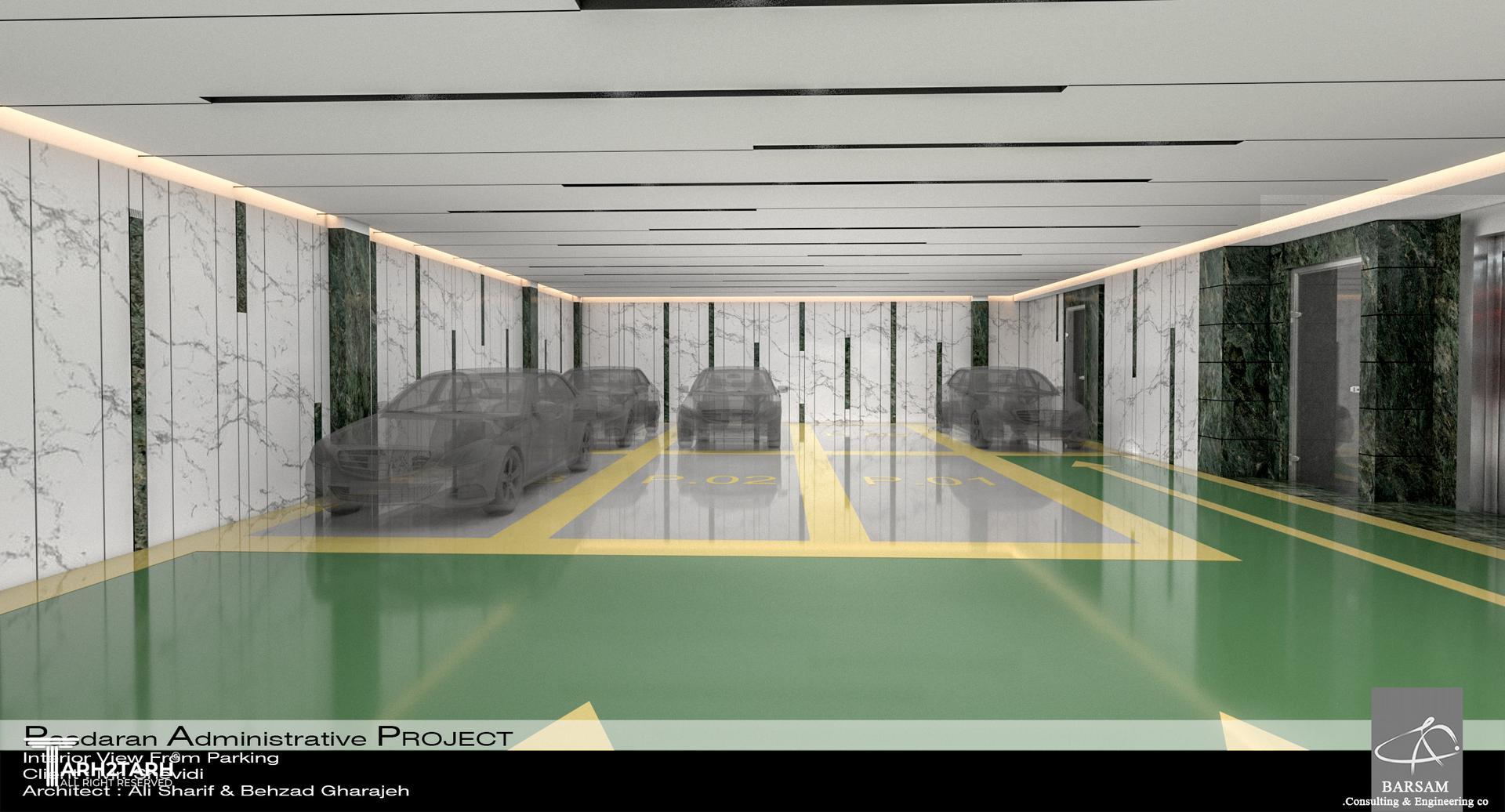 در طراحی نما، فرم مکعبی همچون ساختاری ماژولار عمل میکند. هر مکعب نمادی از واحد اداری مستقل است، در حالی که ترکیب کلی آنها وحدت کل بنا را حفظ میکند. با کنترل نسبت پر و خالی در نما، تعادل بین نور، دید، و مصالح سنگین و سبک برقرار شده است. در شب، با نورپردازی خطی در درزهای مکعبها، حجم ساختمان به صورت درخشان و شاخص در بافت شهری خودنمایی میکند.