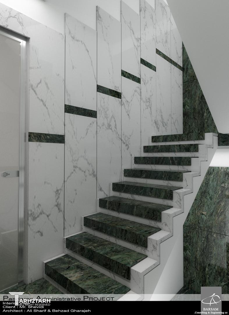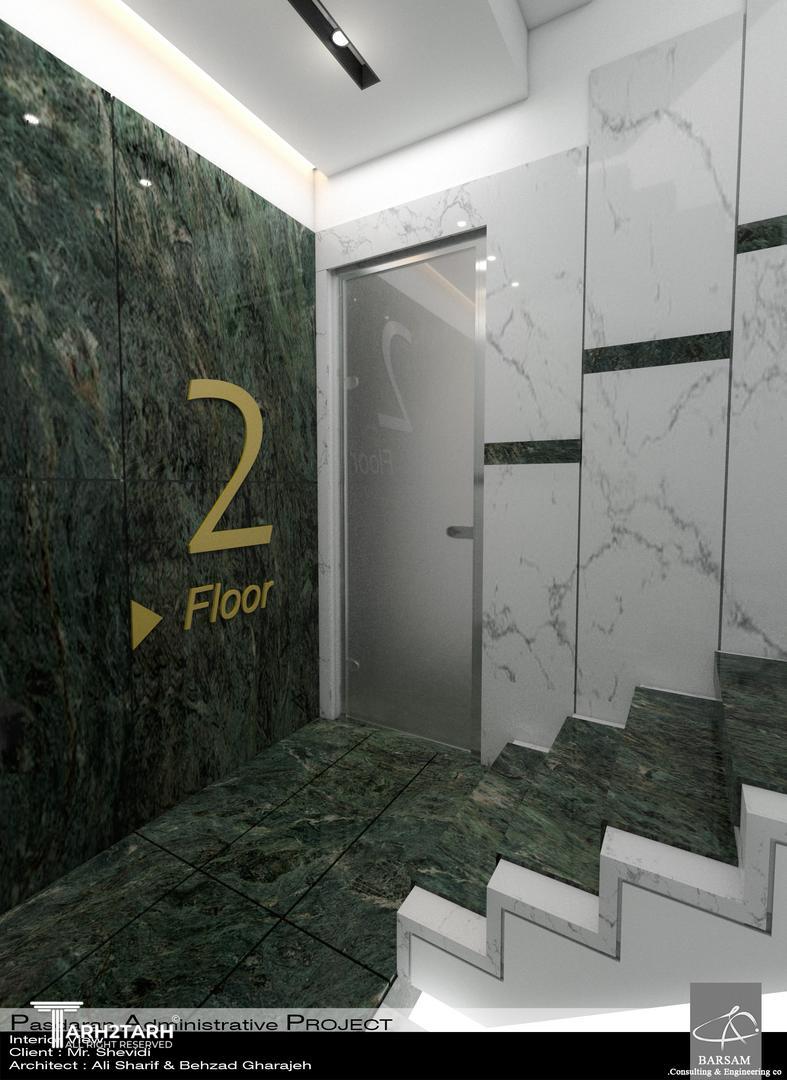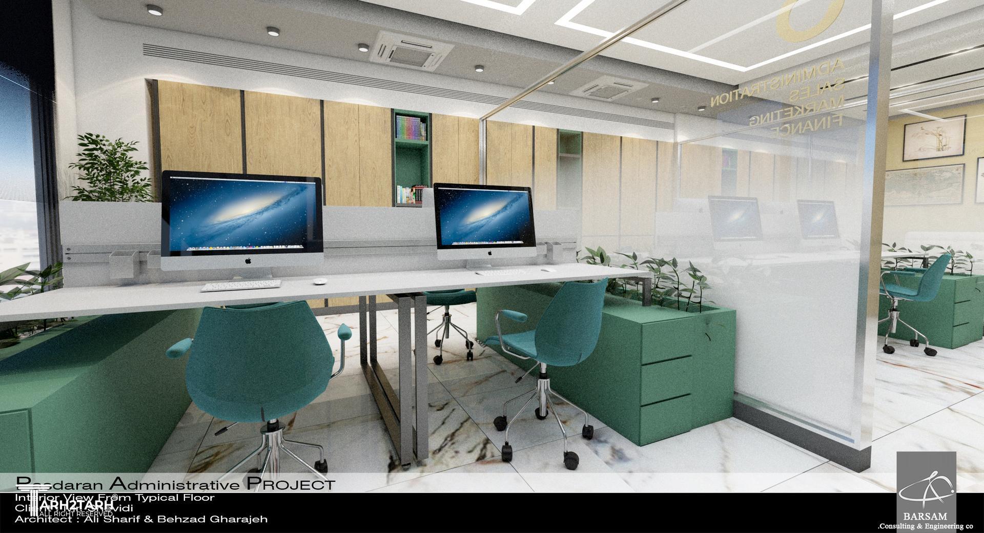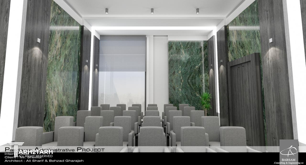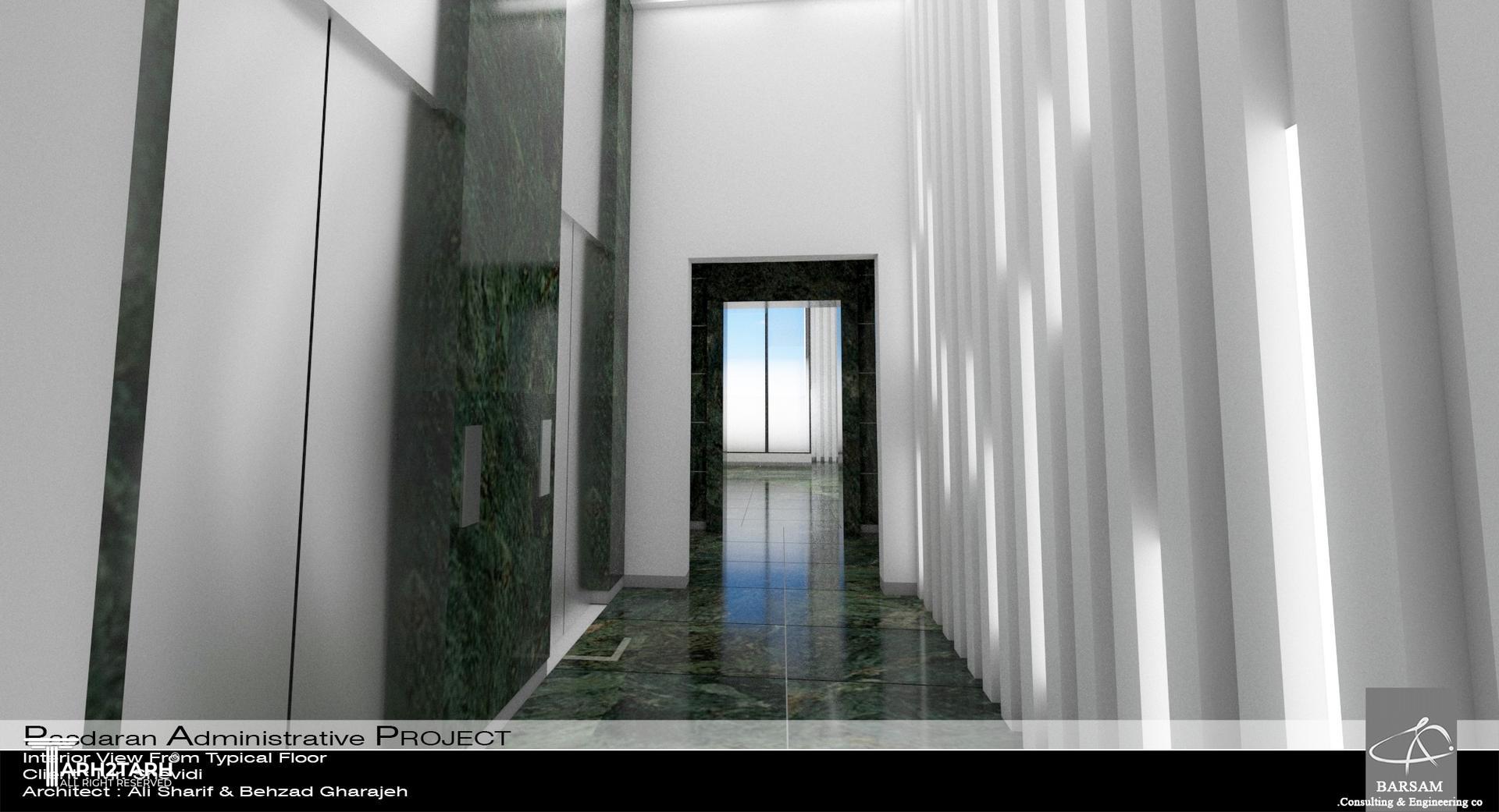 در طراحی نما، فرم مکعبی همچون ساختاری ماژولار عمل میکند. هر مکعب نمادی از واحد اداری مستقل است، در حالی که ترکیب کلی آنها وحدت کل بنا را حفظ میکند. با کنترل نسبت پر و خالی در نما، تعادل بین نور، دید، و مصالح سنگین و سبک برقرار شده است. در شب، با نورپردازی خطی در درزهای مکعبها، حجم ساختمان به صورت درخشان و شاخص در بافت شهری خودنمایی میکند.