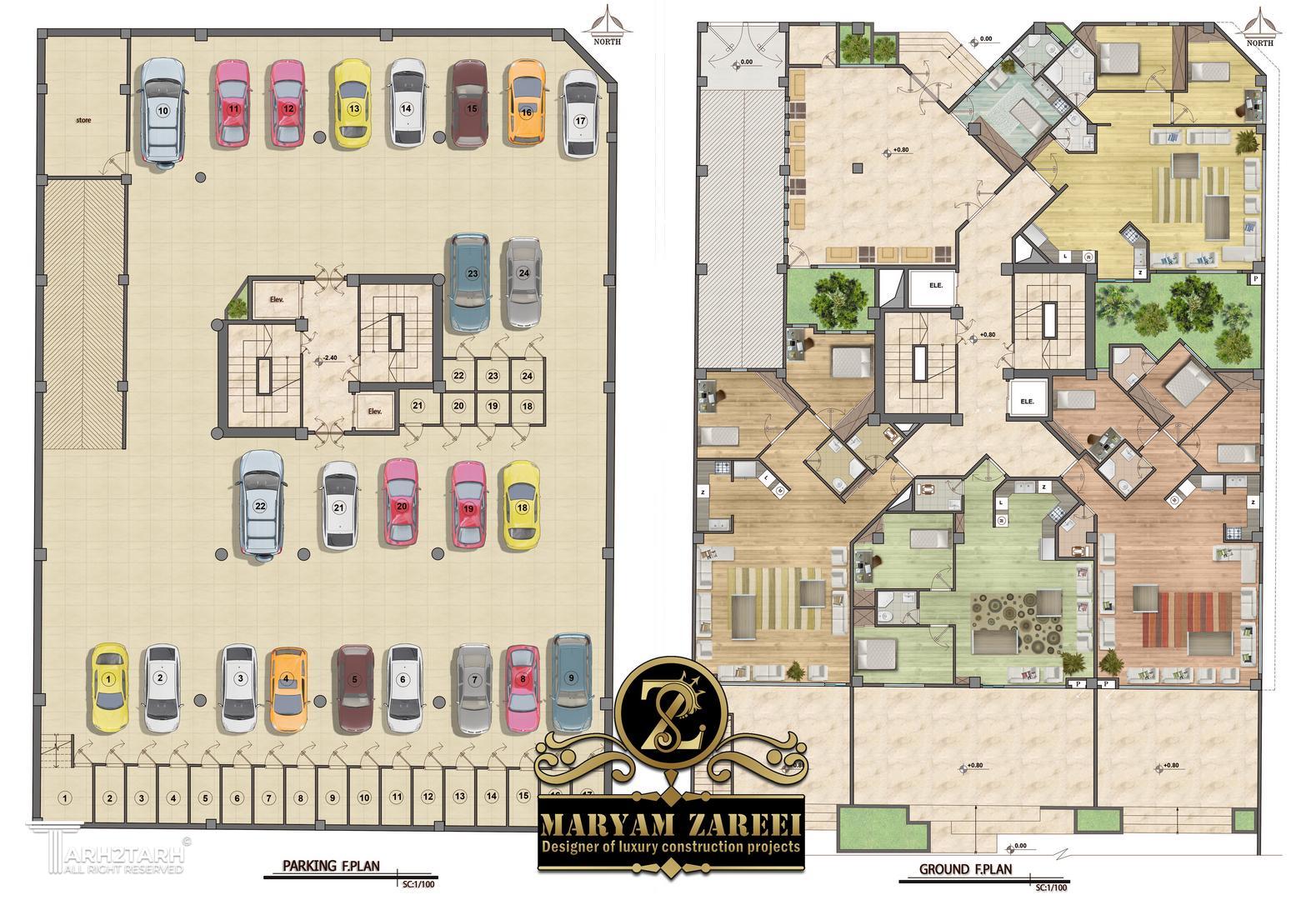 <p>نکته ی قابل نوجه در طراحی پلان ها این هست که با زاویه 45 درجه حل شده و فضا از حالت یکنواختی خارج شده است</p>