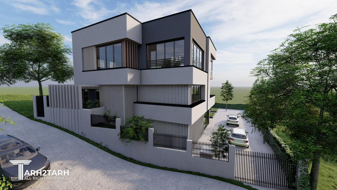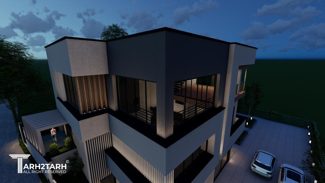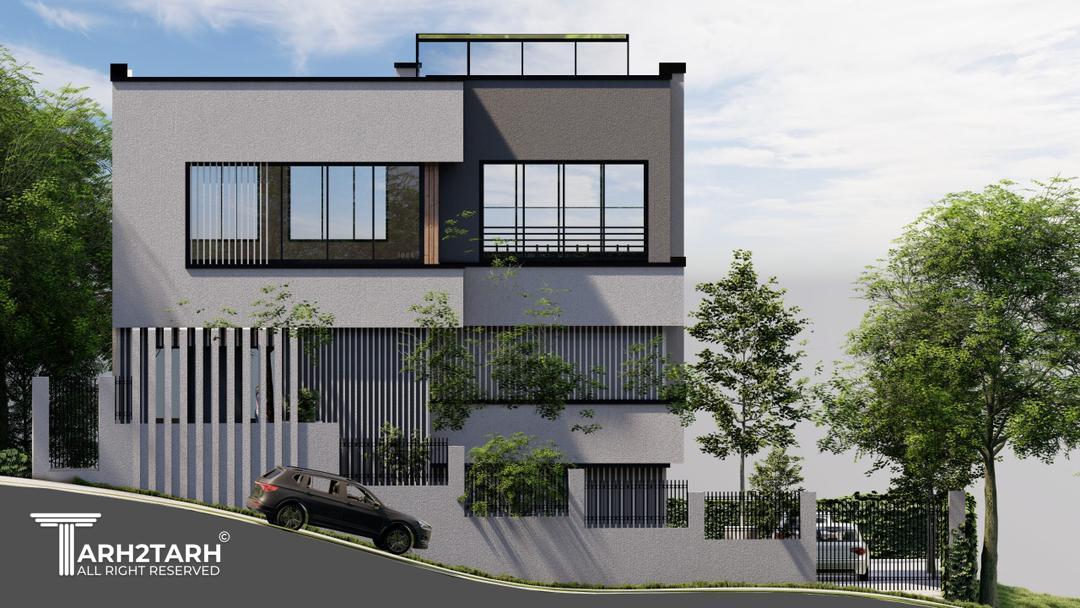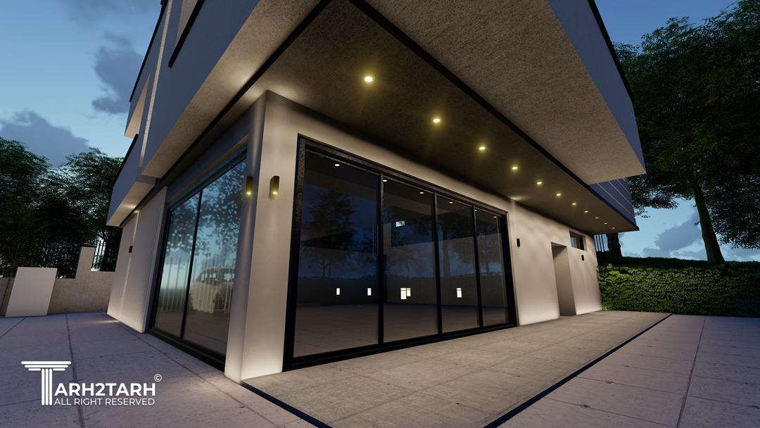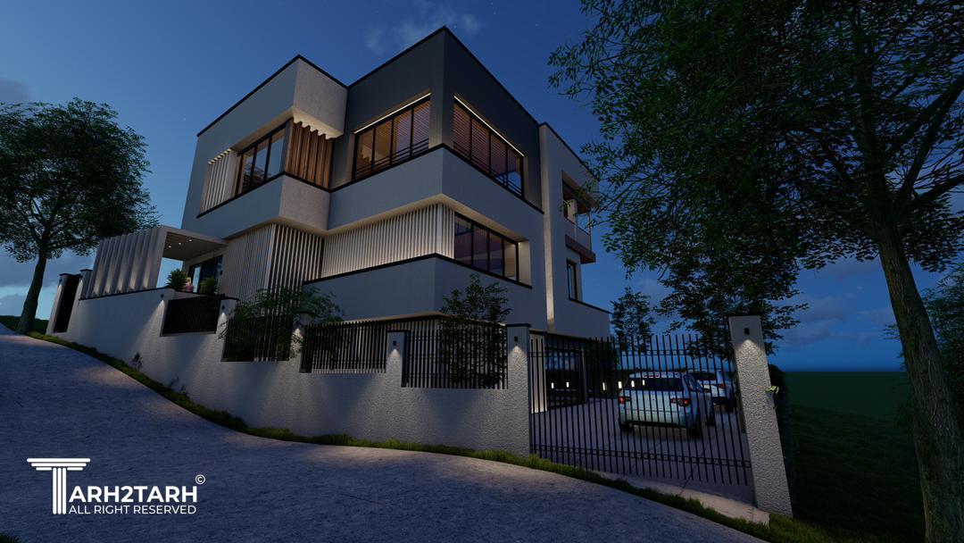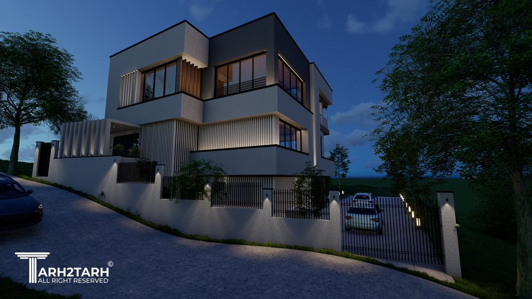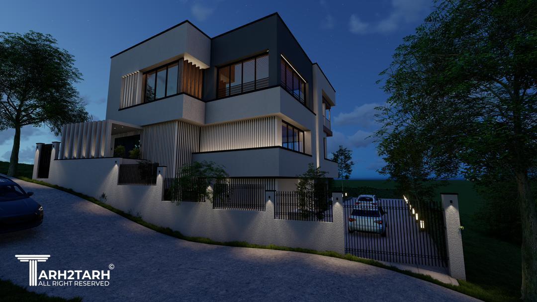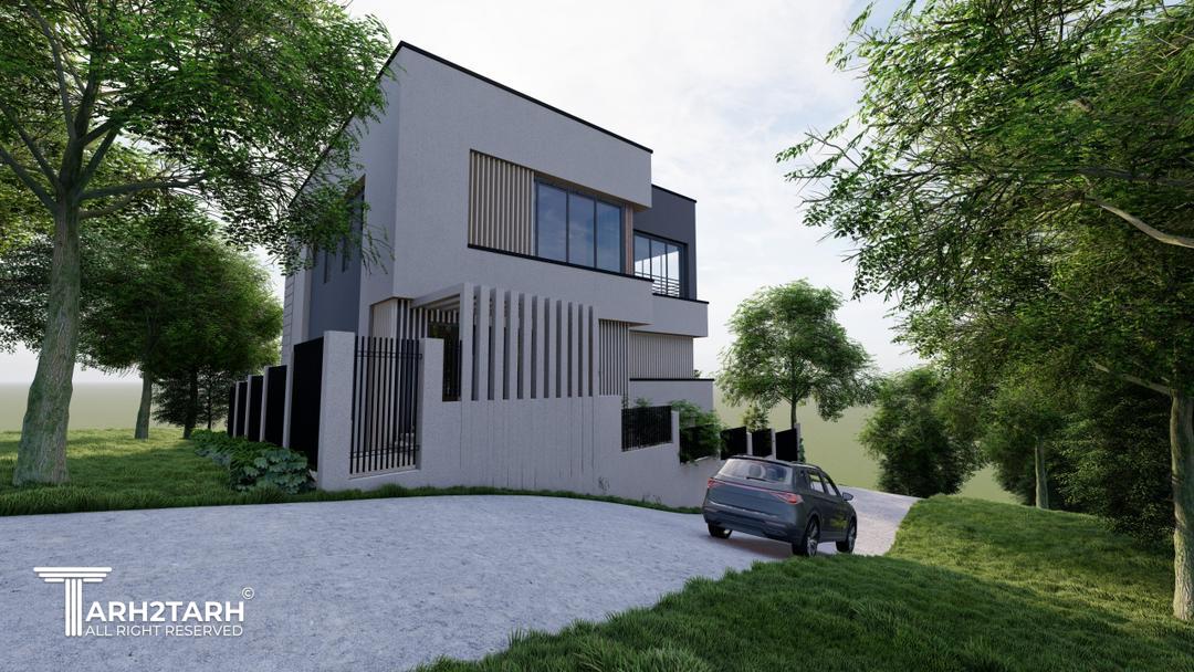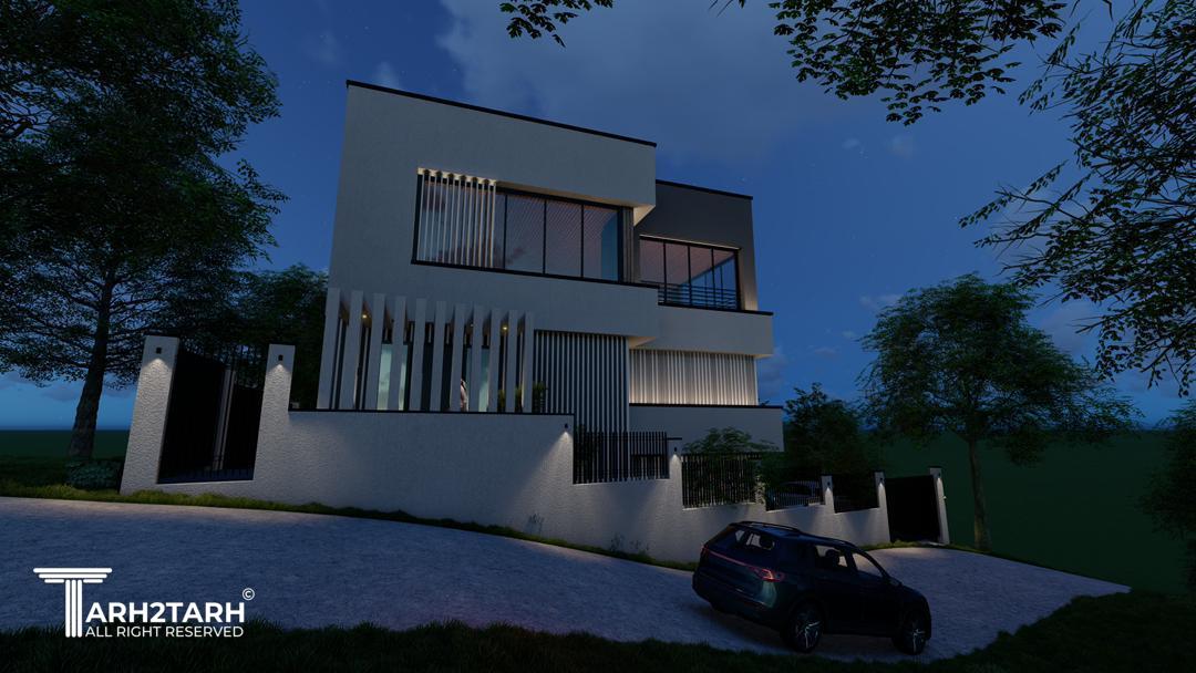 ویلا کیاسر با طراحی مدرن، خطوط ساده، متریال شیشه، سنگ و سیمان، هماهنگ با طبیعت ساخته شد.