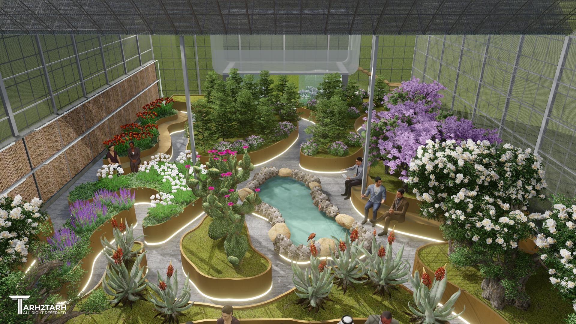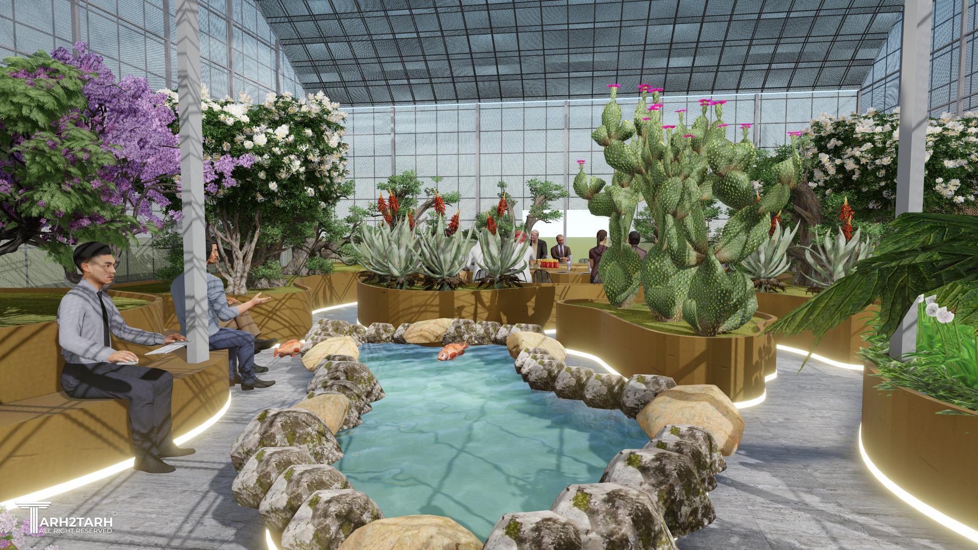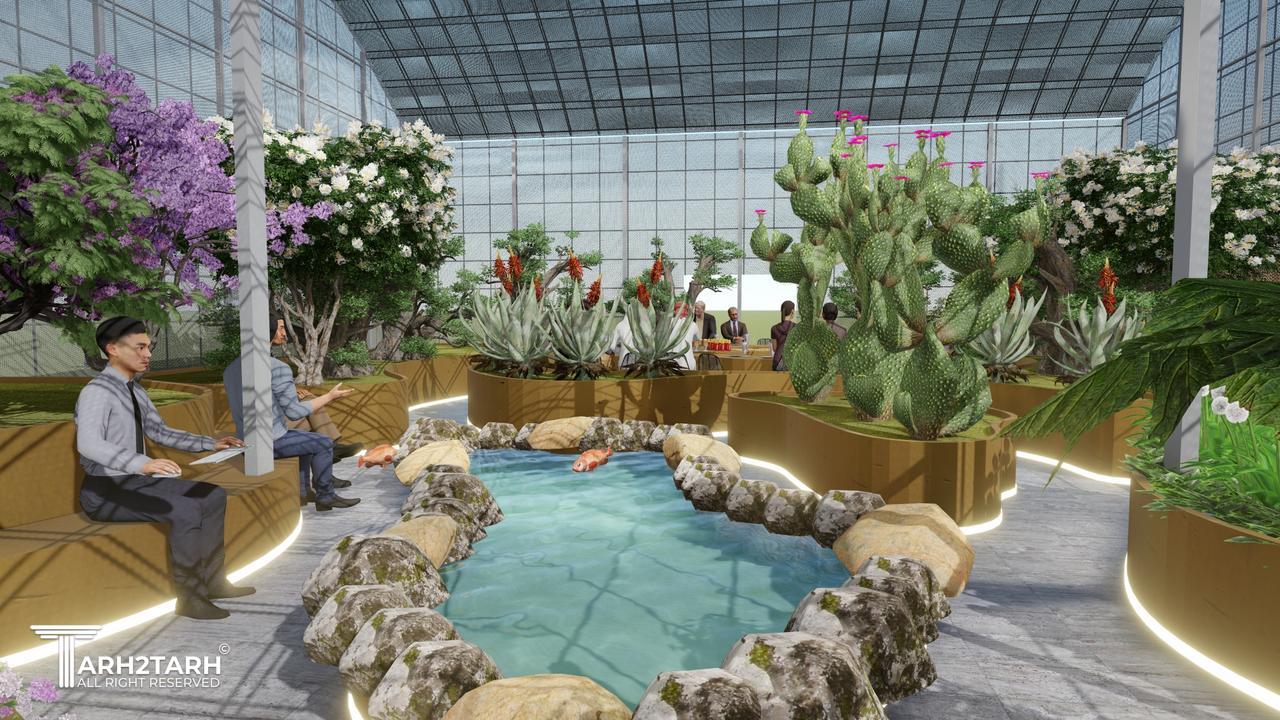 این طراحی به صورت تیمی انجام شد و سرکار خانم ایل بگی مجری فضای سبز به عنوان مشاور ما در طراحی در کنار ما بودند. کارفرمای پروژه در کنار کارخانه خود و به منظور استقبال از کارفرماهای عرب خود قصد داشتند فضای زیبایی برای پذیرایی و گفتگو تدارک ببینند