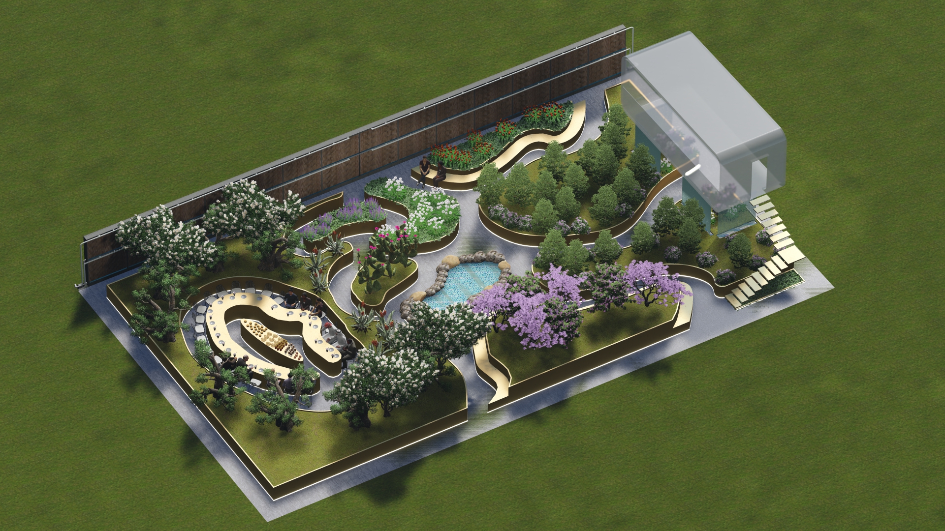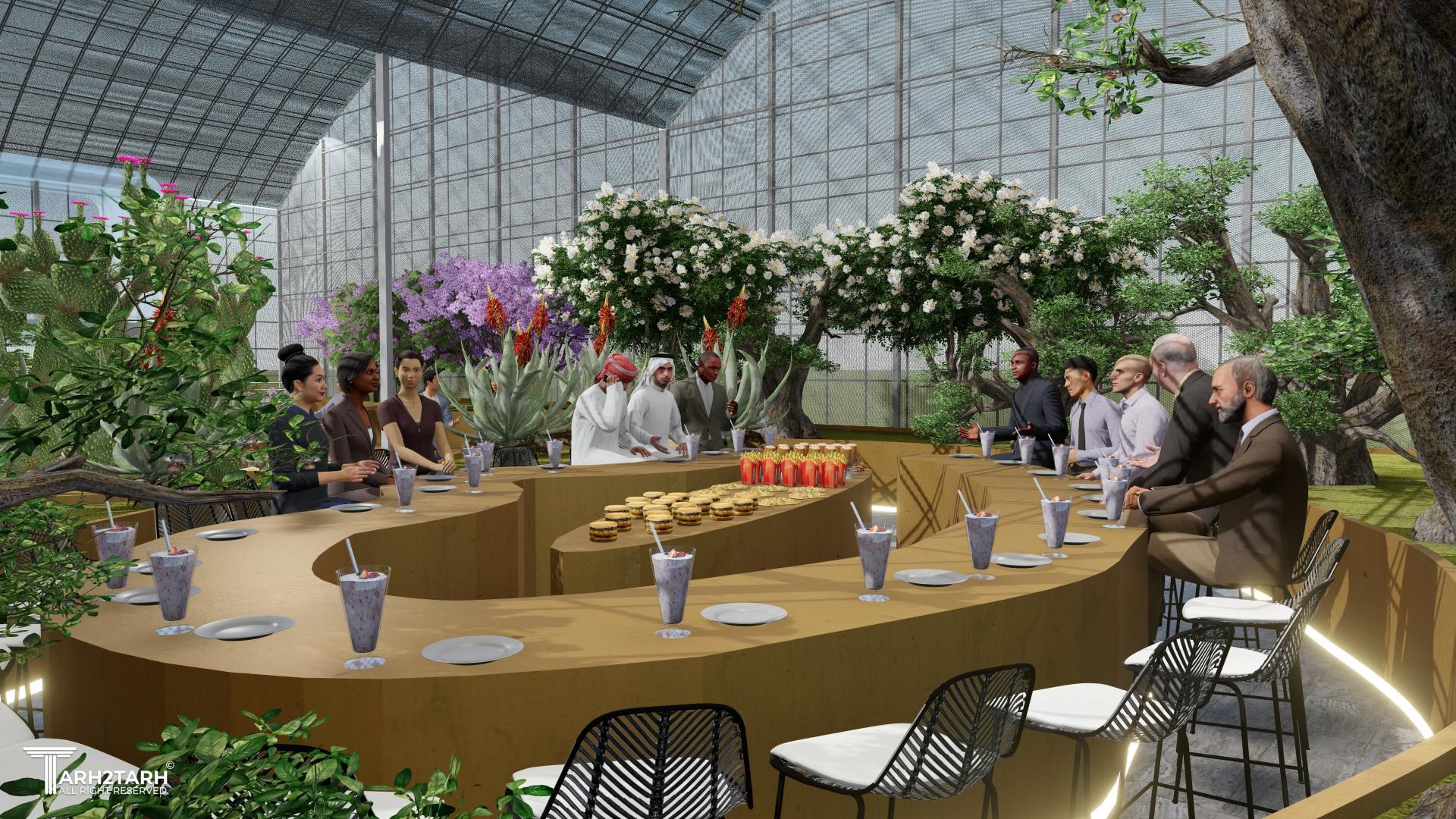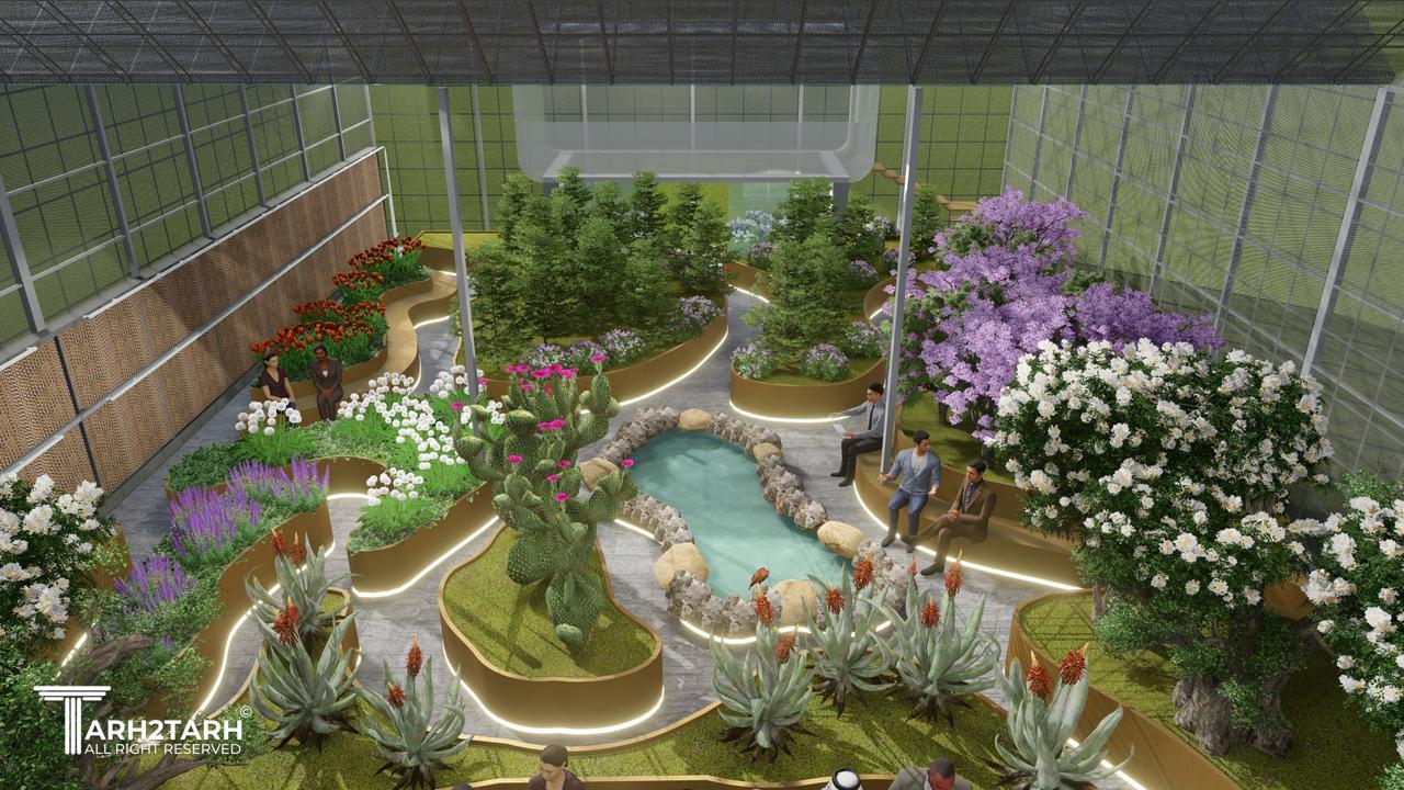 این طراحی به صورت تیمی انجام شد و سرکار خانم ایل بگی مجری فضای سبز به عنوان مشاور ما در طراحی در کنار ما بودند. کارفرمای پروژه در کنار کارخانه خود و به منظور استقبال از کارفرماهای عرب خود قصد داشتند فضای زیبایی برای پذیرایی و گفتگو تدارک ببینند